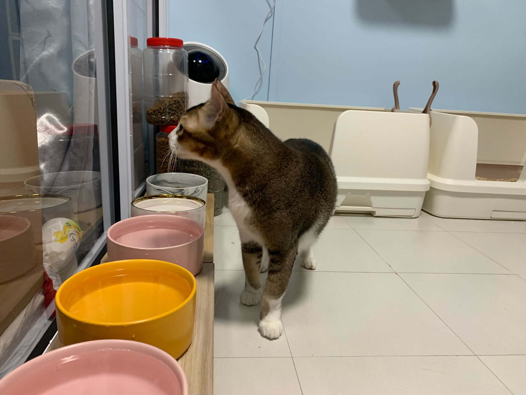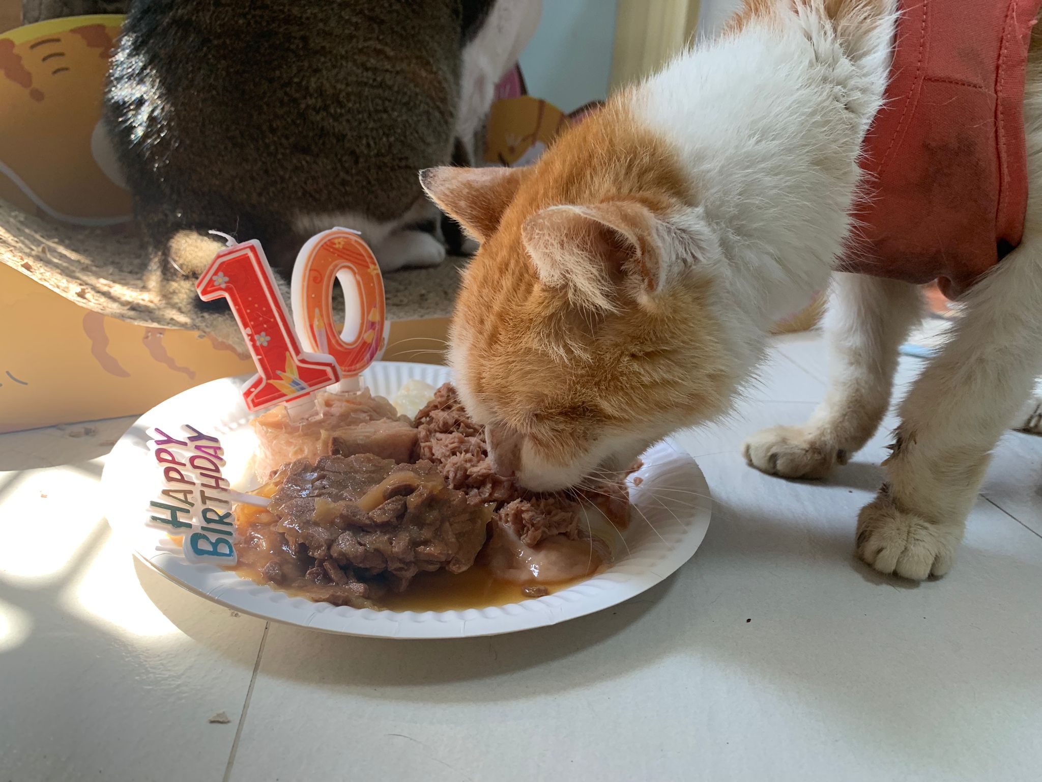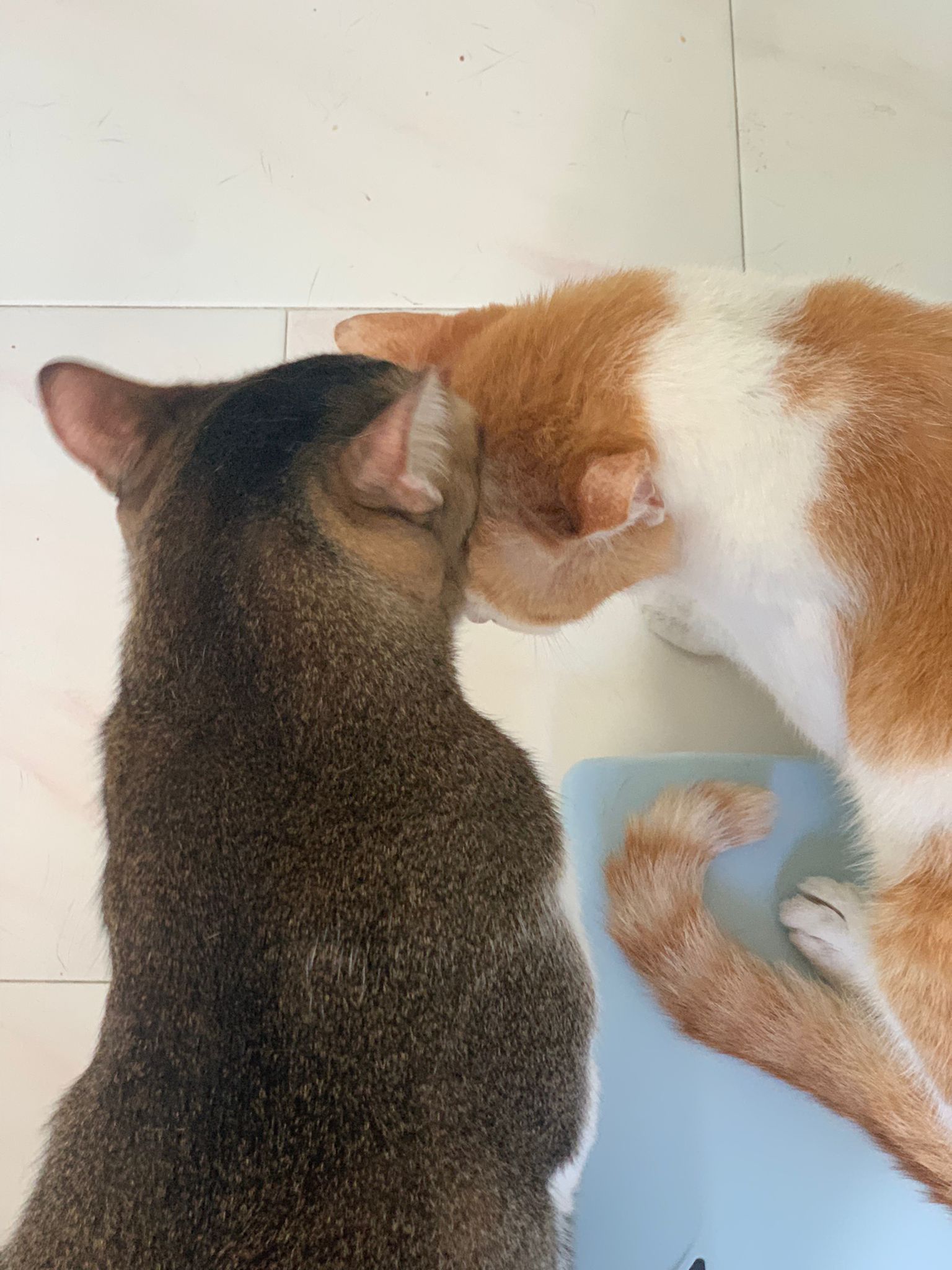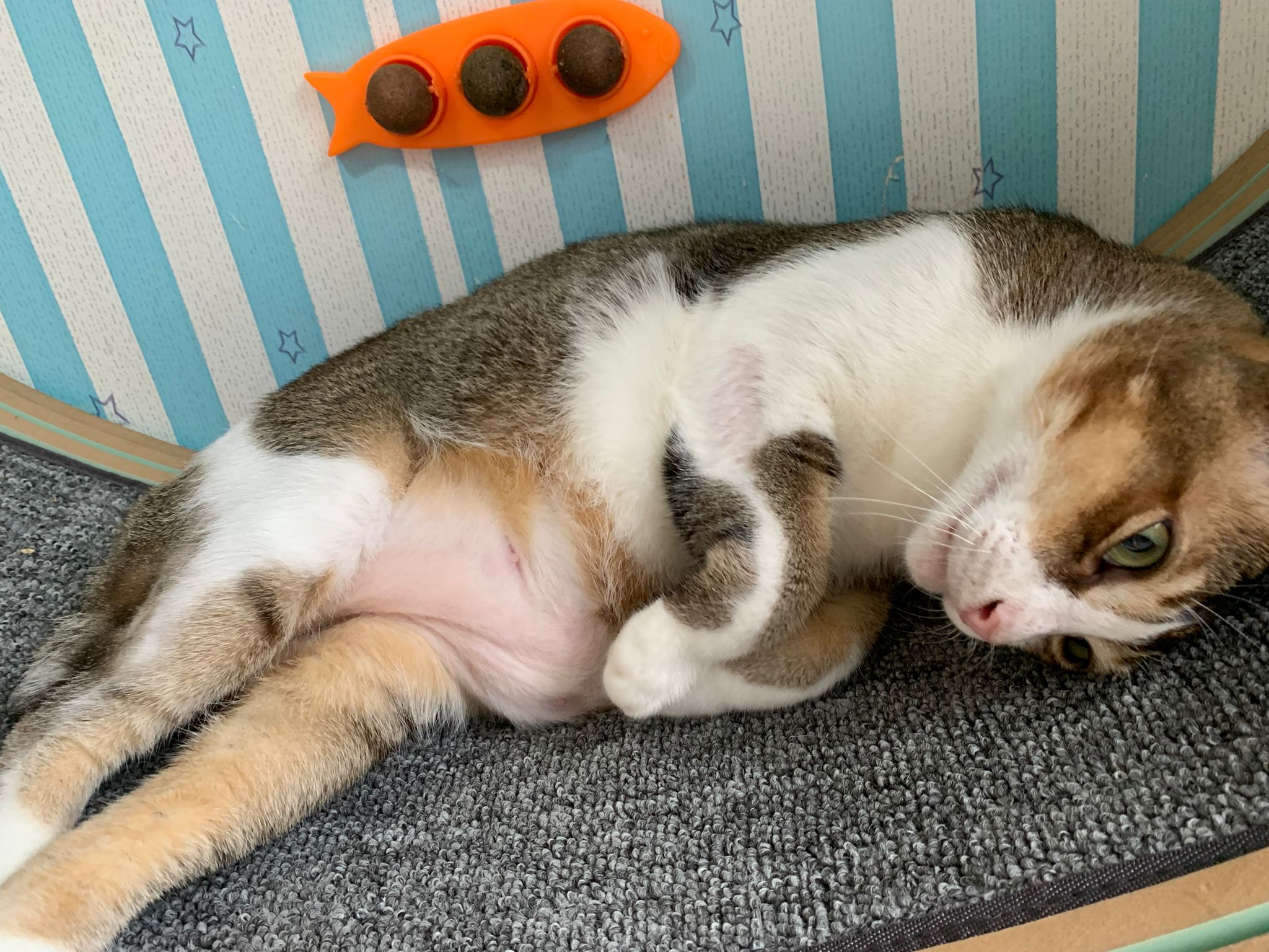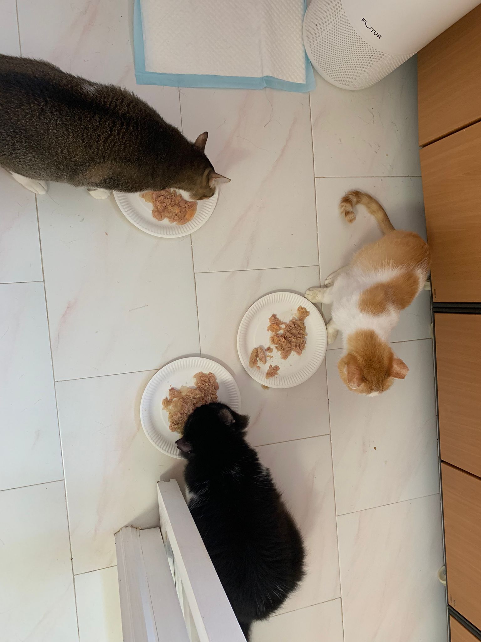 Morning; I sit on the floor outside his room packing the storage box and he meow wait for me. 1pm+: given him Clav jab and 0.15ml bupre. serve ff he finish n went on to Kerry plate. Comb both fur they r happy kid