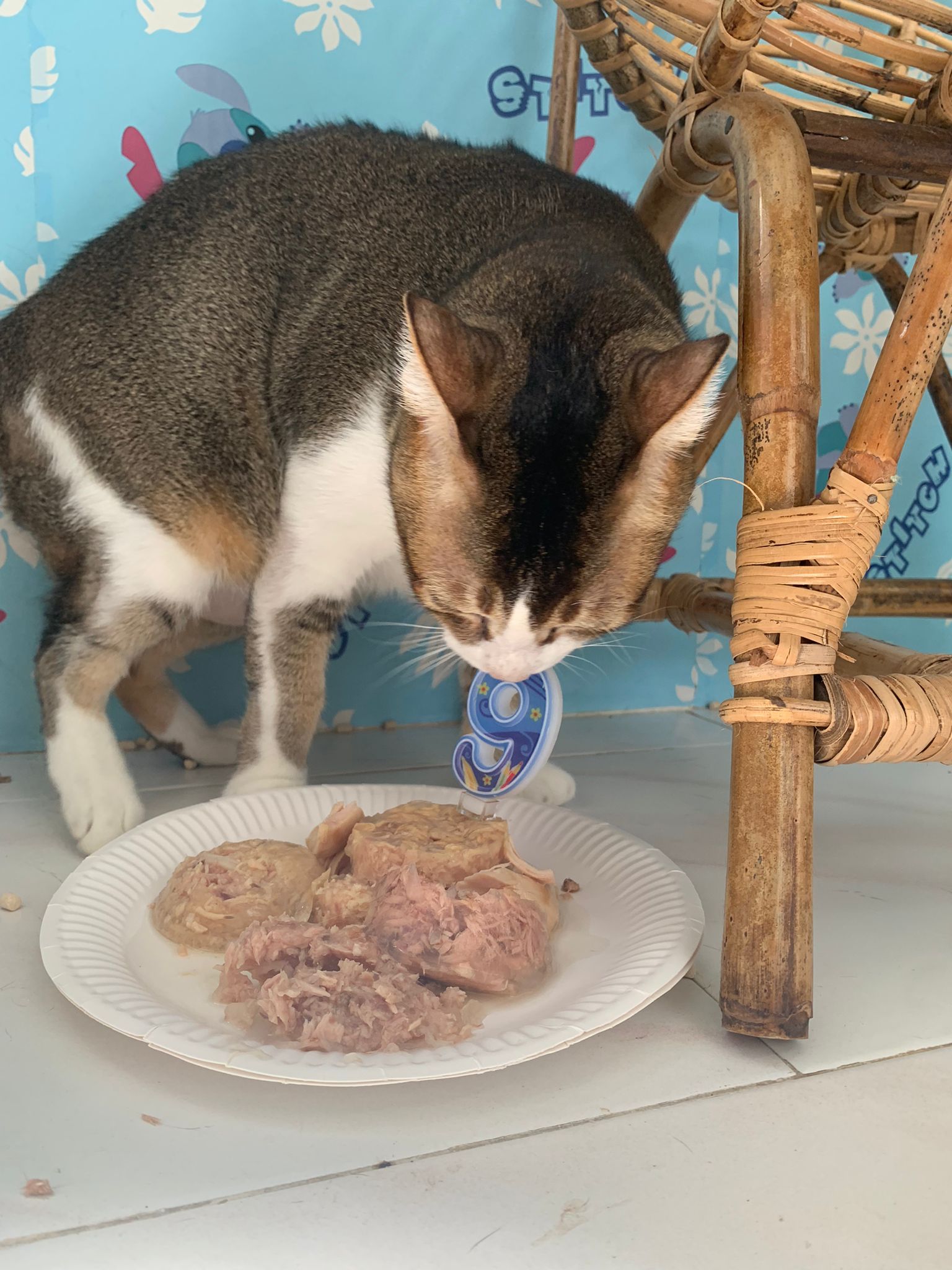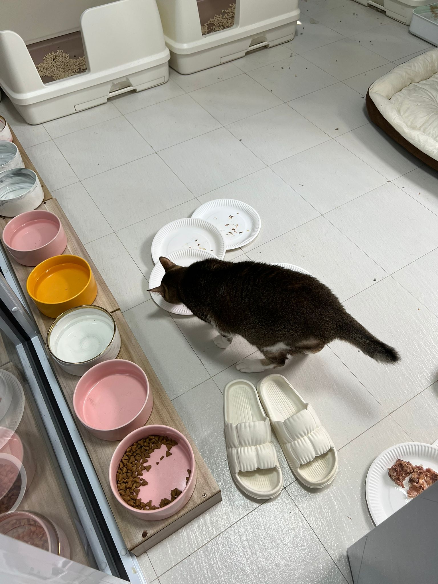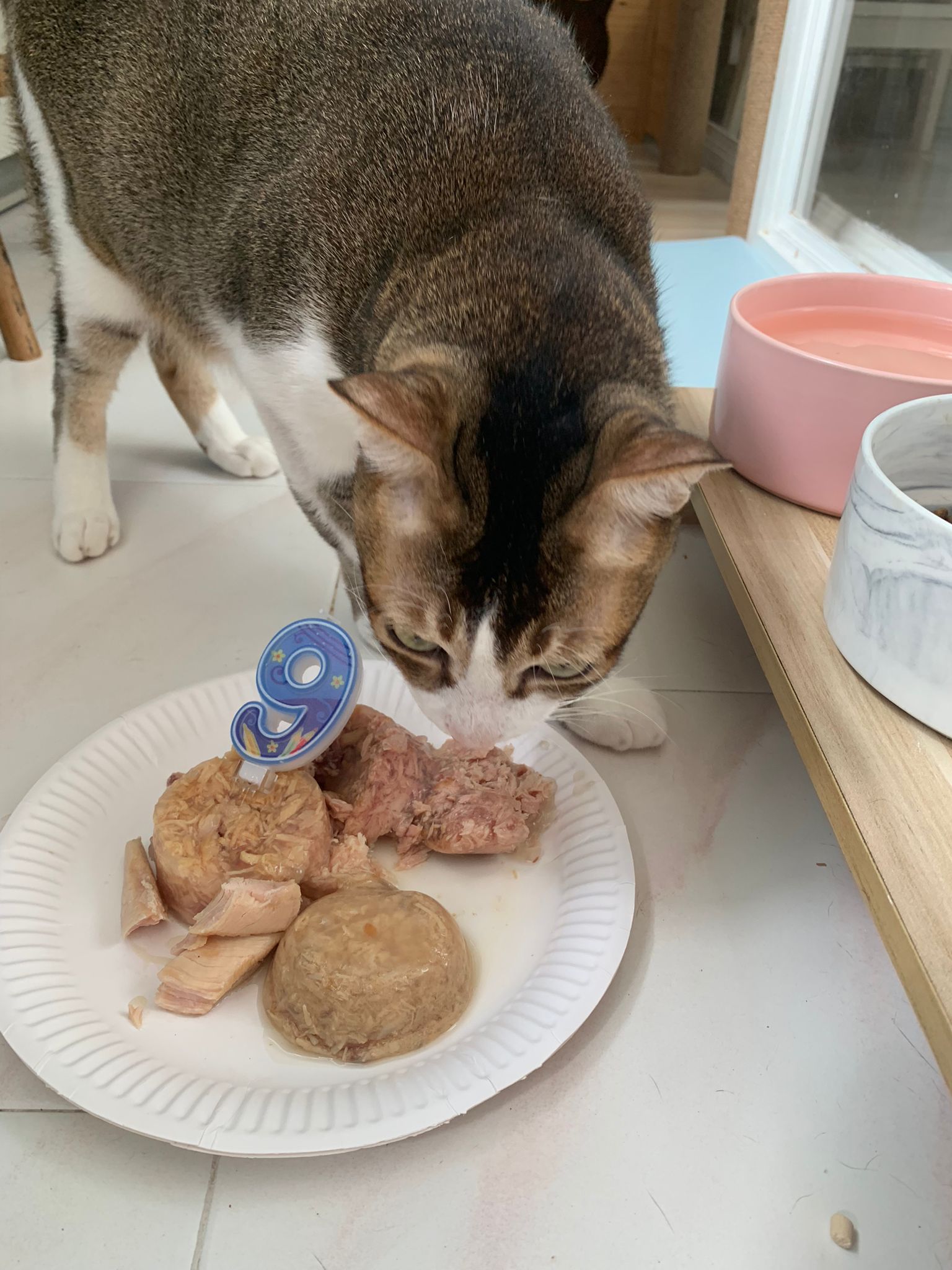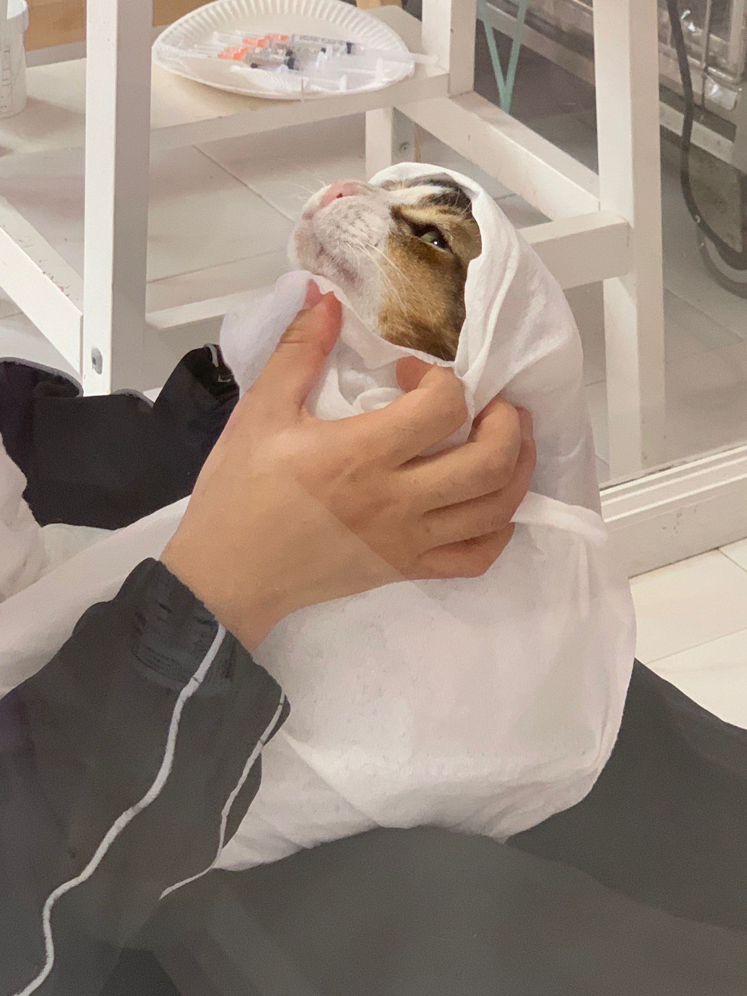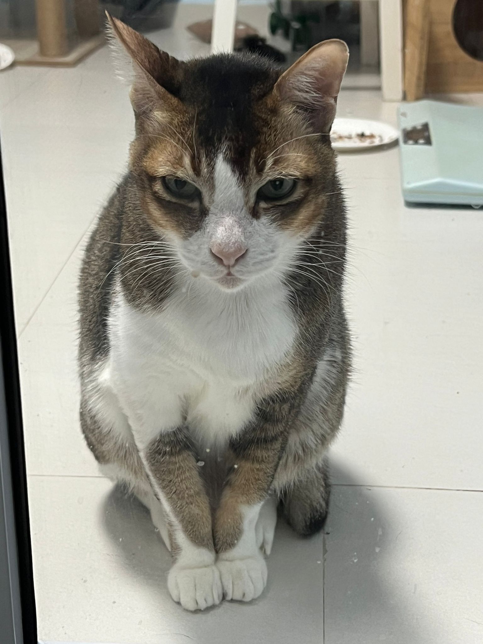 Morning; I sit on the floor outside his room packing the storage box and he meow wait for me. 1pm+: given him Clav jab and 0.15ml bupre. serve ff he finish n went on to Kerry plate. Comb both fur they r happy kid