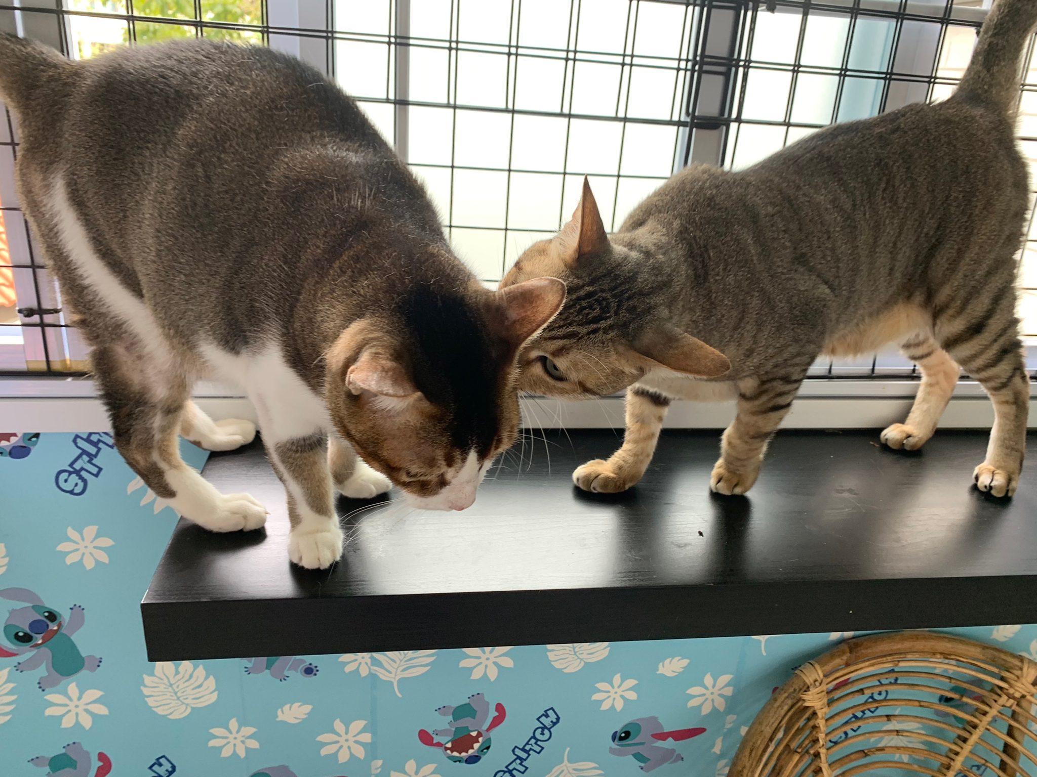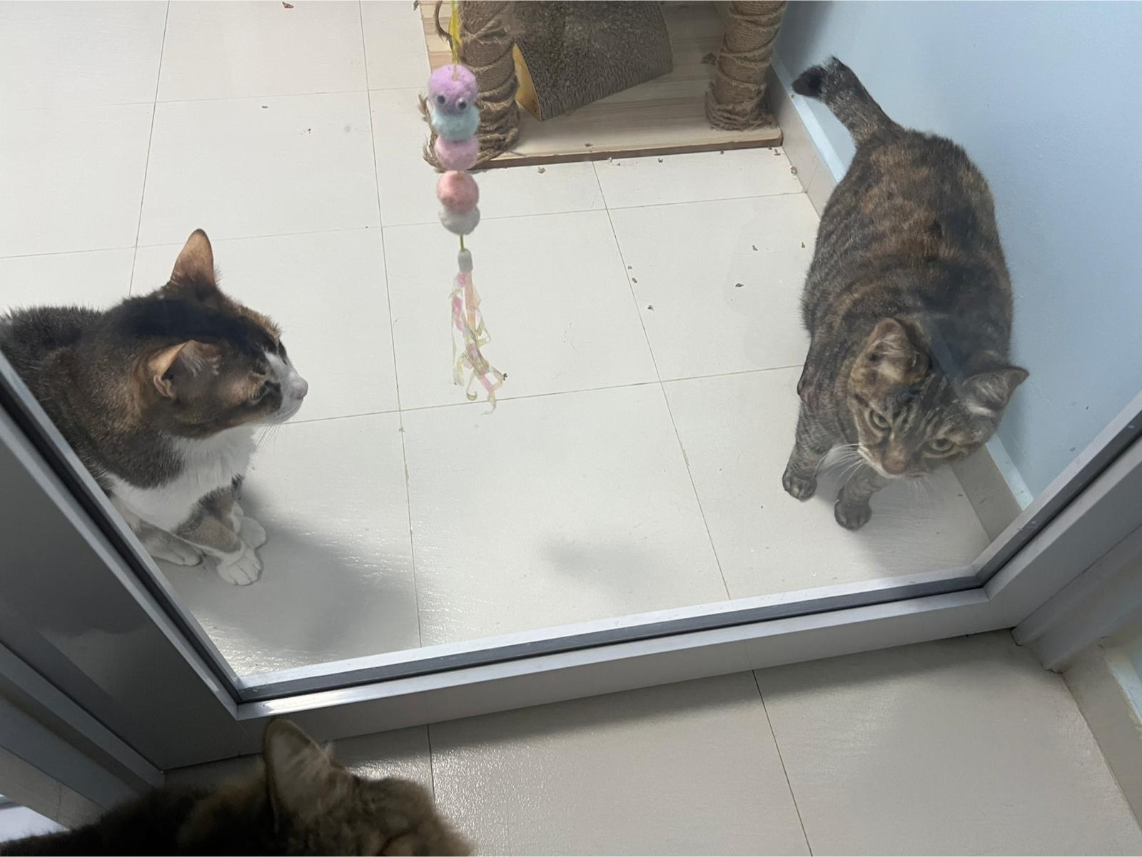 12pm: these 2 know that bench is sayang corner now. Will both jump onto bench want me sayang n brush them. Kerry a little siao siao throw temper like sena yo buddy. She keep attacking daring, I scare daring will become really angry. Given daring bupre jab today.