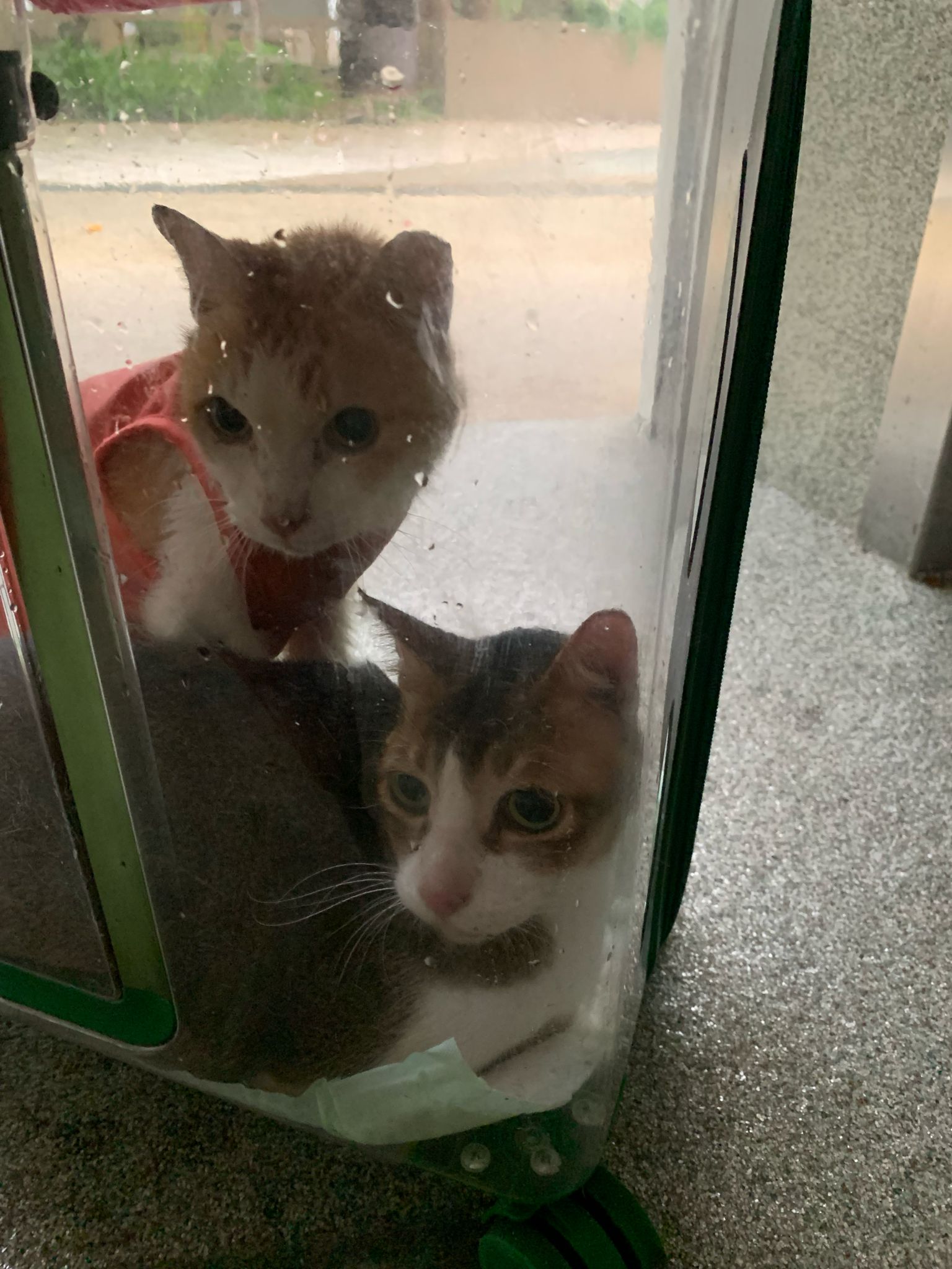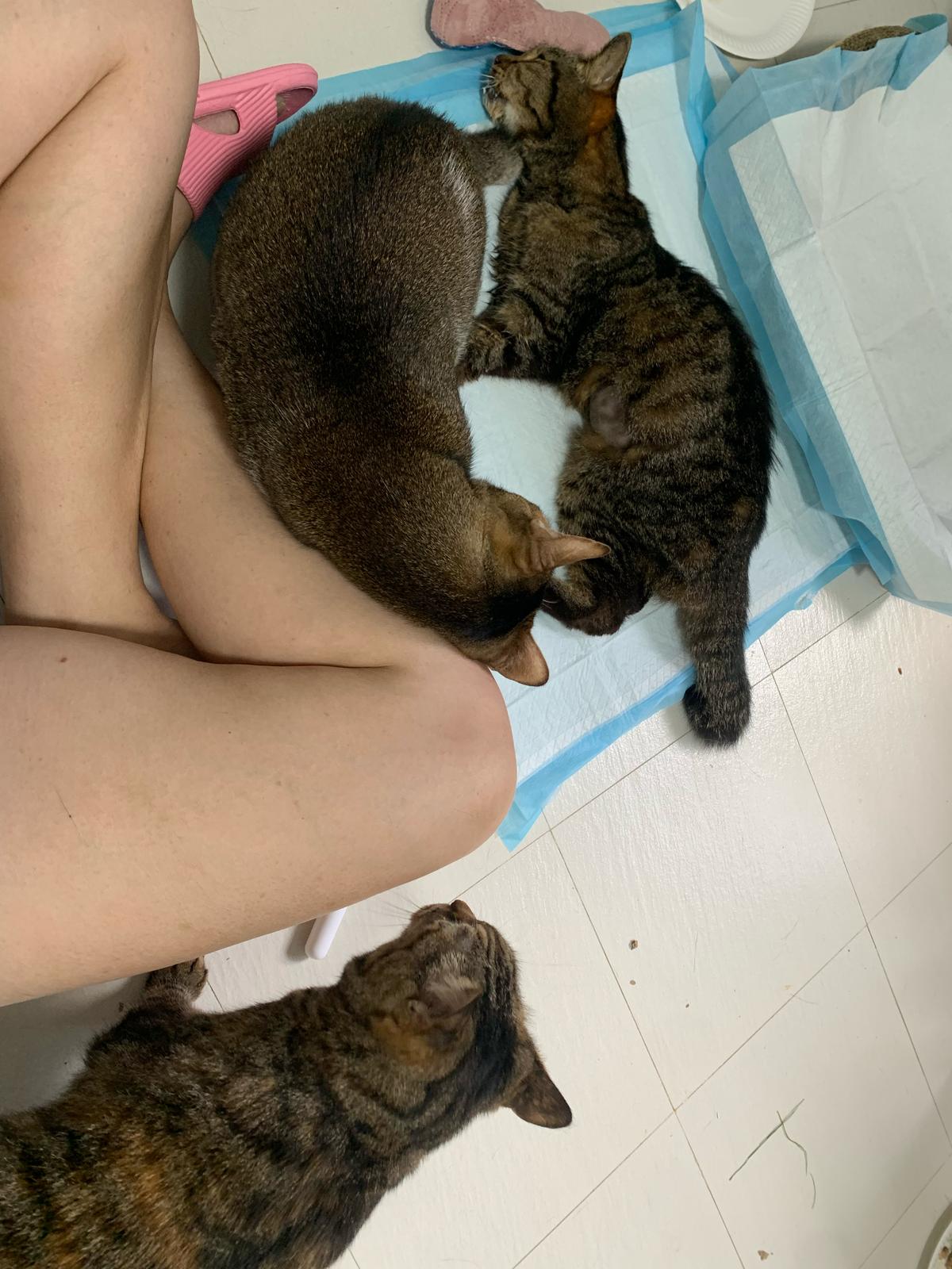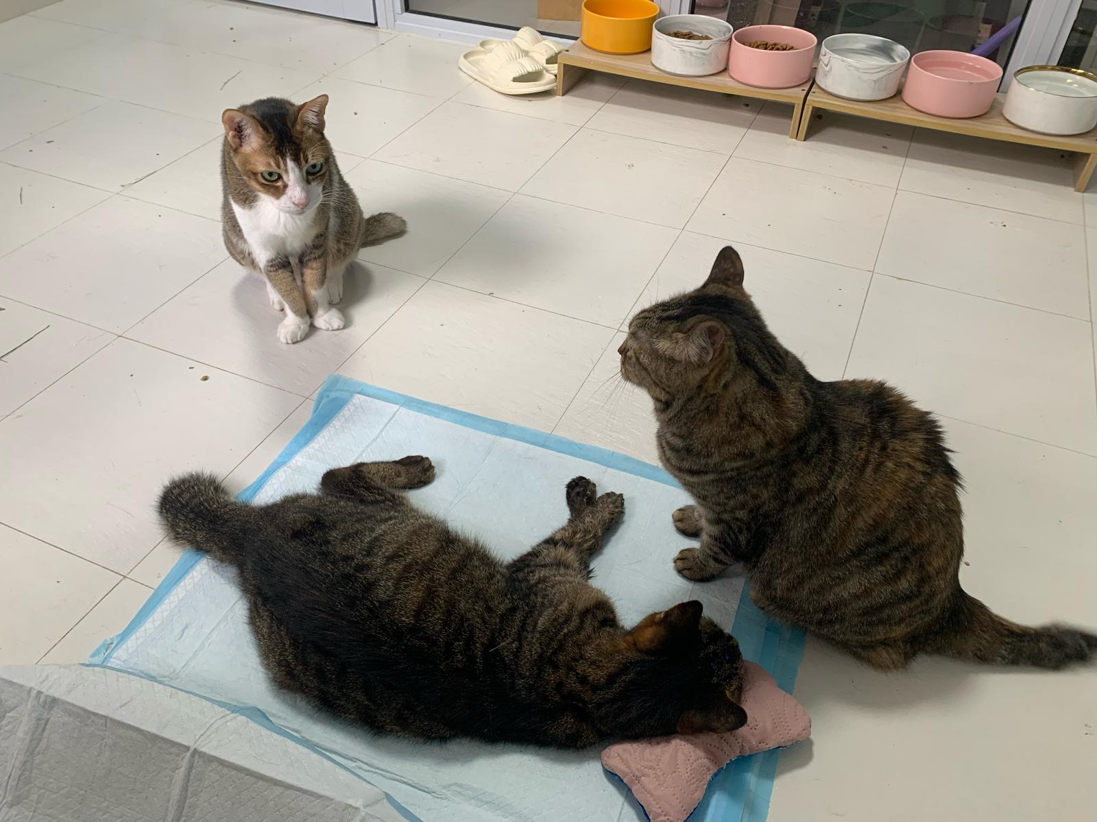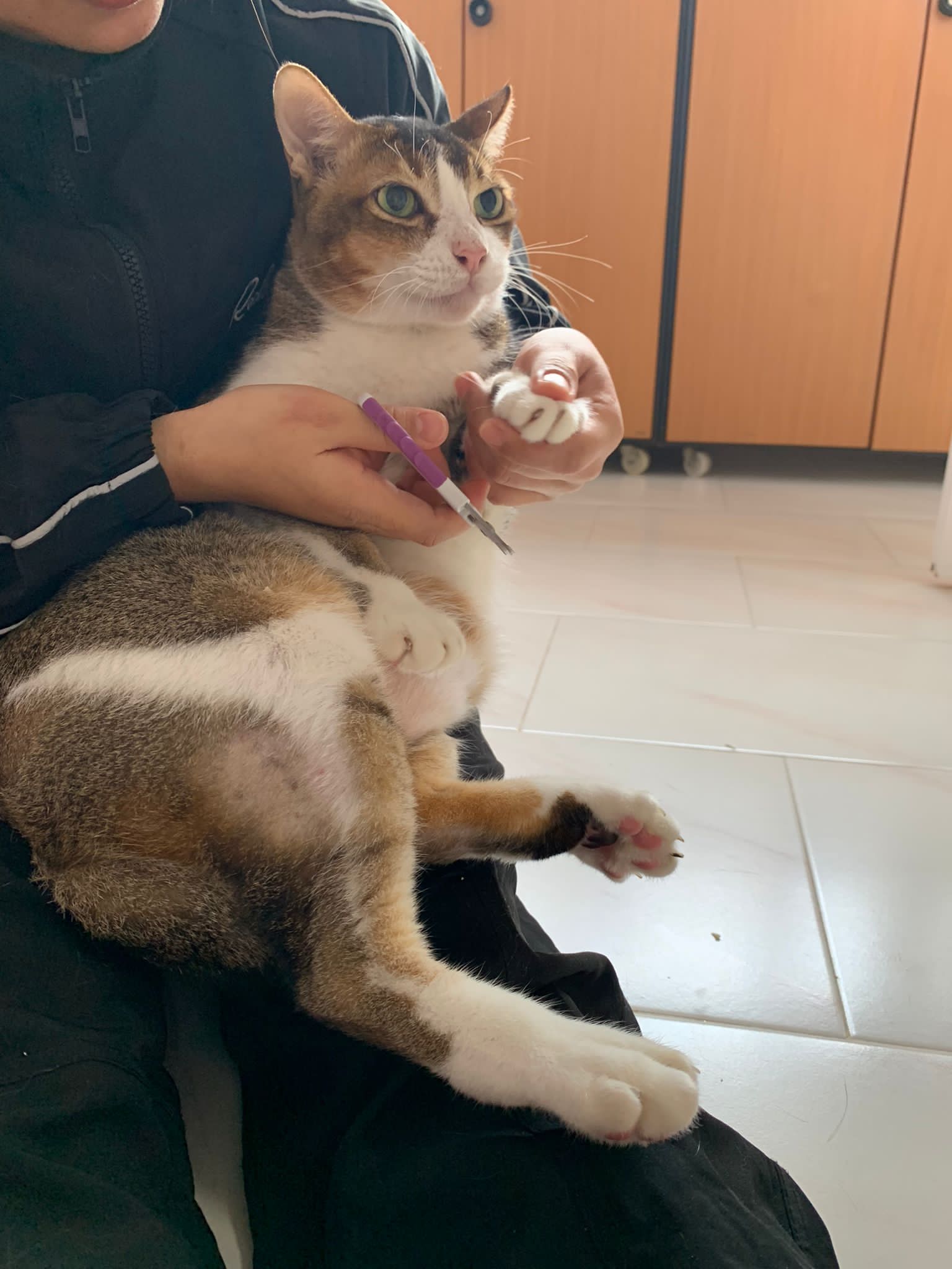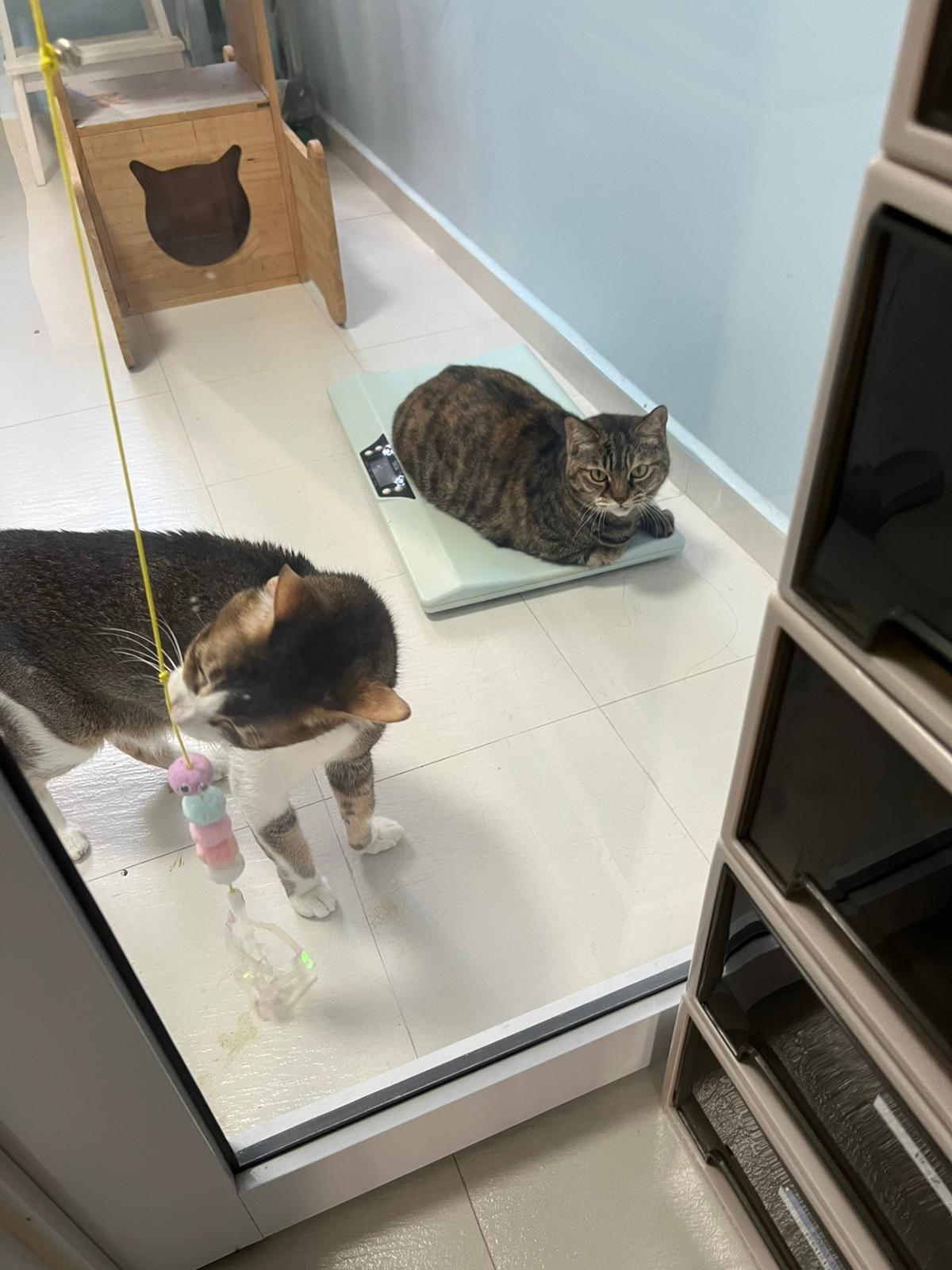 Arranged for daring and Kerry to go for a check. When clinic reply only one cat can go, I reject la, hard to bring felv cats out. But I don’t have 2 carriers also. Erm …