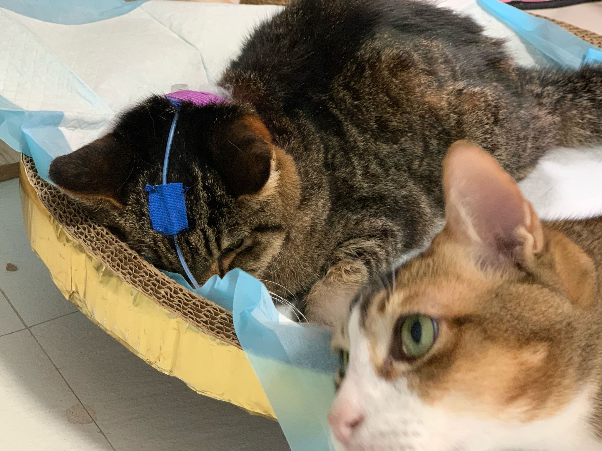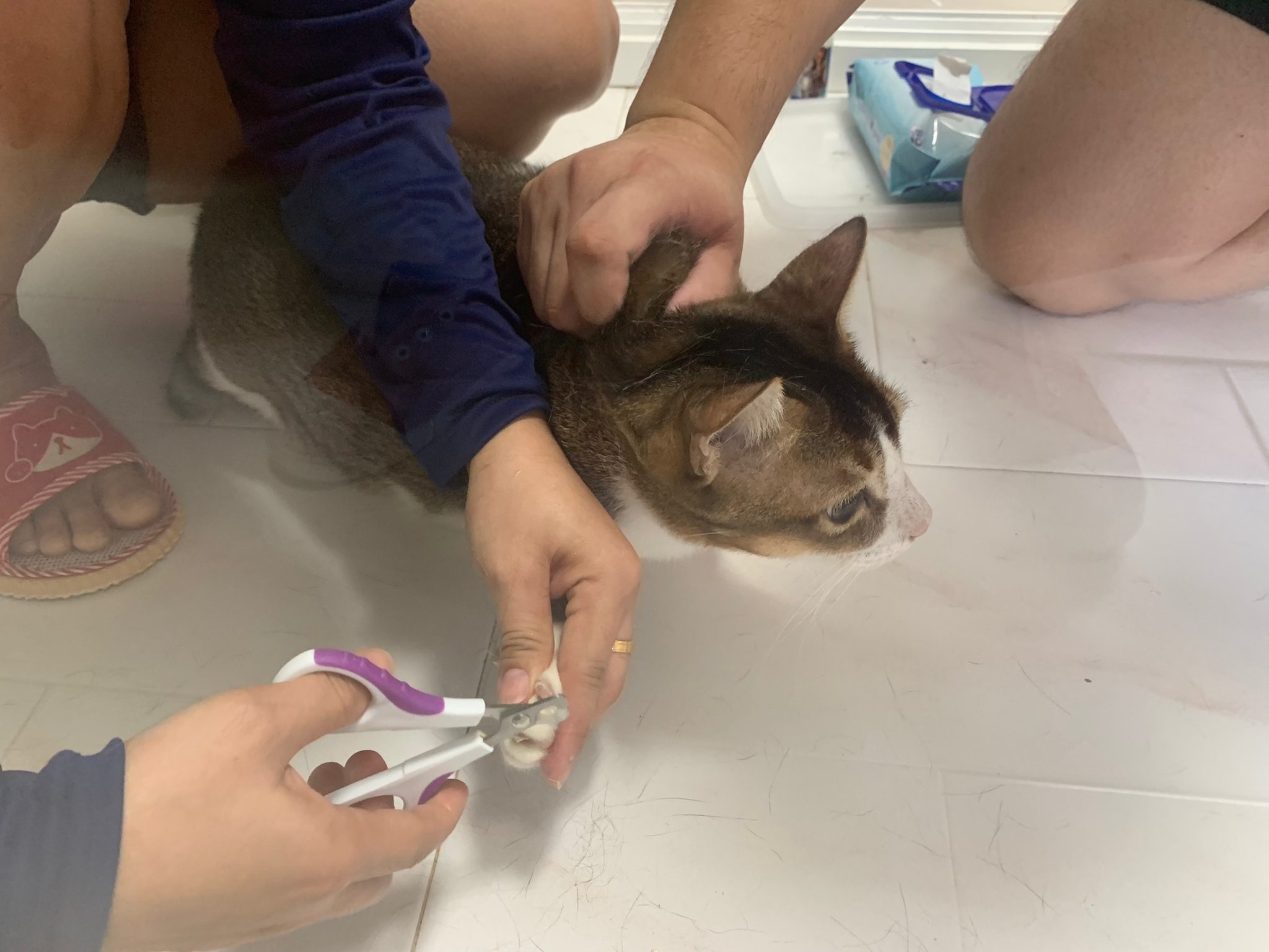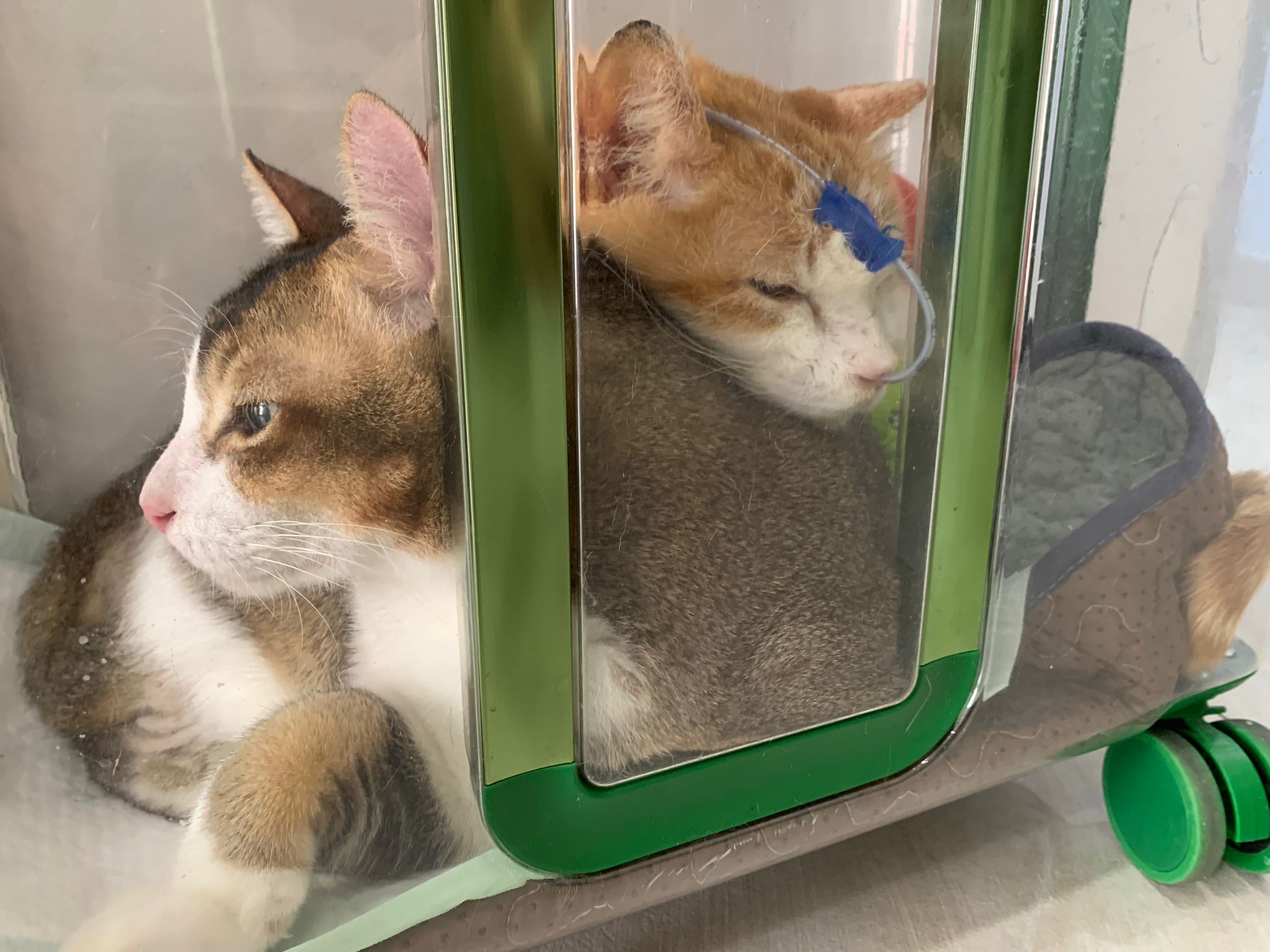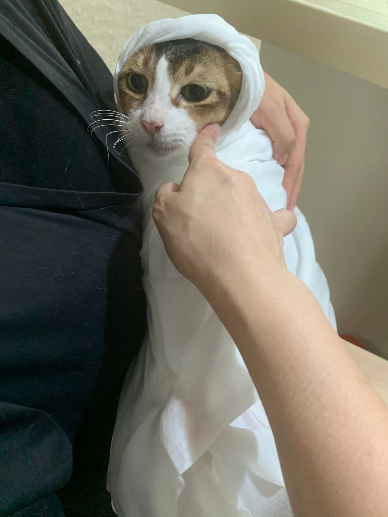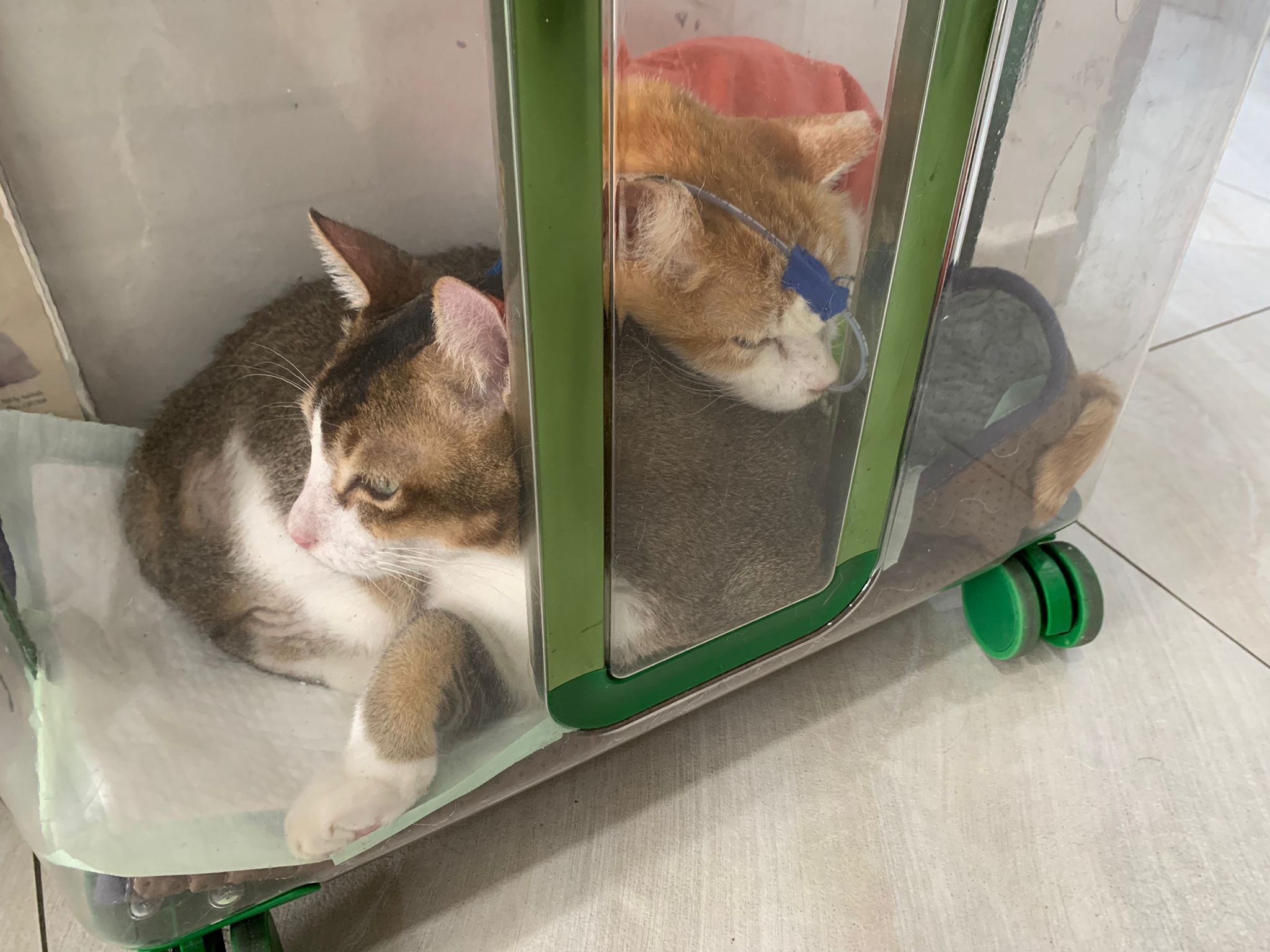 Arranged for daring and Kerry to go for a check. When clinic reply only one cat can go, I reject la, hard to bring felv cats out. But I don’t have 2 carriers also. Erm …