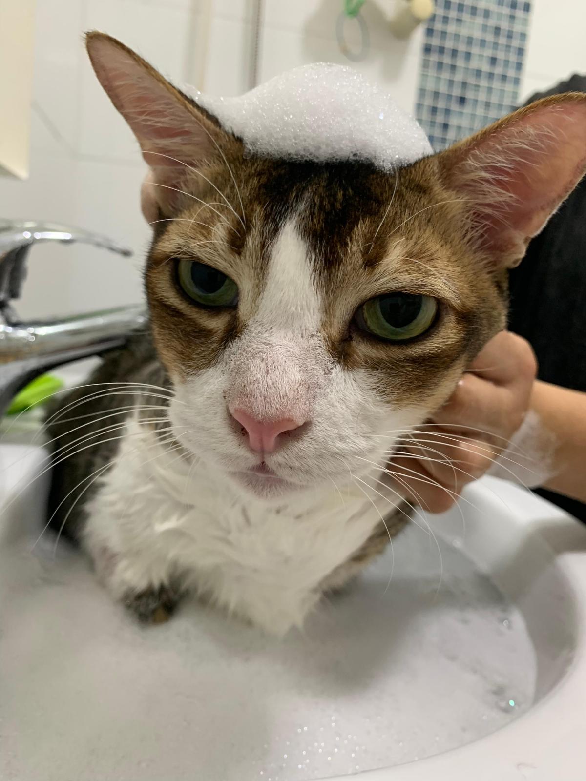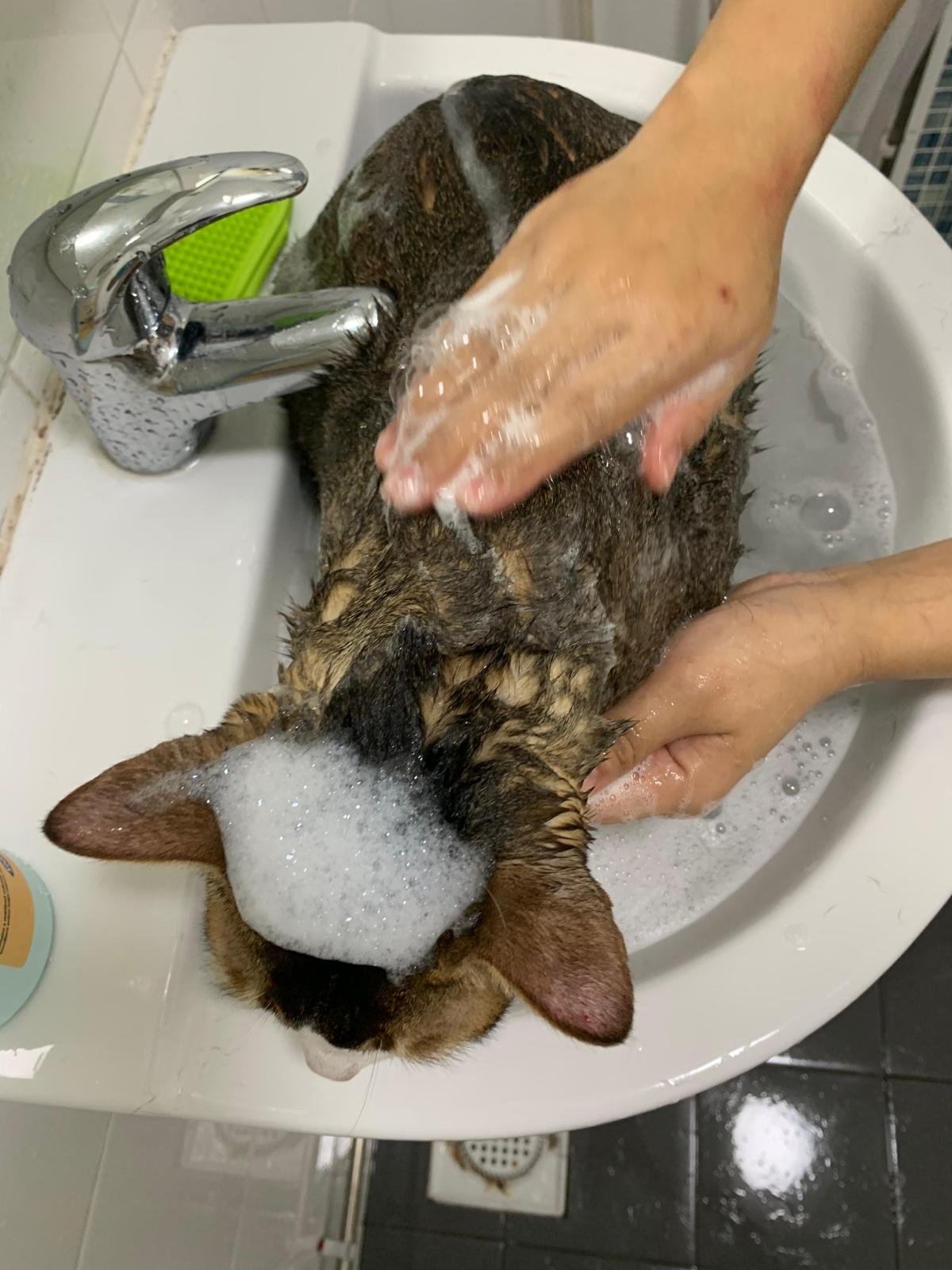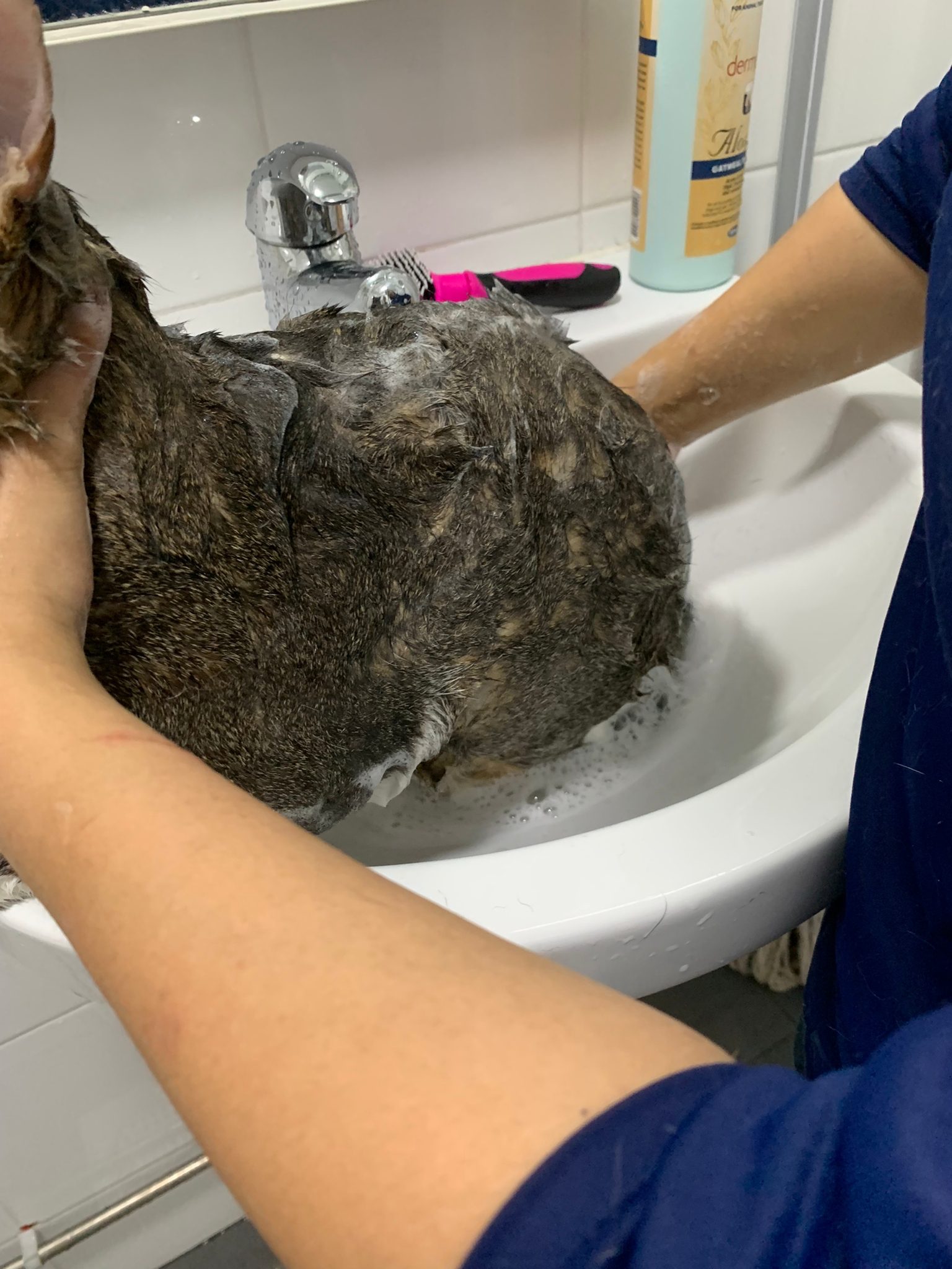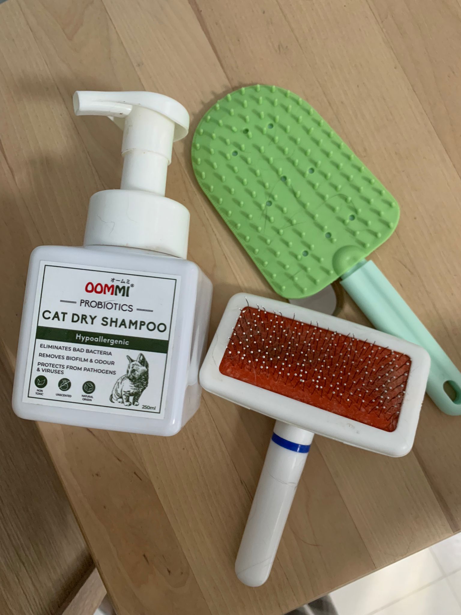 Morning: today dry shampoo Kerry and daring. Happy boy for sure. Brush them. Today also given him Clav and probiotics. Will give bupre, I give him alternate day bupre