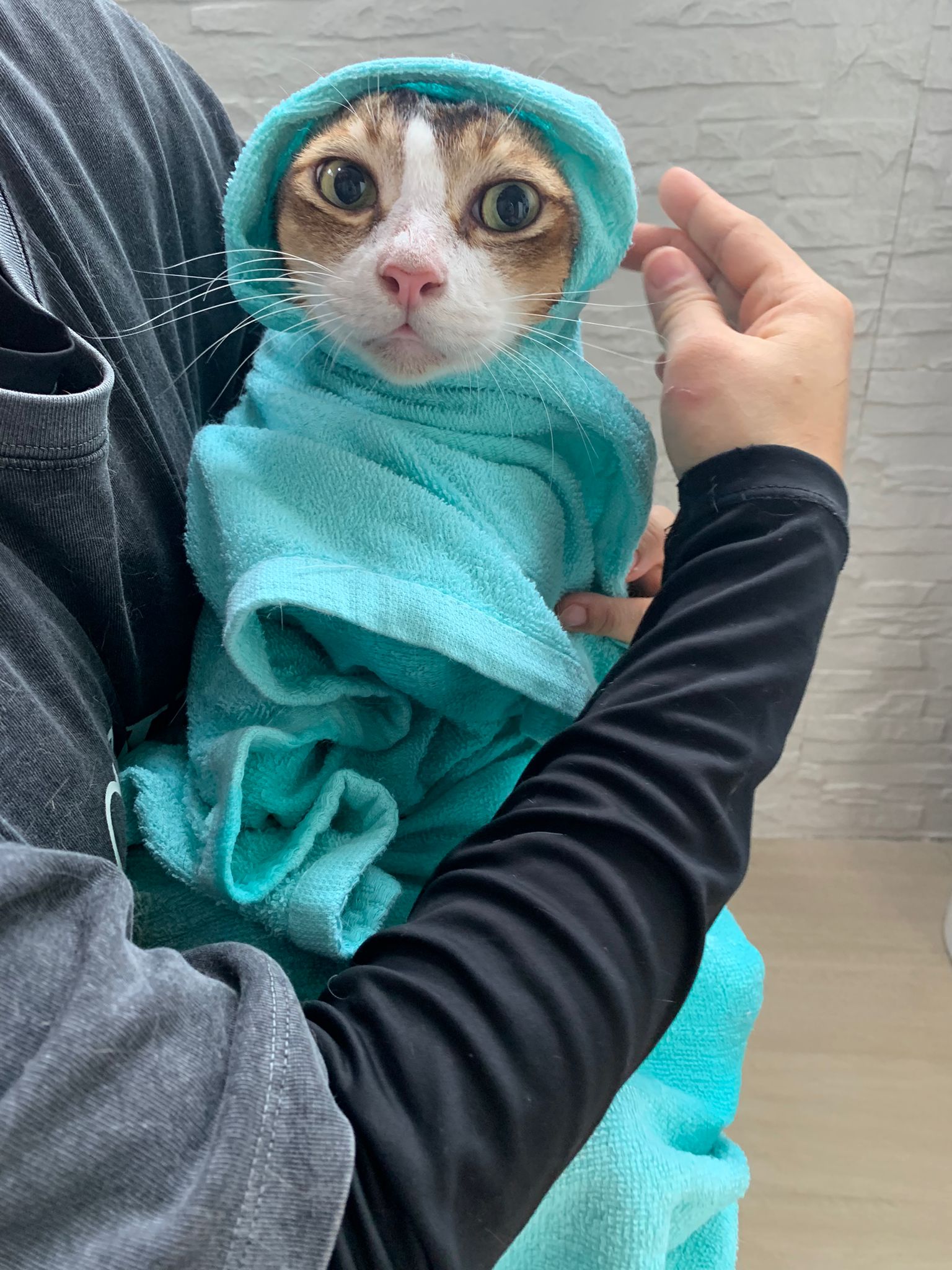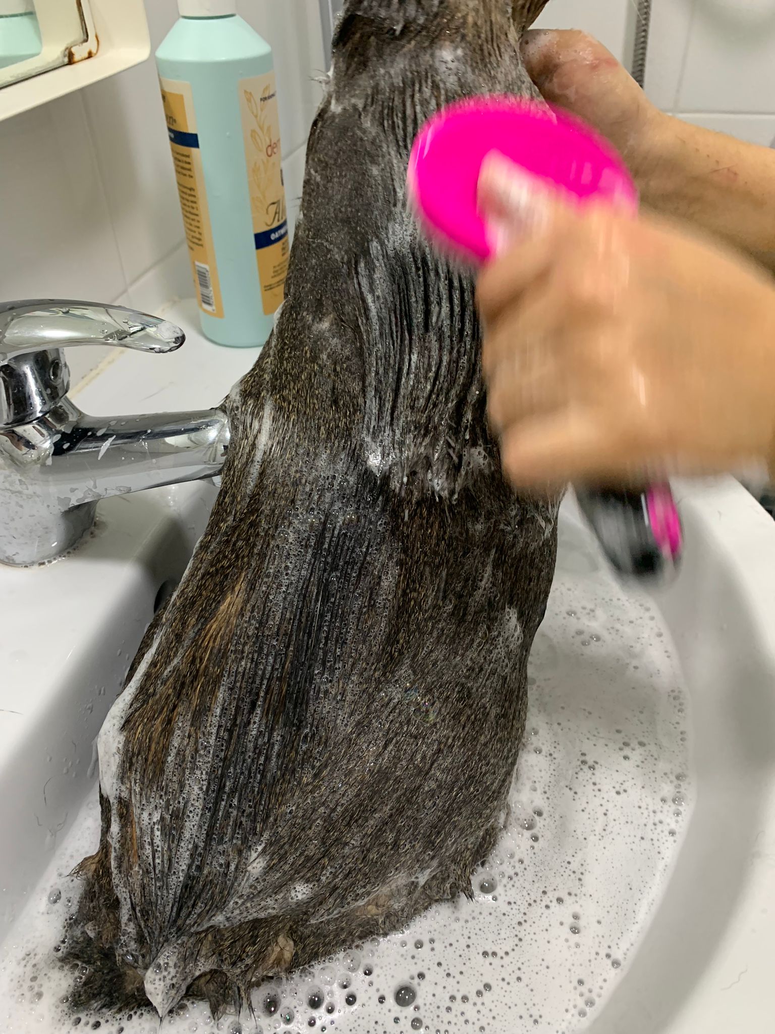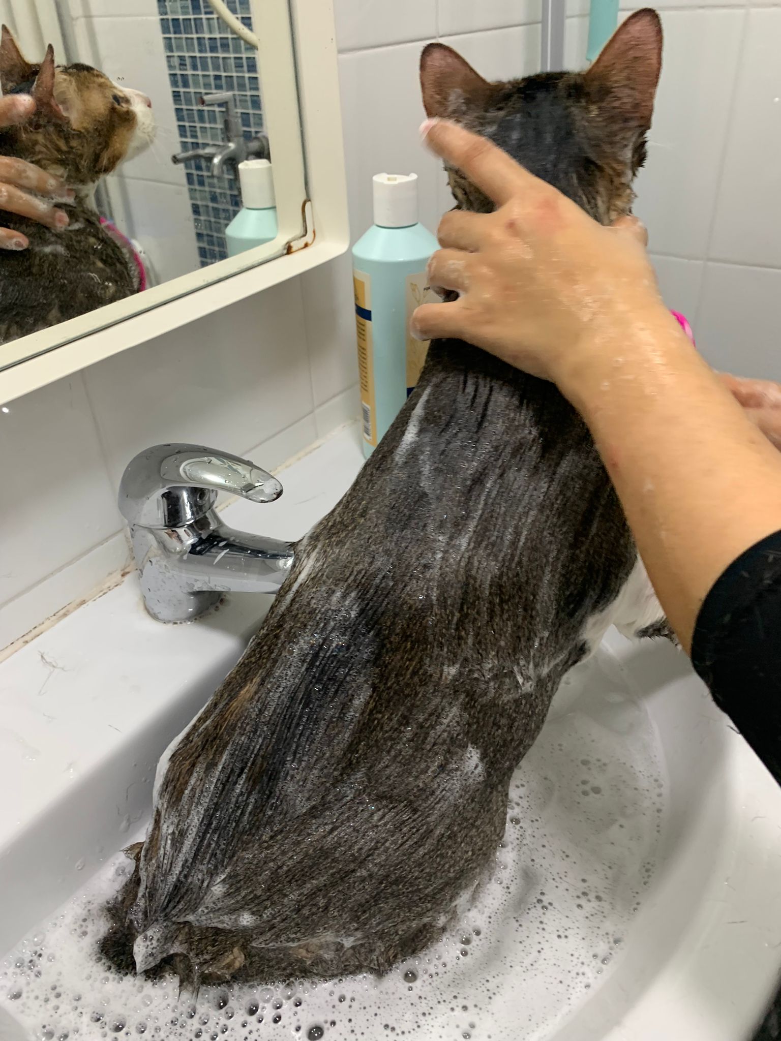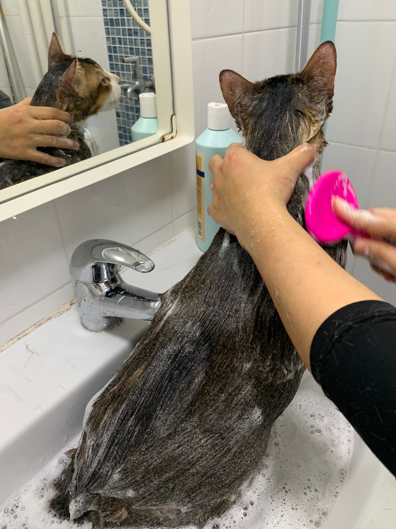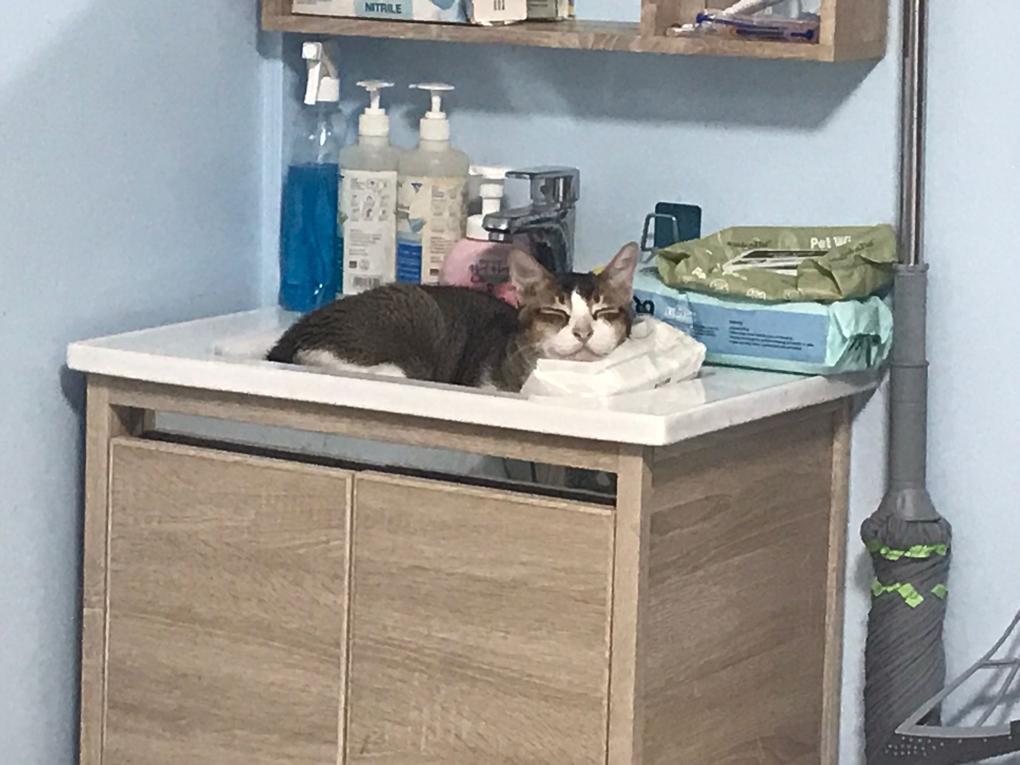 Morning: today dry shampoo Kerry and daring. Happy boy for sure. Brush them. Today also given him Clav and probiotics. Will give bupre, I give him alternate day bupre