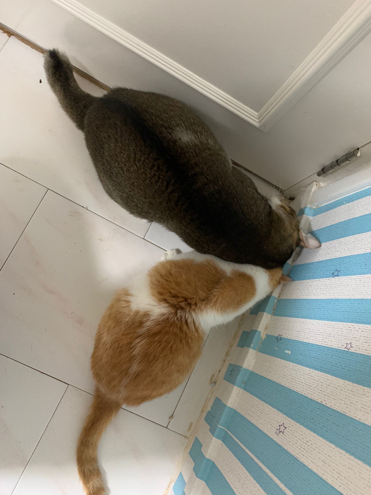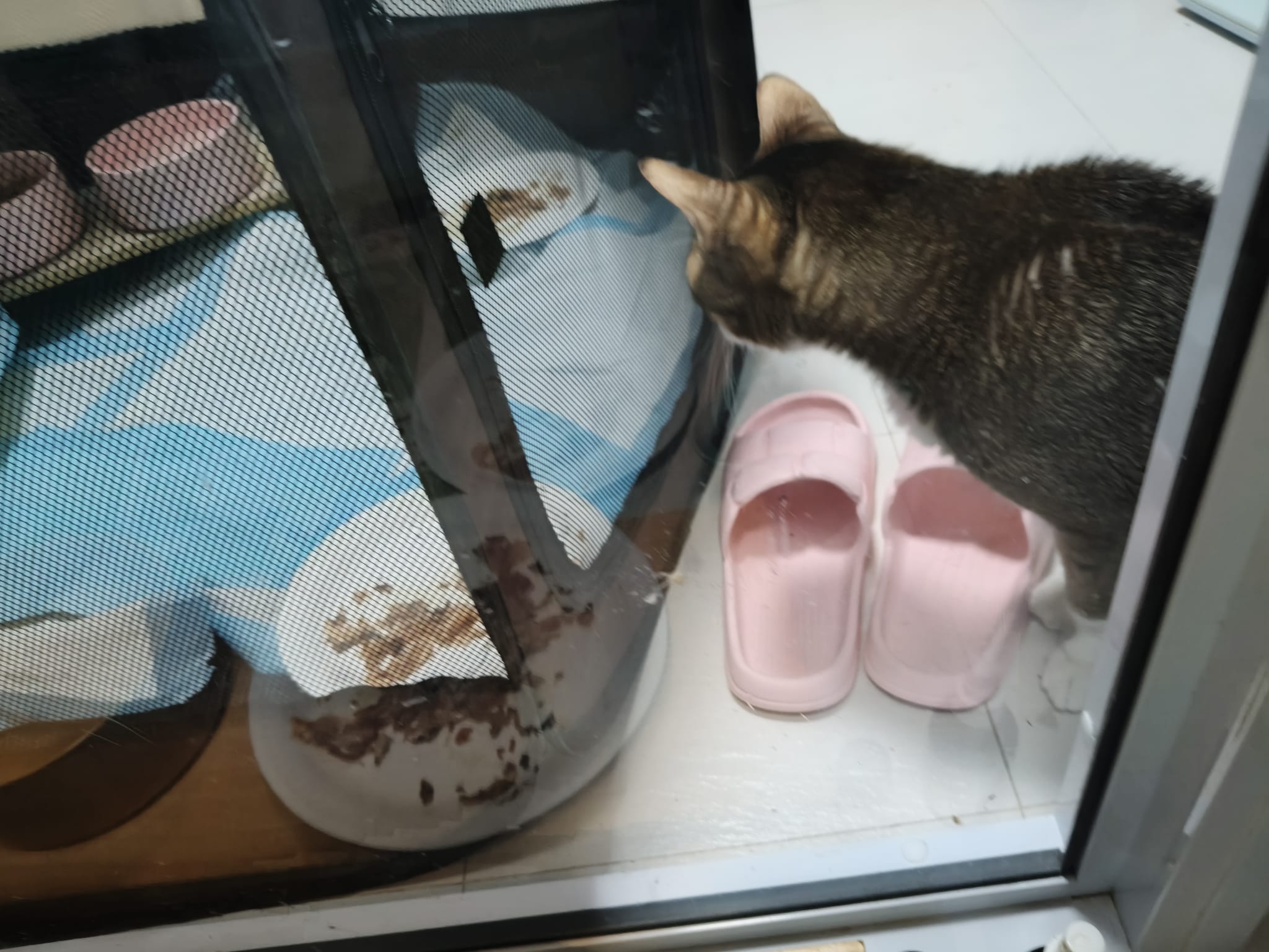 1pm: before I walk in, she and daring still enthu wait for me at the door. But I went in did scold them la, but I think is daring who poo on the new mat. Brush their fur and sayang them.