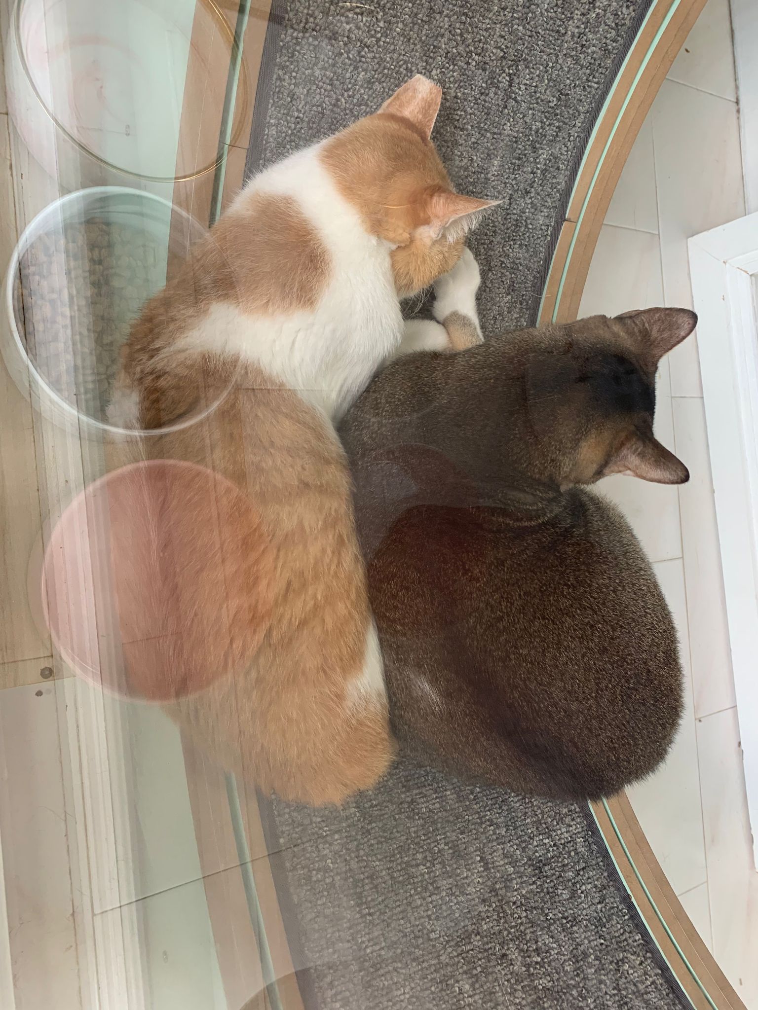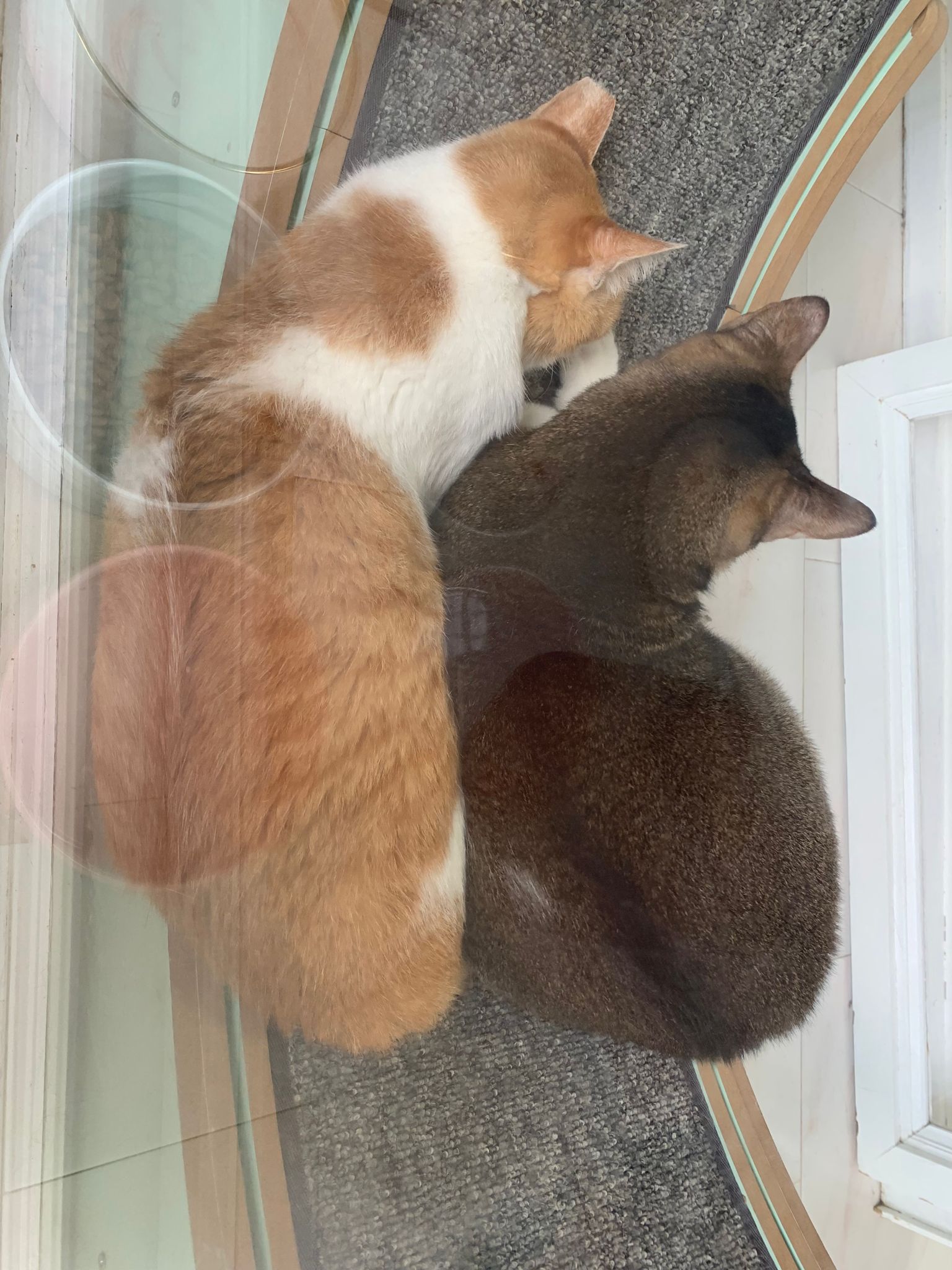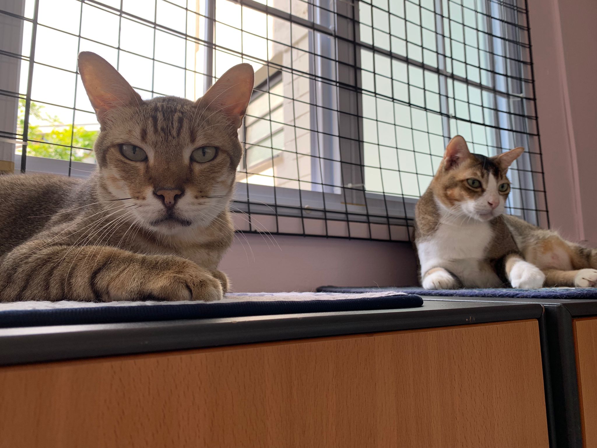 Morning: I think I can throw away their cat condo. This bench is v good le… both of them will want me brush and sayang on bench. Today got photo shoot of them tgt. Kerry groom daring today
