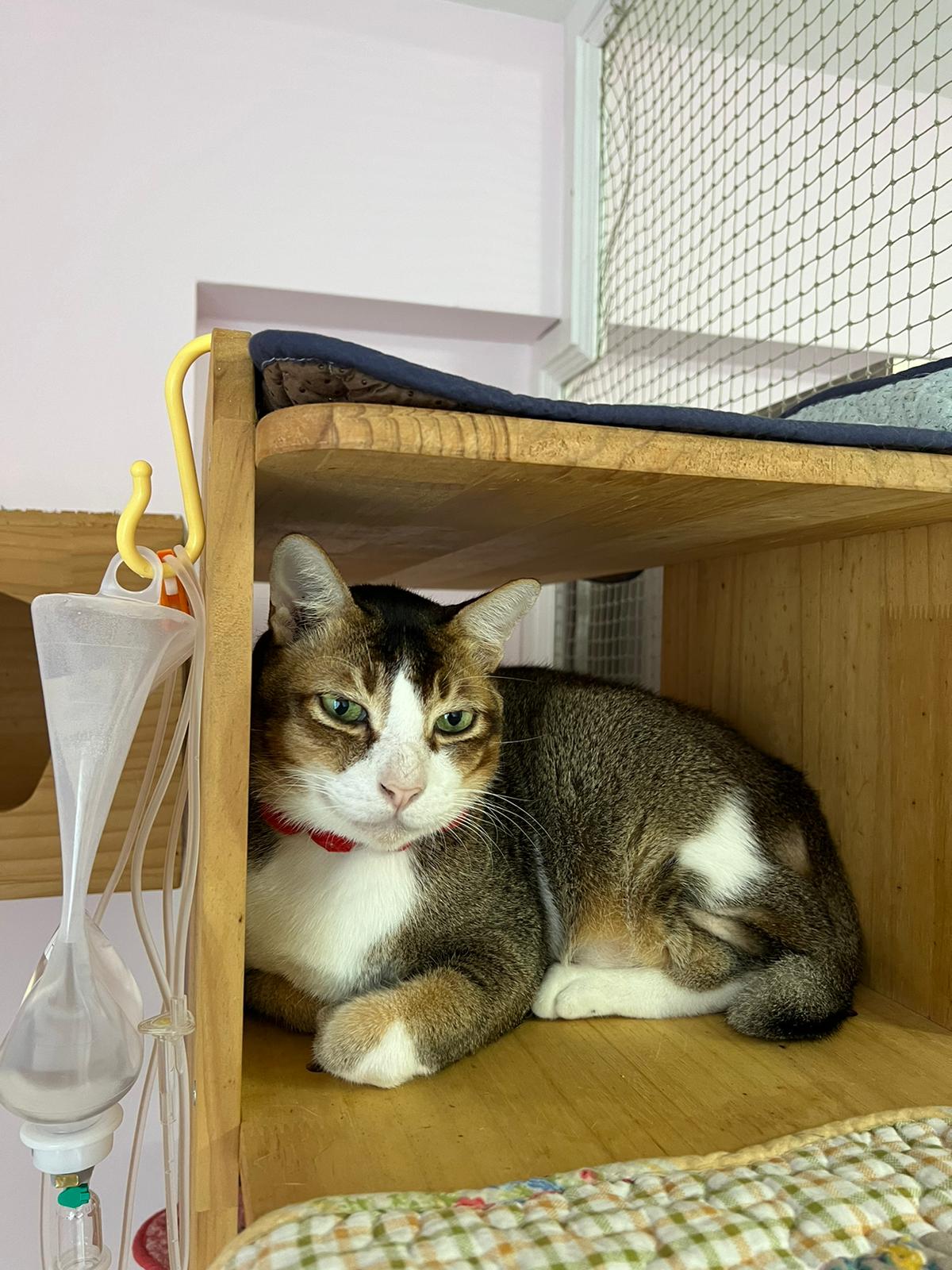Night: mmm:”He wasn’t eating” – I know he is choosy but this afternoon I touch his kidneys really Erm. If he kidney problem how? Should I Subcut him? Obvious right? What if I can’t come as frequent? Better than nothing right!!? Sigh so all means have to bring him go vet. Then I’ll bring both him n Kerry. But then Ps, rena they all how? Have to think again