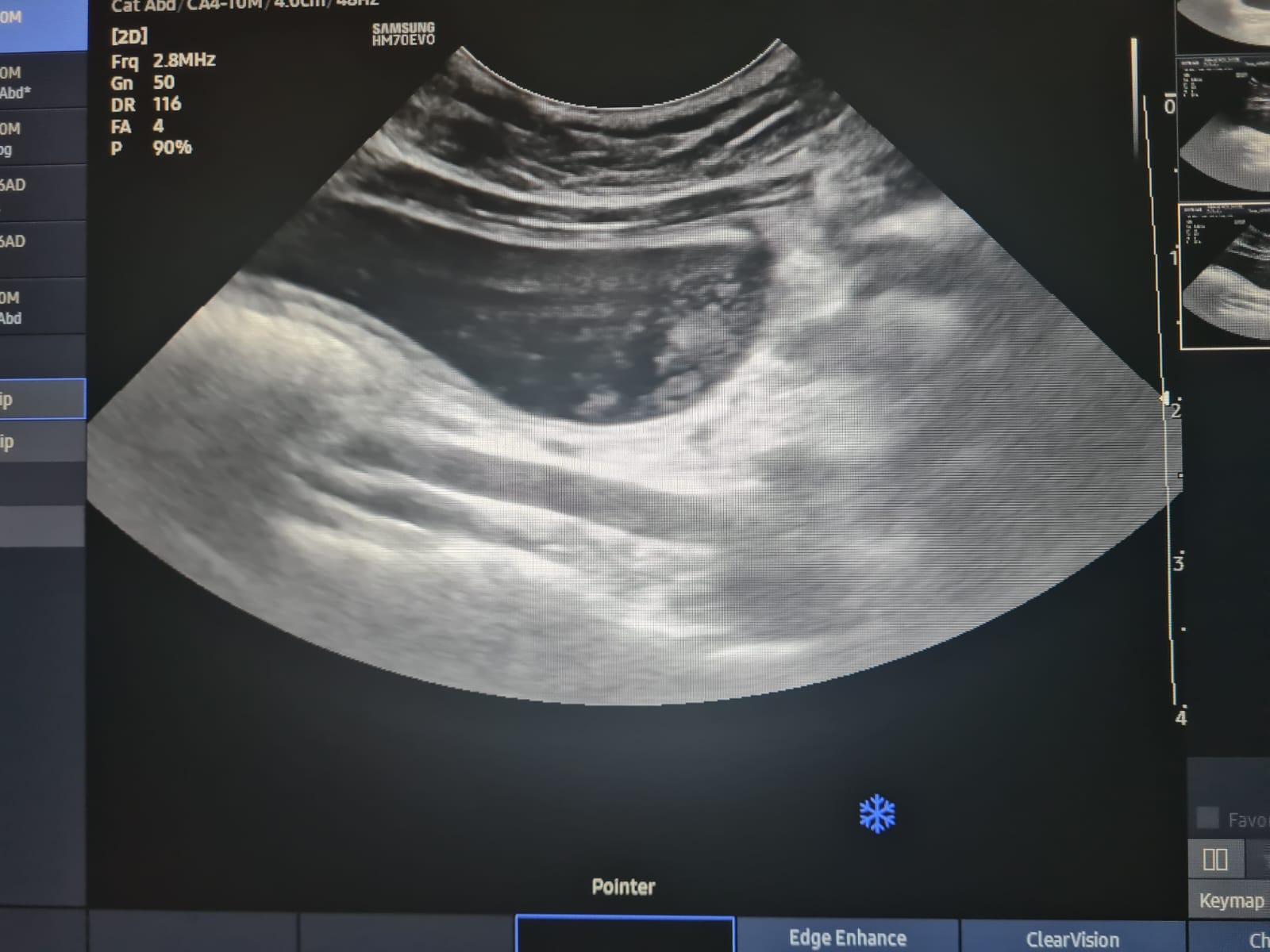 “Daring’s bladder scan image – thickened walls proximal bladder with moderate hyperechoic sediments in bladder lumen, no obvious uroliths”