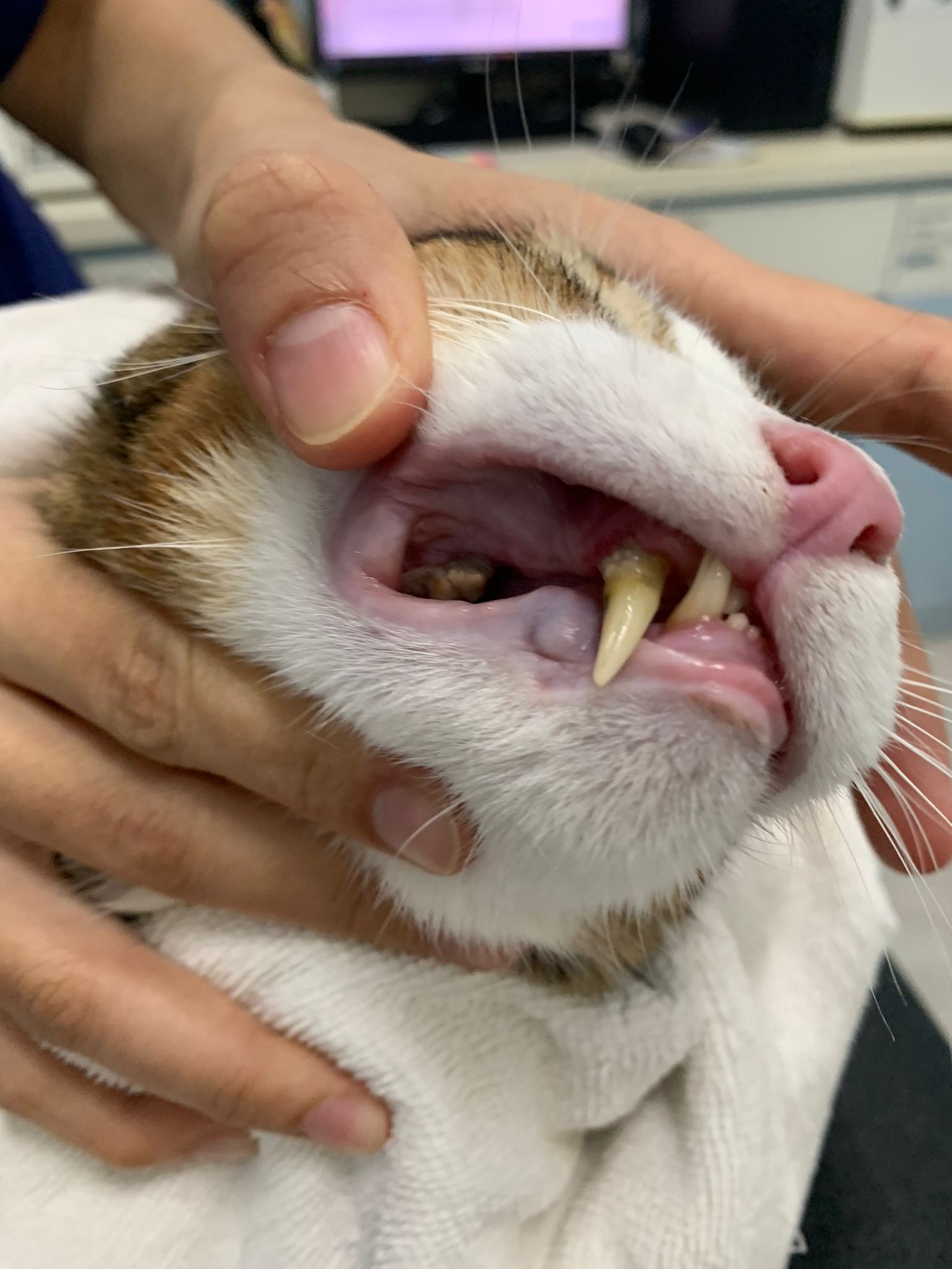 Teeth got lots of tar tar, right side even pressing on his gum. – if later his blood works show nothing then would be dental problem. He also got ulcer on his gum.