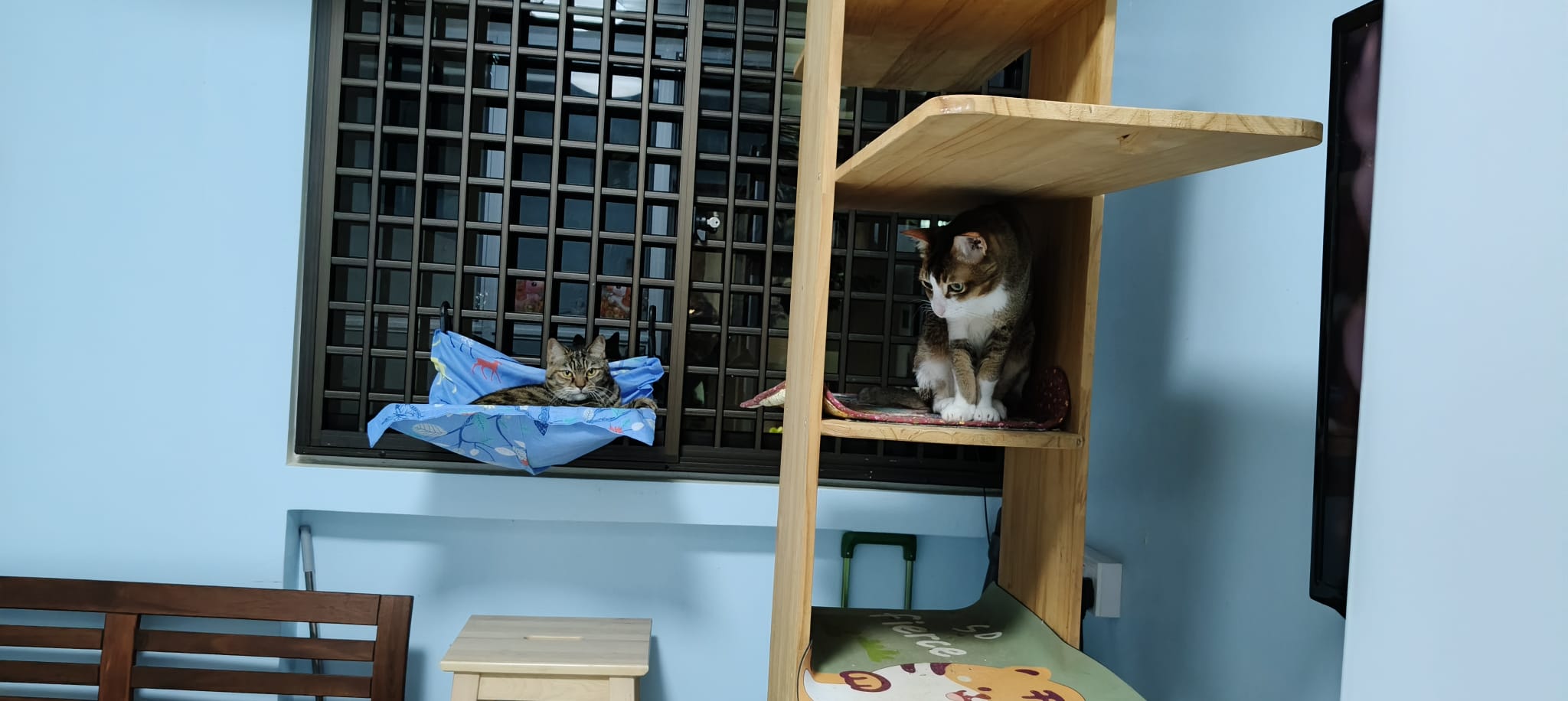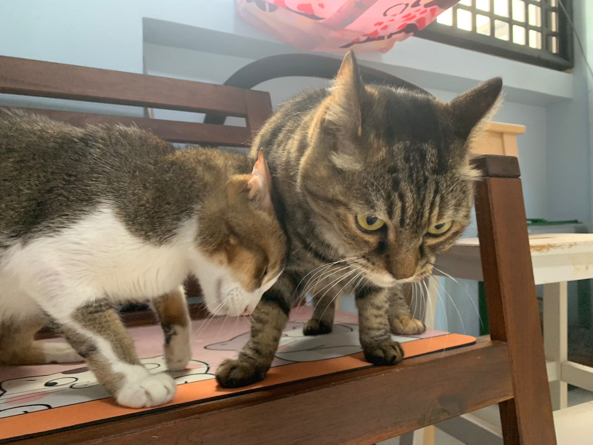 12pm+: brush both of them. Daring like to eat hair and skin. They happy. Daring diarhhoea still bad and that instant I decide the cassava litter in their room is really a bad choice, so will struck w Peepads and unicharm. off aircon. Open window n fan 4.