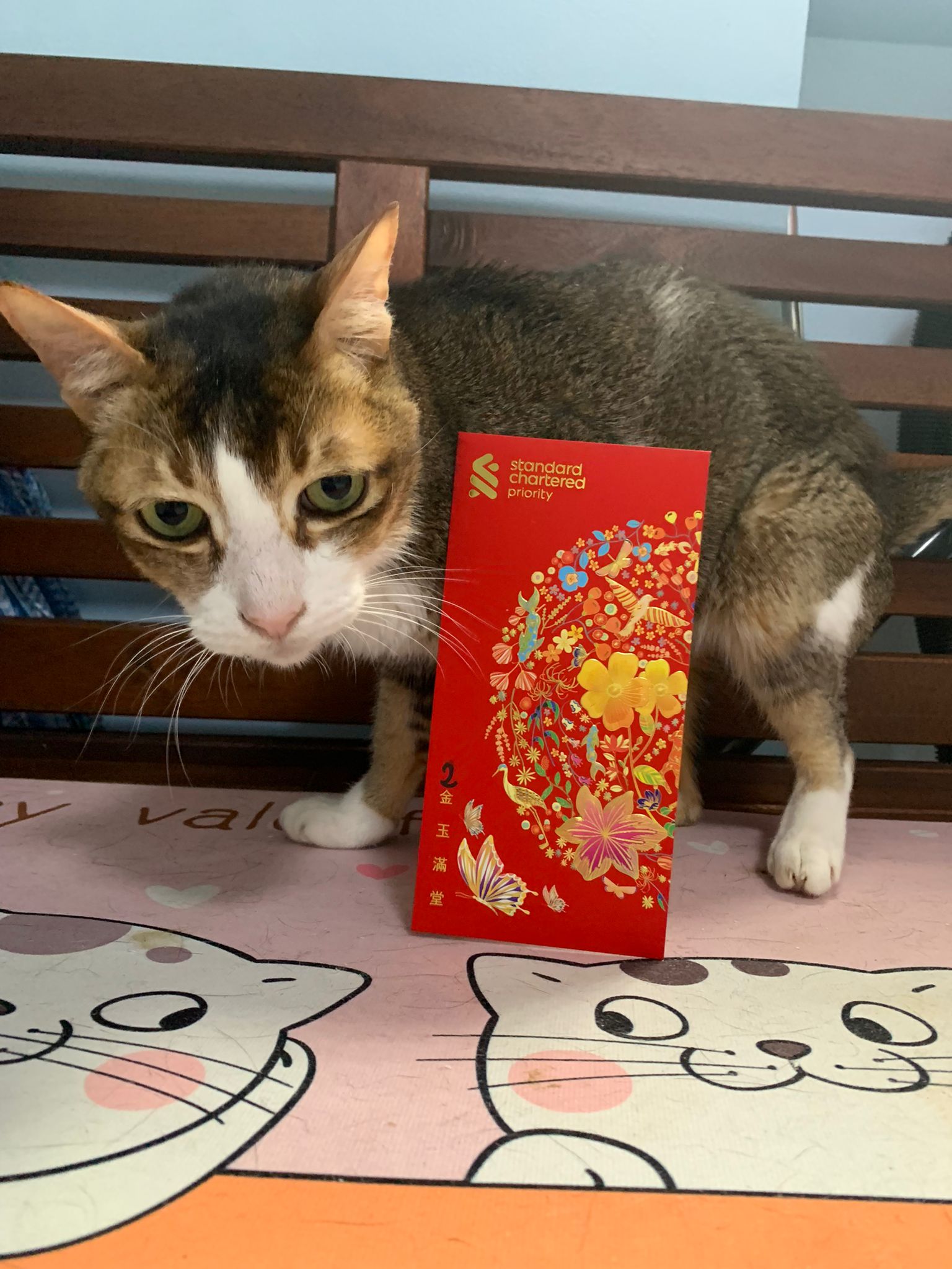 12pm+: mmm gave them an Ang bao. Daring and Kerry both pose with it. Daring Erm generally keep jumping off the bench cos Kerry very territorial or she keep smacking his face?
