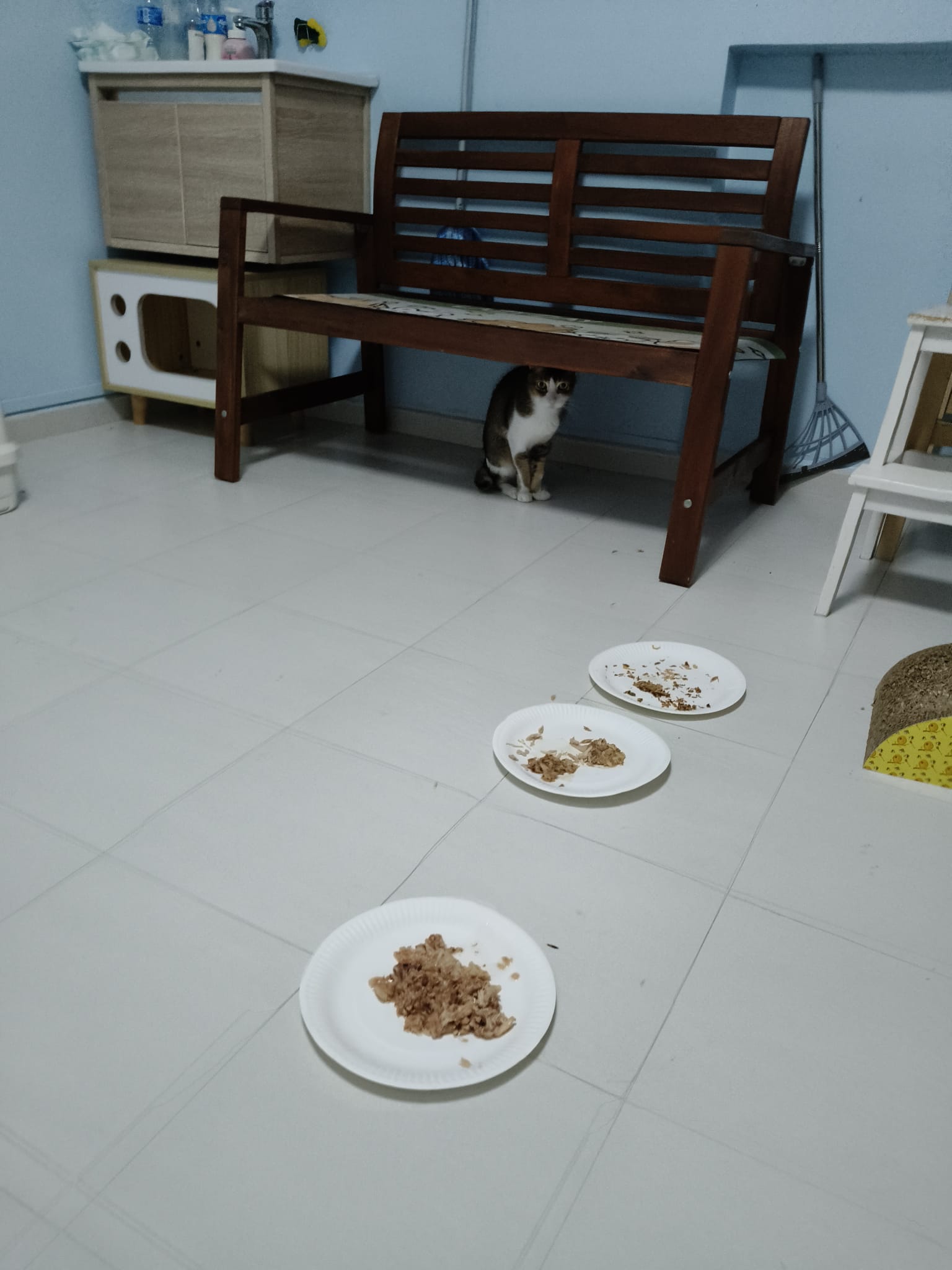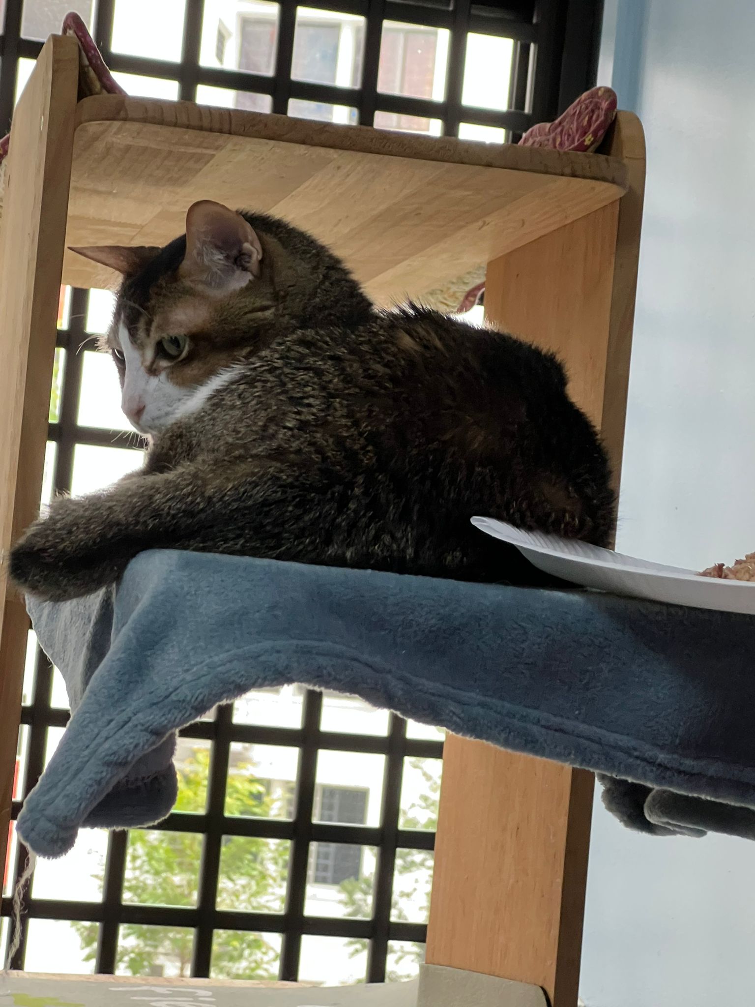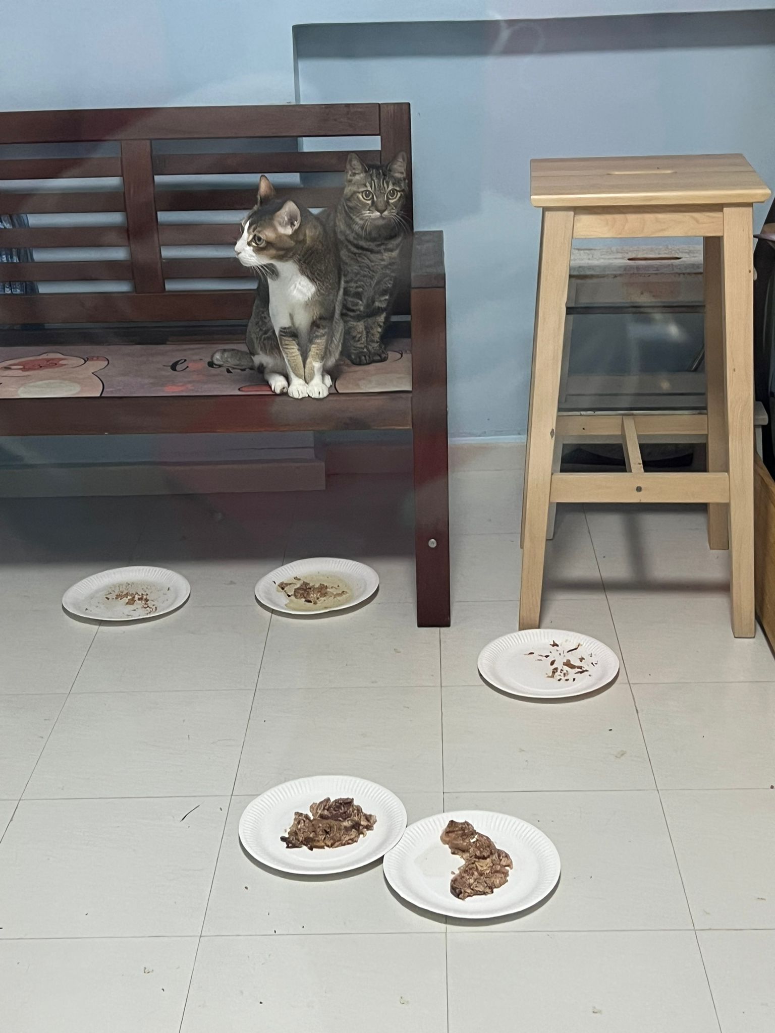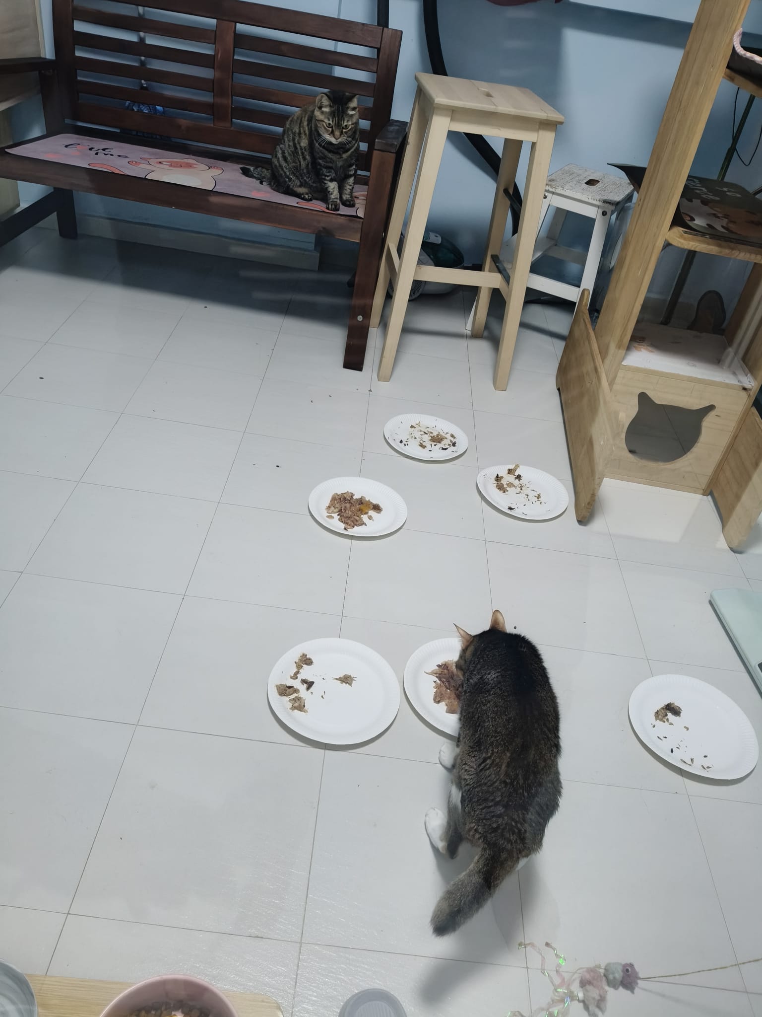 1pm+: I Waited so long their bench delivery not here yet. Today throw half their cat tree away. Rearrange a little. Tmr then give them the bench 🙂