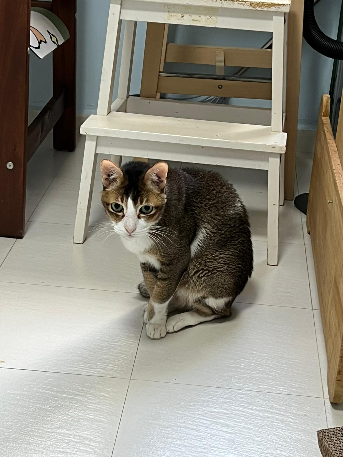 Loving boy, love to lick my toe, other cats will find him for sayang – he will help to groom other cats. He got a tendency to vomit cos he love to lick plastic also! He likes bistro chicken and a/d. To be adopted with his brother Alley.