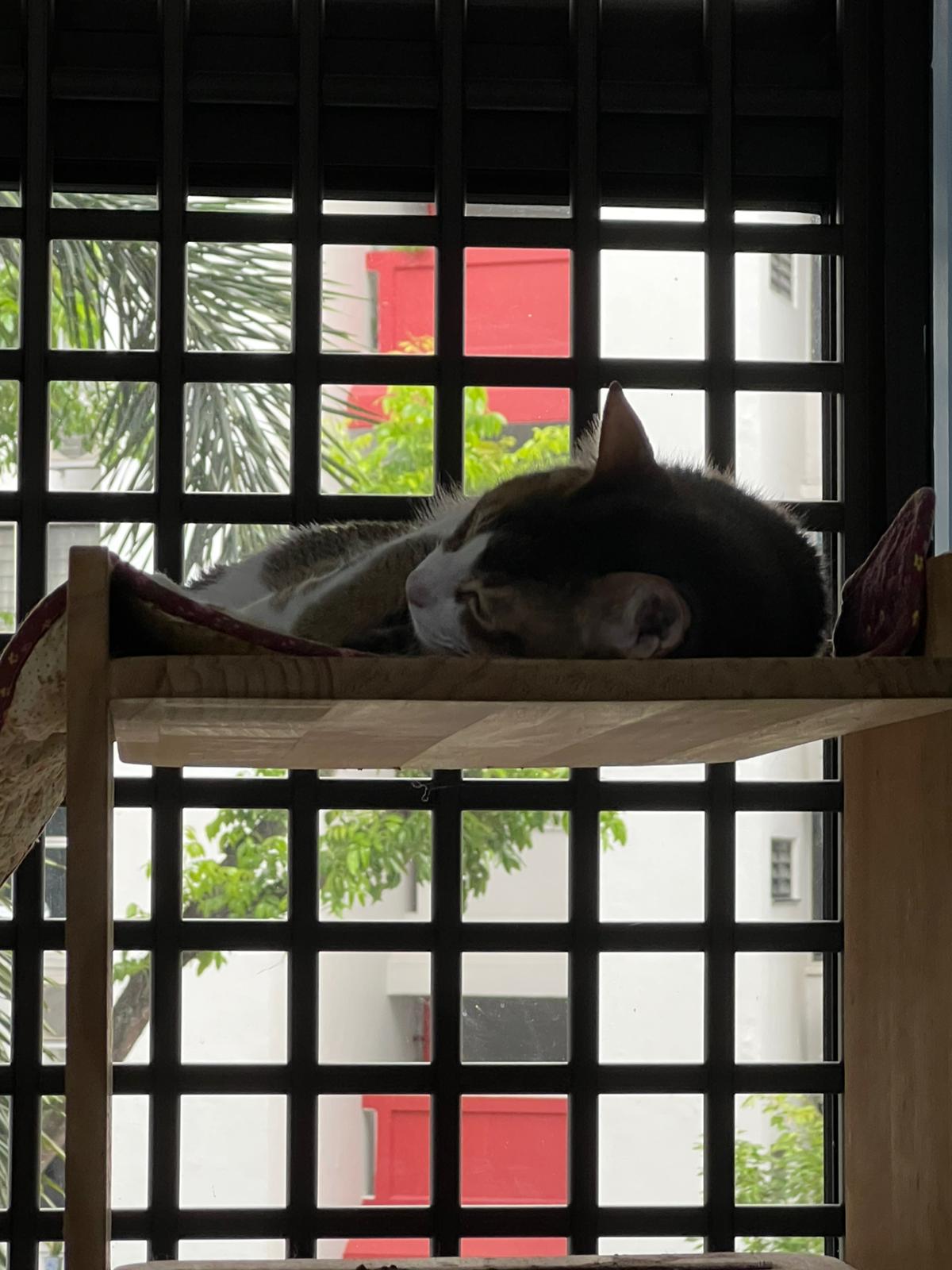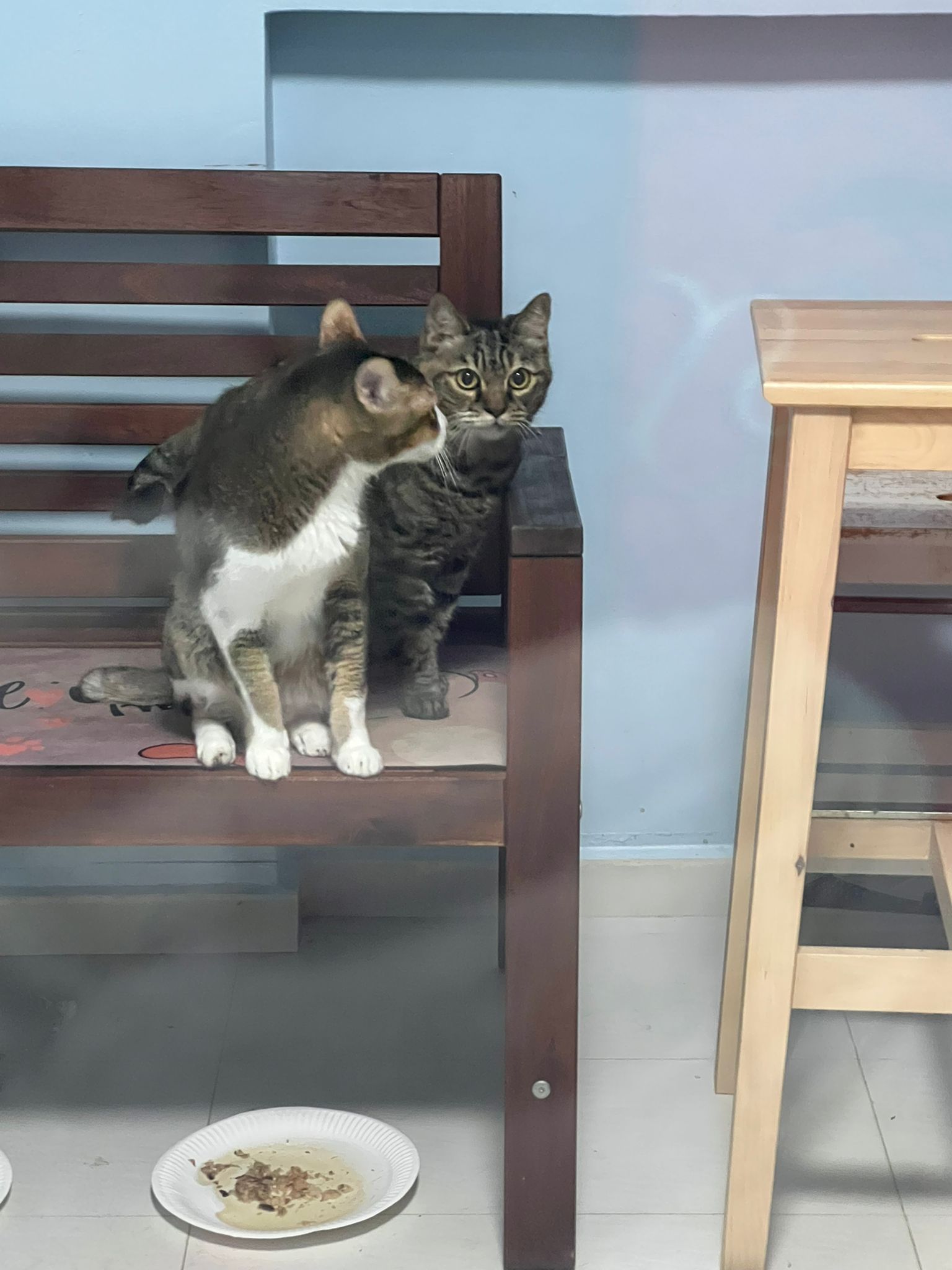 Morning: I think I can throw away their cat condo. This bench is v good le… both of them will want me brush and sayang on bench. Today got photo shoot of them tgt. Kerry groom daring today