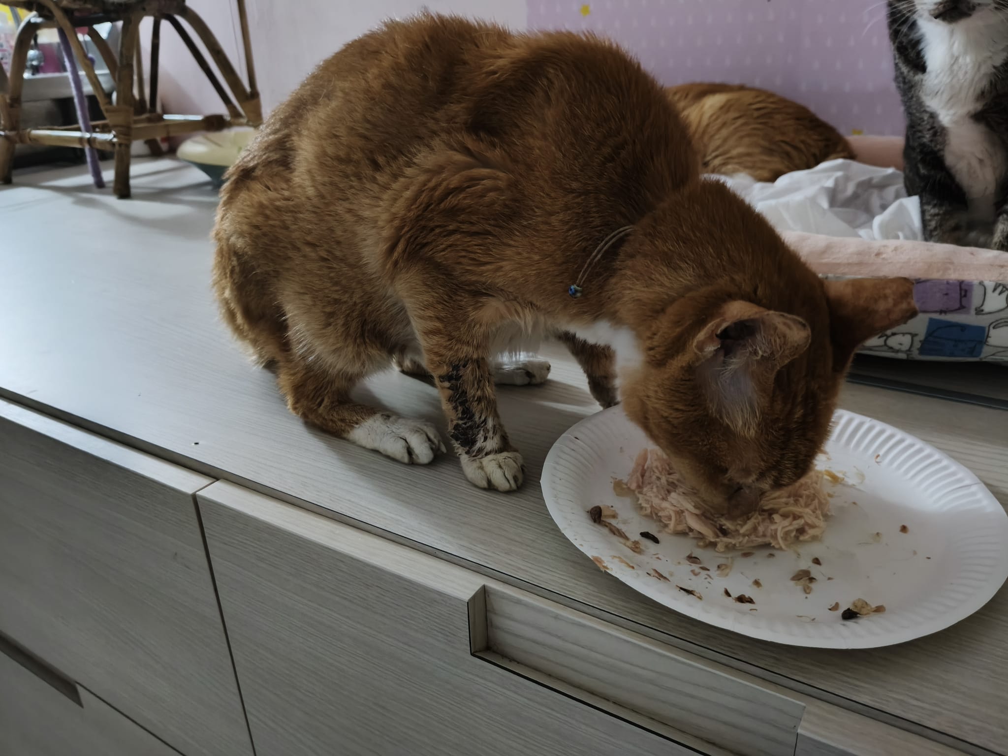 135pm: I serve extra cans of food- didi hungry go eat tuna w chicken ham