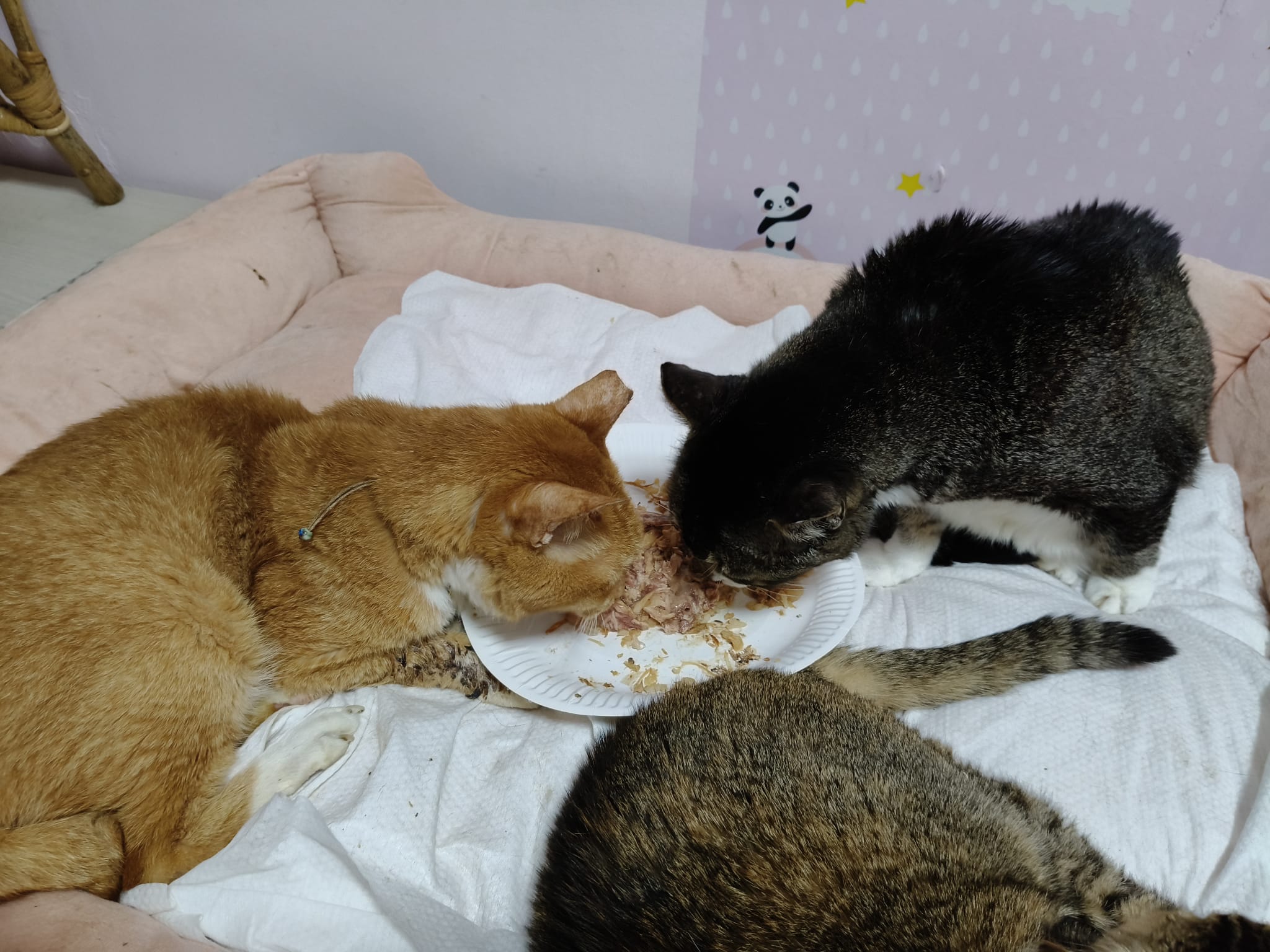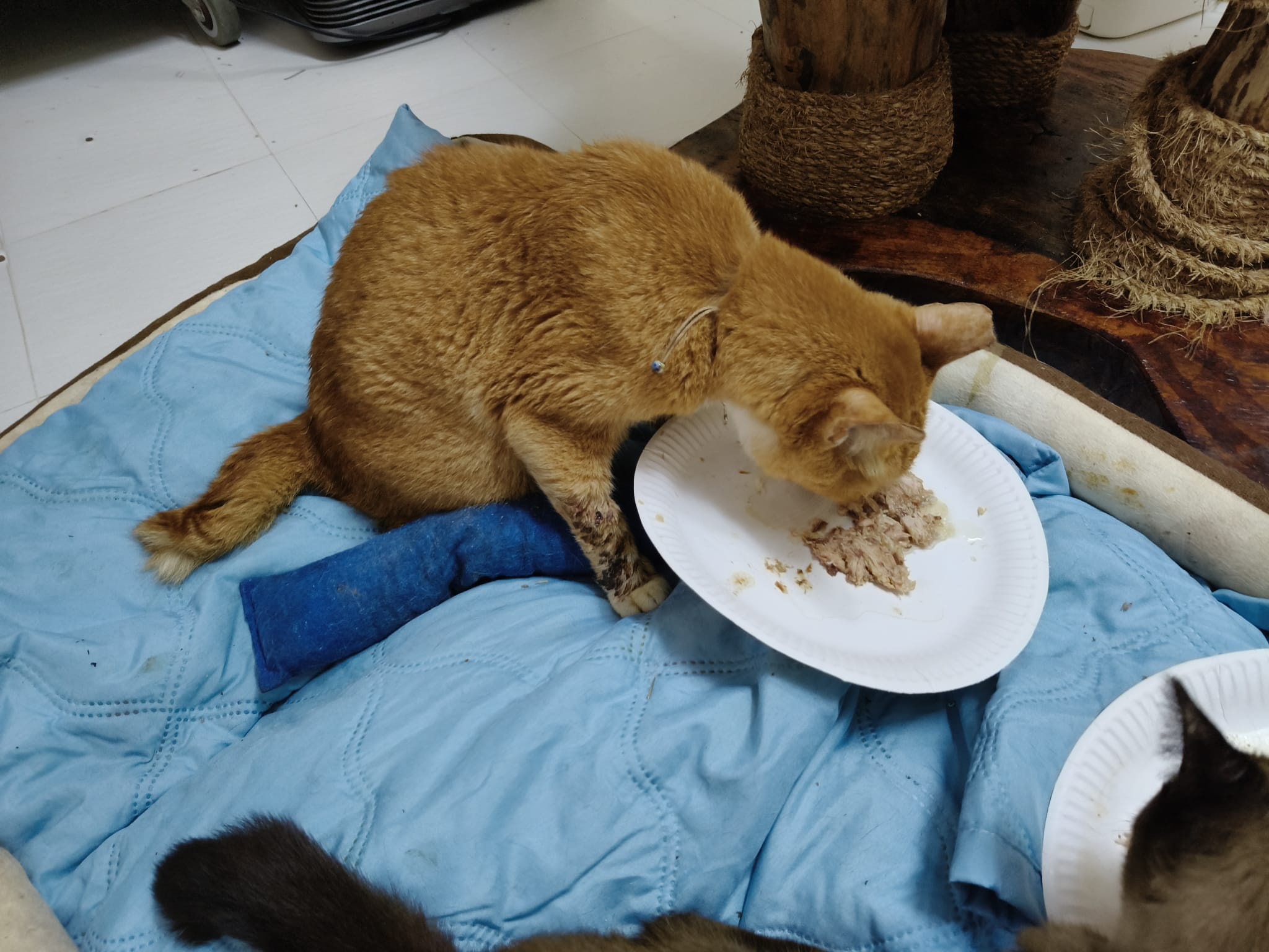 1pm+: Rush back 猫房, Subcut him given bupre, b12 n meloxicam. serve tuna w smoked fish w tiny wellness he eat