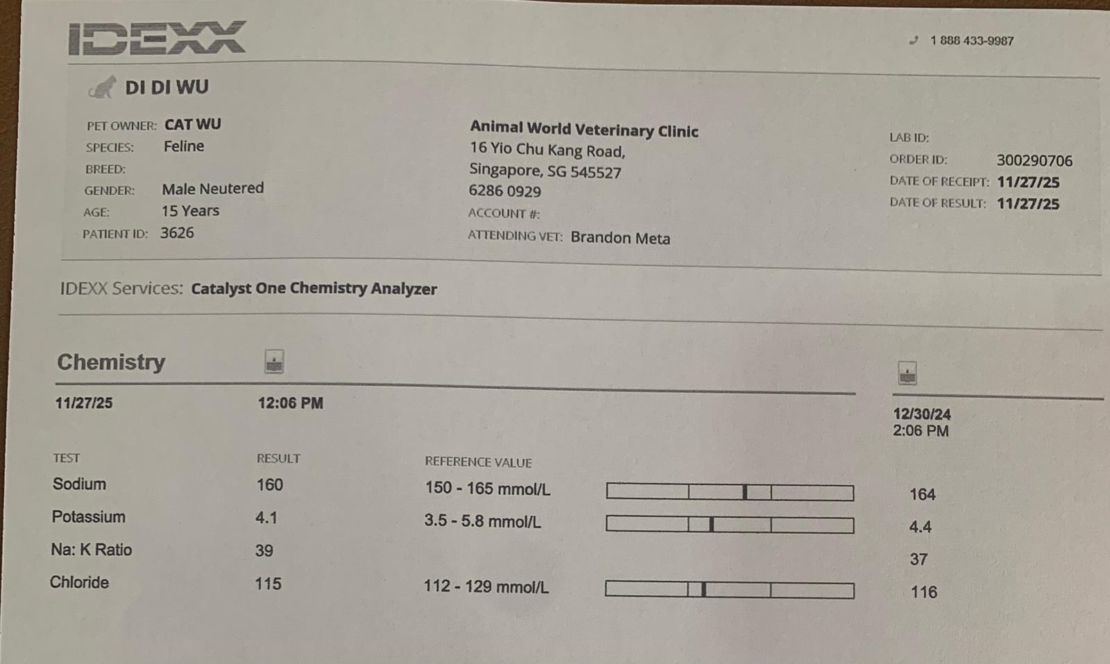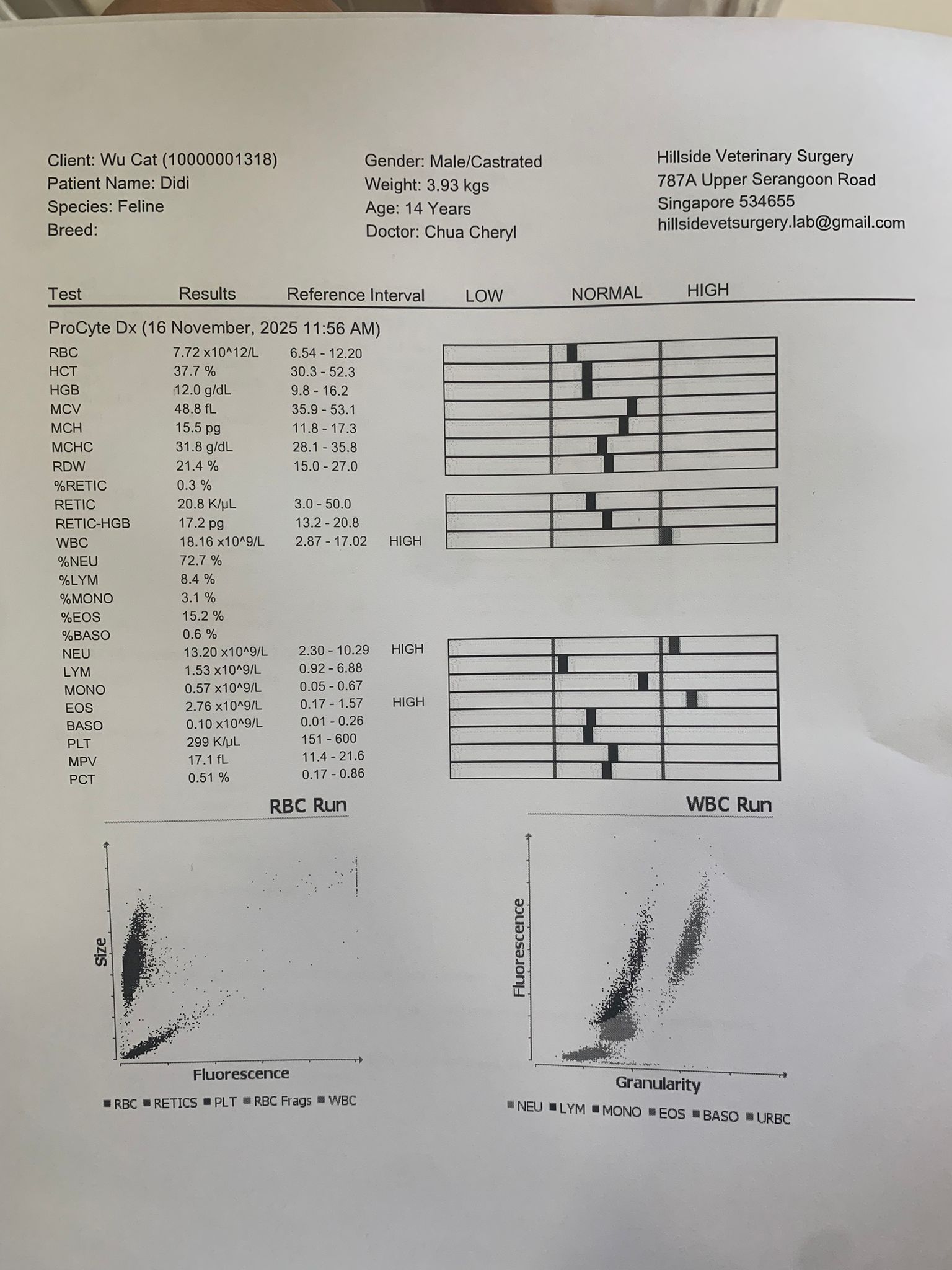 11.33am: didi still waiting for his turn in clinic cos ah boy needs to draw blood, xray and u/s to take urine etc. of cos he meow a lot. Loud but not consistent so still ok.