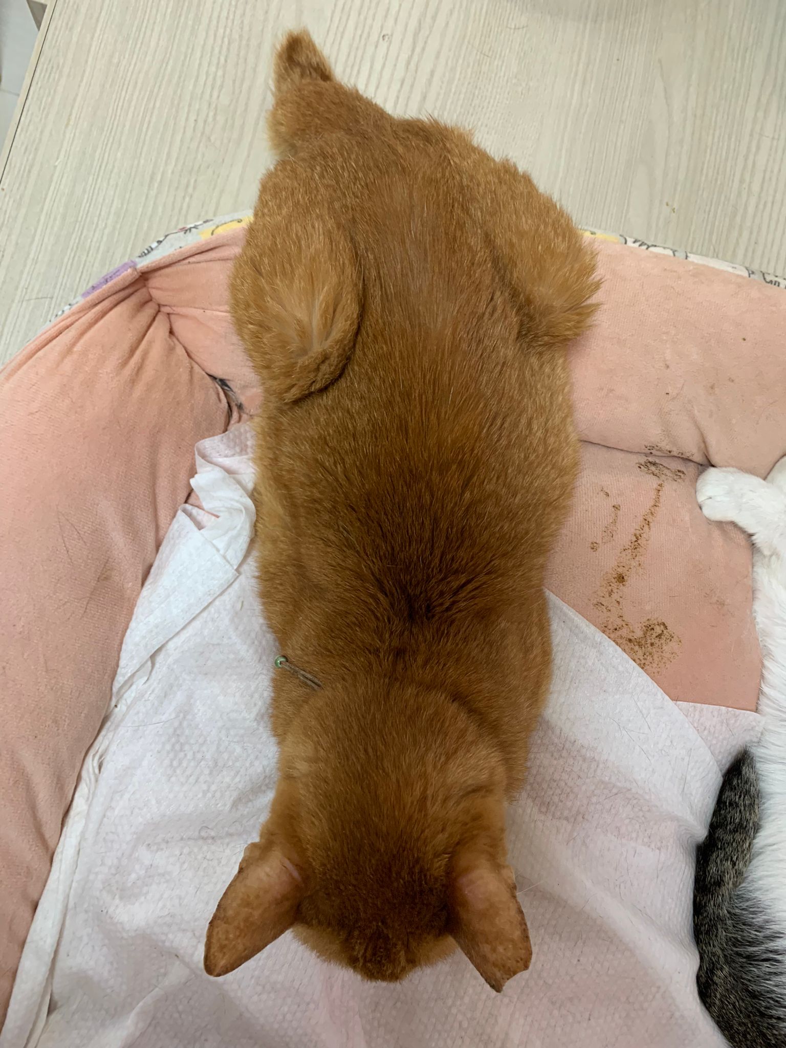 I sayang him he still respond to me. Still 翘屁股、 still walk about. Didn’t howl today. Worried. Didn’t eat is ….