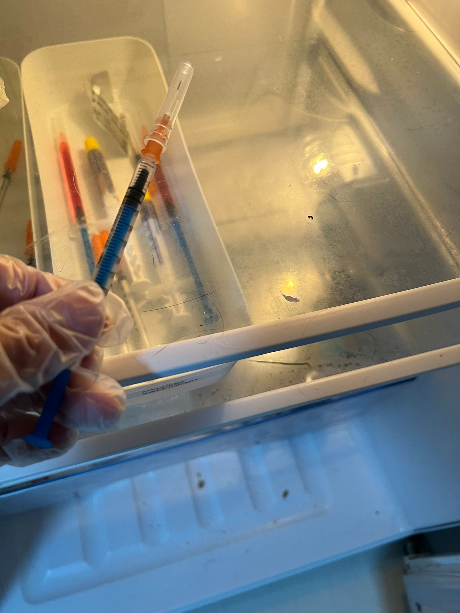 10pm+: mmm:”1st thing is jab. Then clear plates n feed. Meds have time to react n he ate”