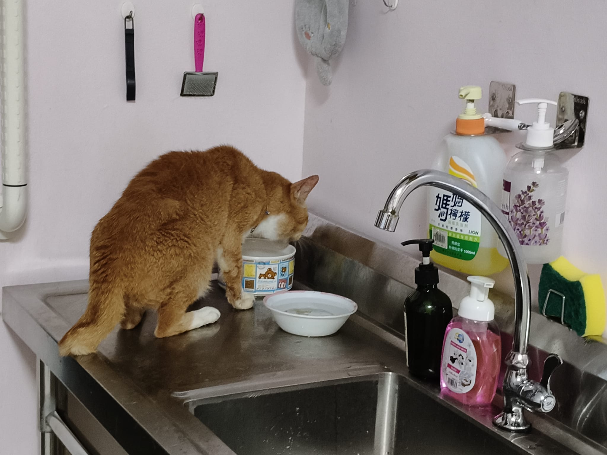 12.13pm: didi meow I so happy. He went kibble plate. I serve him n manja snack first