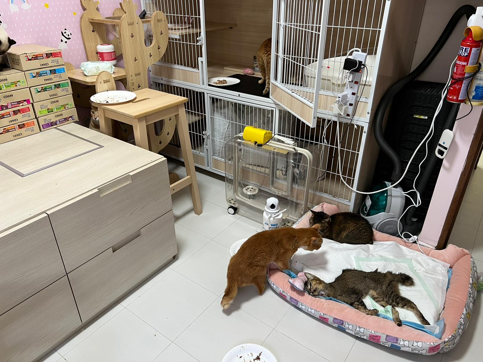 1pm: Bring back to 猫房 5G, in tv room, there are safe room for now.