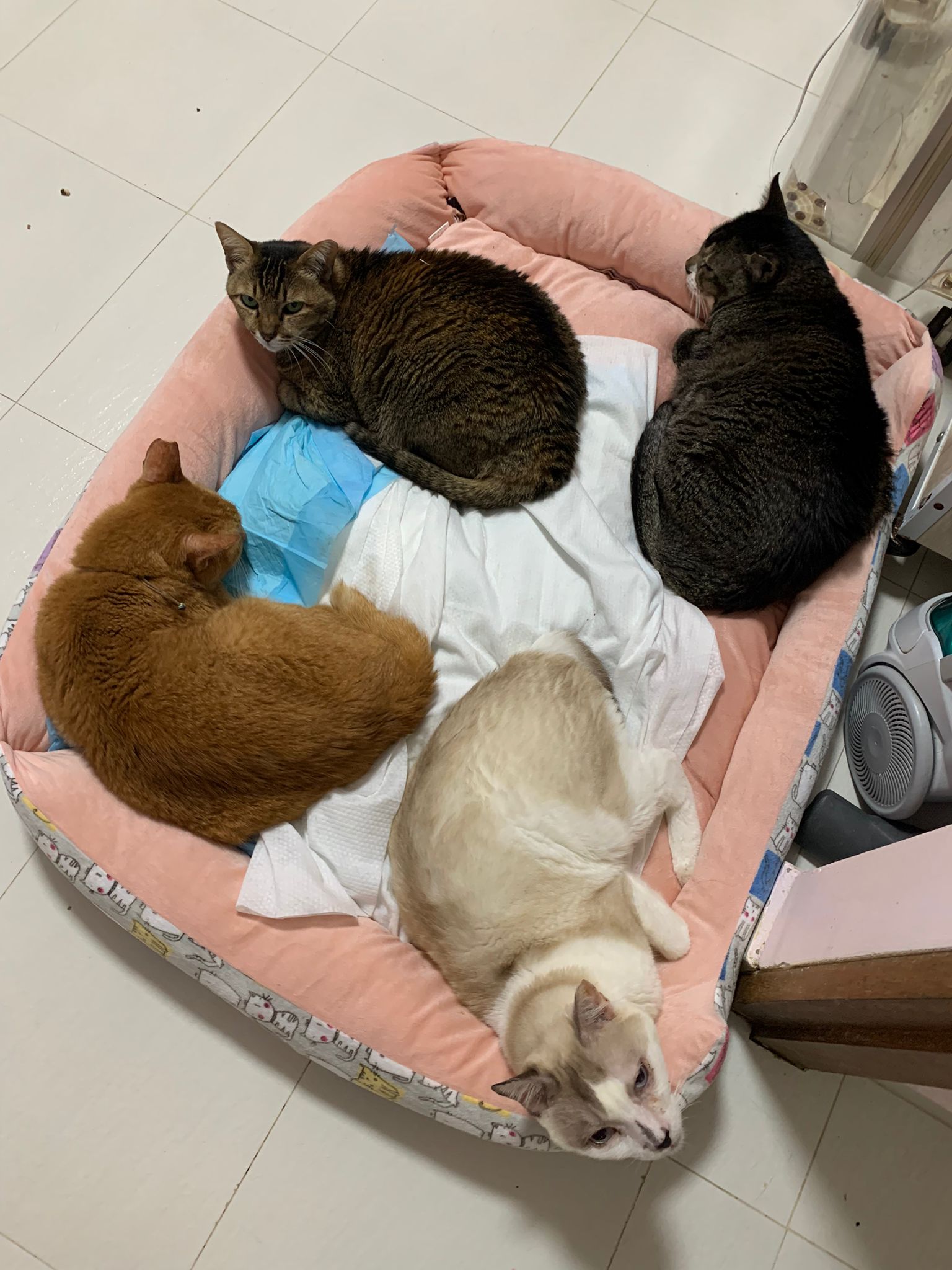 3.30pm+: i added new teabreak slot for the cats so that the critical one someone is there to check latest status and sayang. Today didn’t give bupre at this slot cos I just give at 12pm+. Told jo to give everyday at 3.30pm too. Max up didi pain killer. I want him comfy happy living his days.