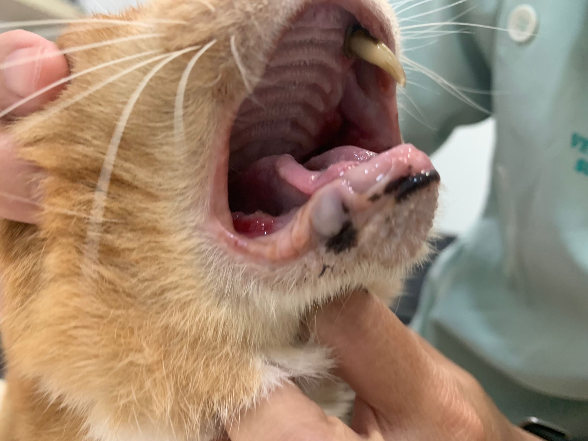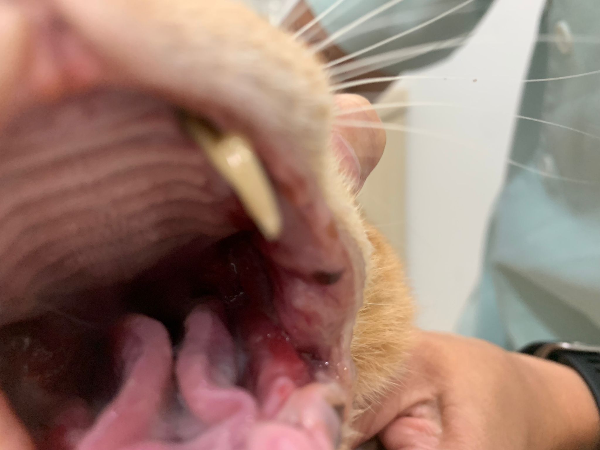 Good news is he don’t have teeth at his gums where the lump is, at least won’t be pushing his teeth to poke him