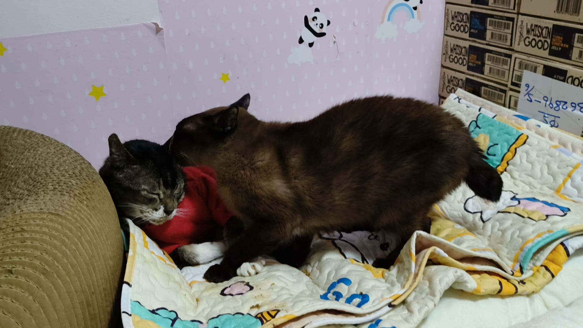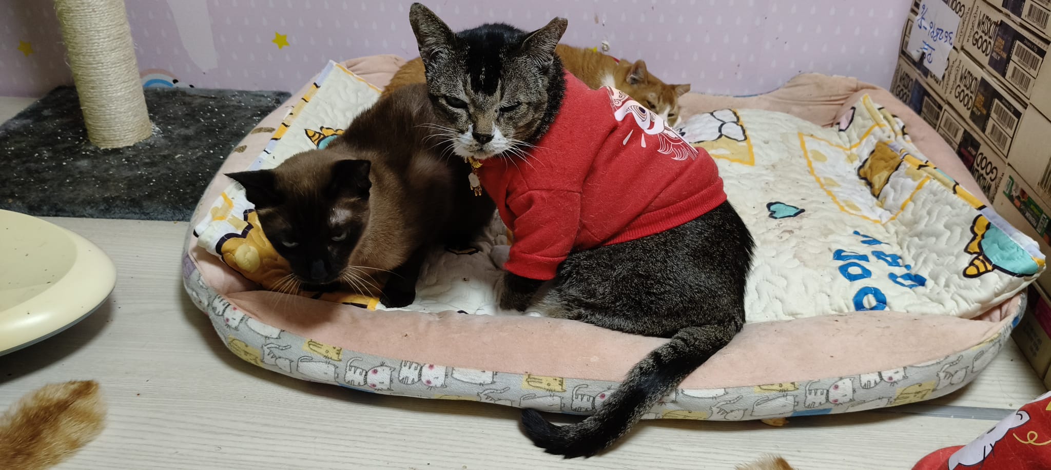 4pm+: saw jo photo is Jack in the circle bed, must be he don’t want to leave that bed and they carry them n bed into 猫房