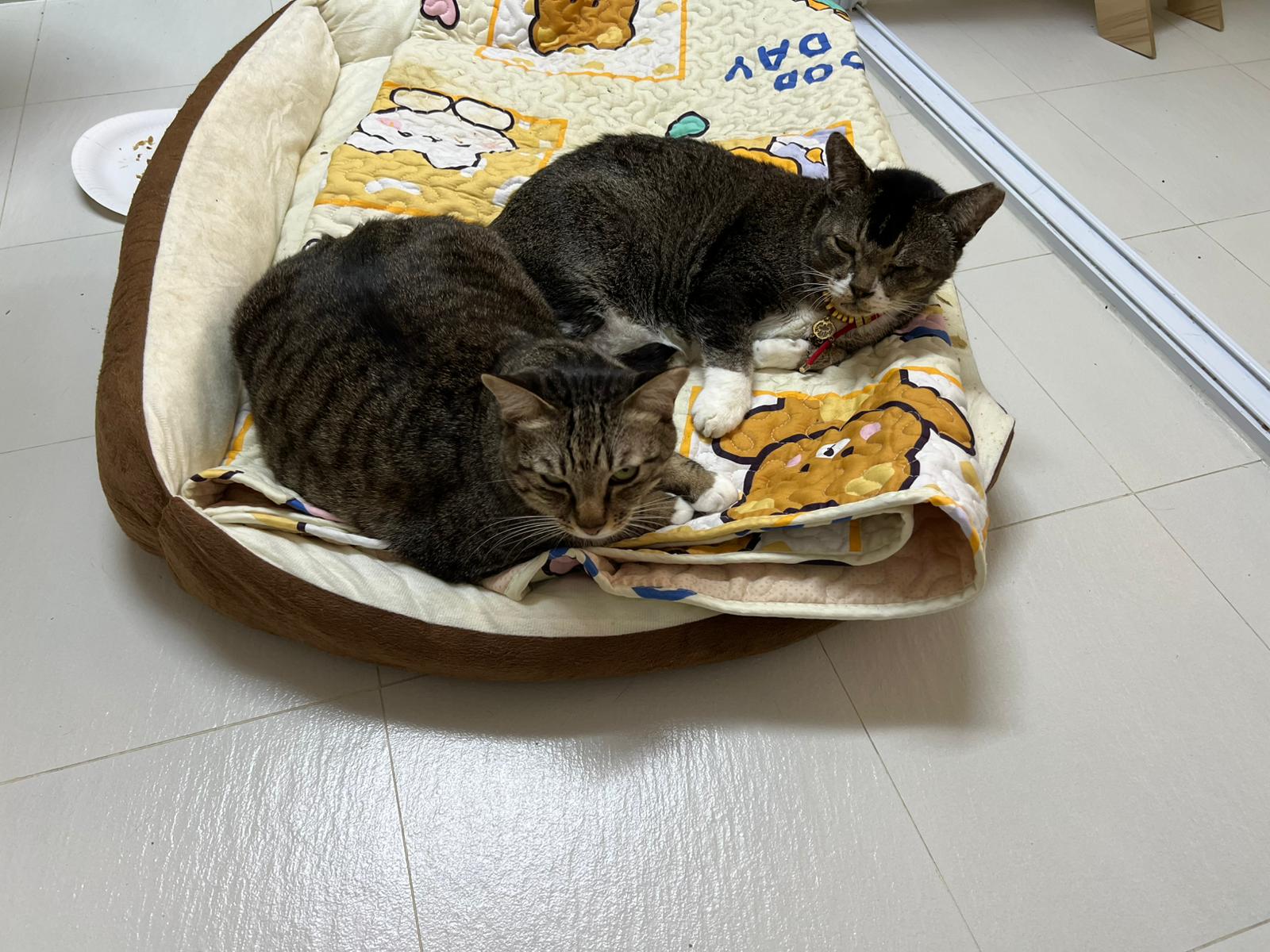 These few days I 早出晚归 … bz renovating 4th generation 猫房 … night: saw renny Nala laze ard jack again (lovely) then amber also laze beside him – nice … but I Duno I worry what shit cos jack also v old le. Morning I check on him again b4 I go out, he is fine.