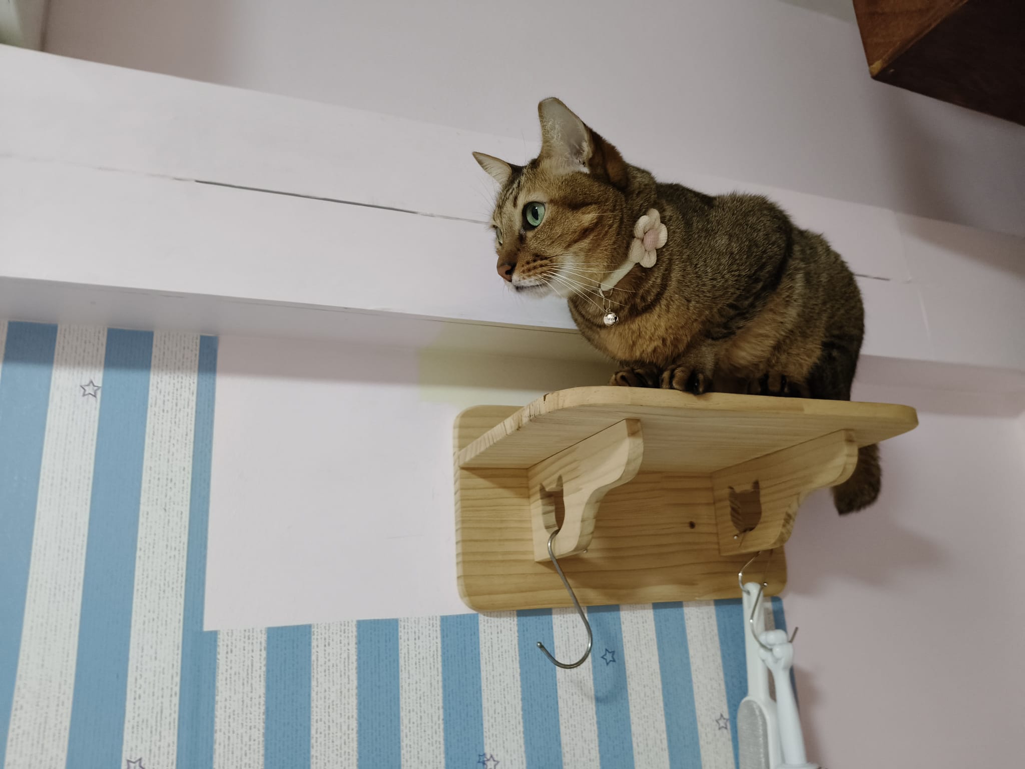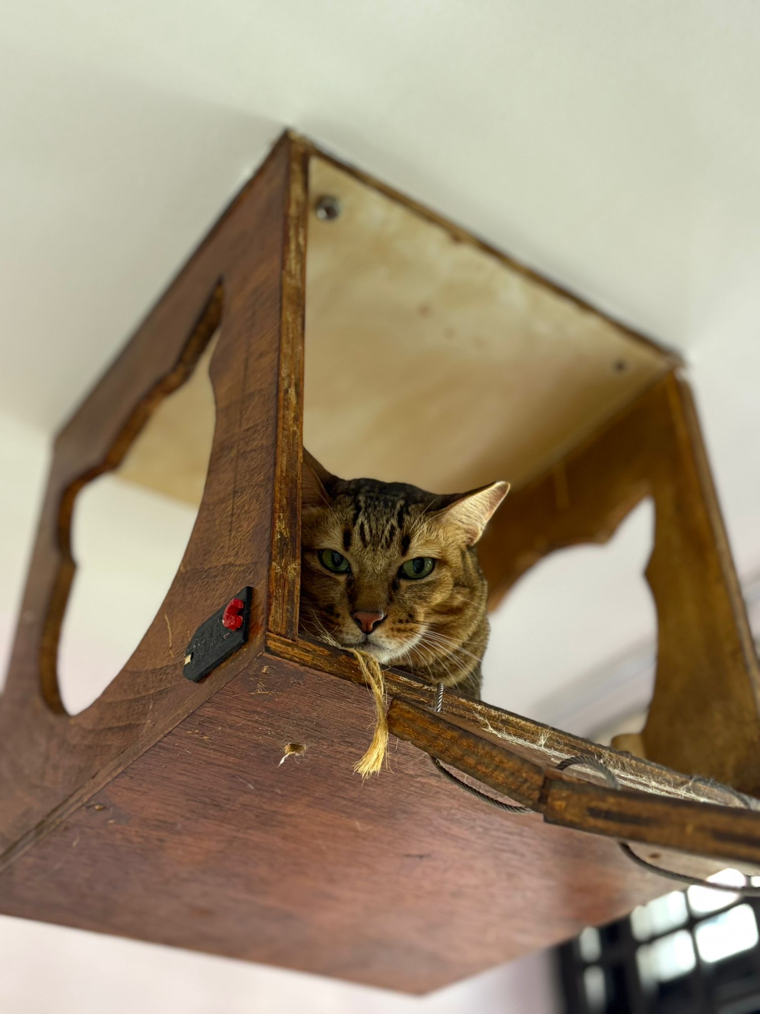 • he is fine w ah boy looking at him at the top of the cat tree
