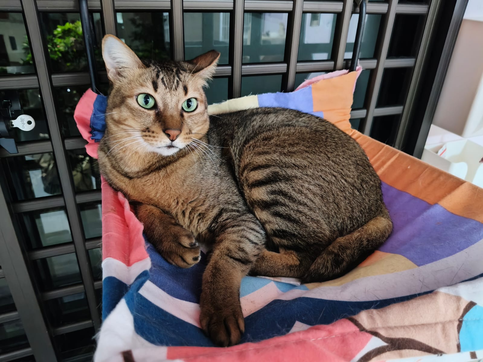 • he climb the window n don’t seem to be able to squeeze out of the mesh. So means the chance I can merge them w the others soon r high.