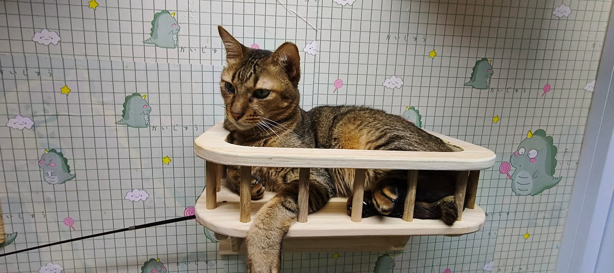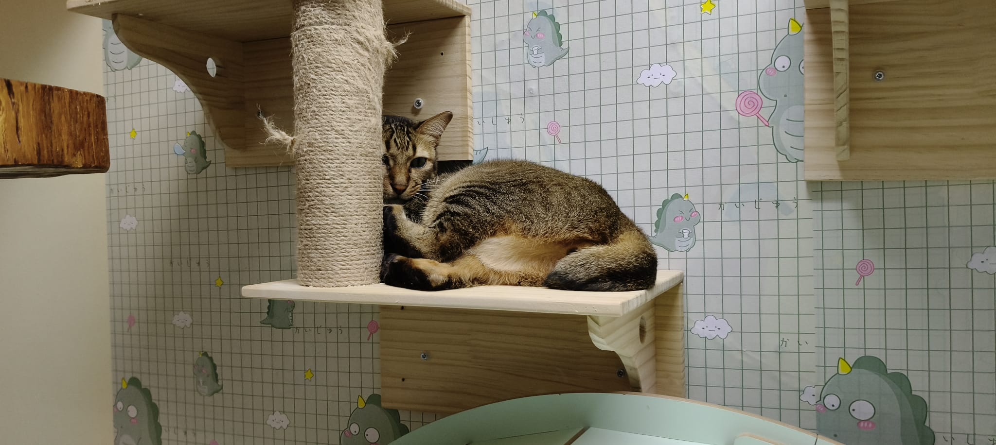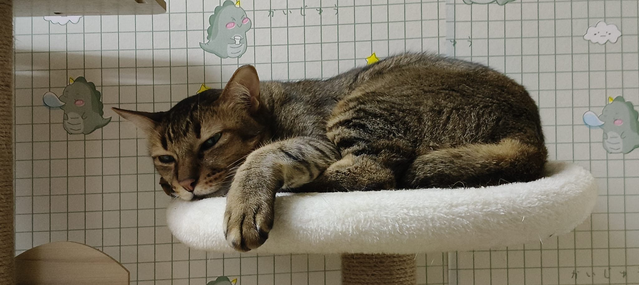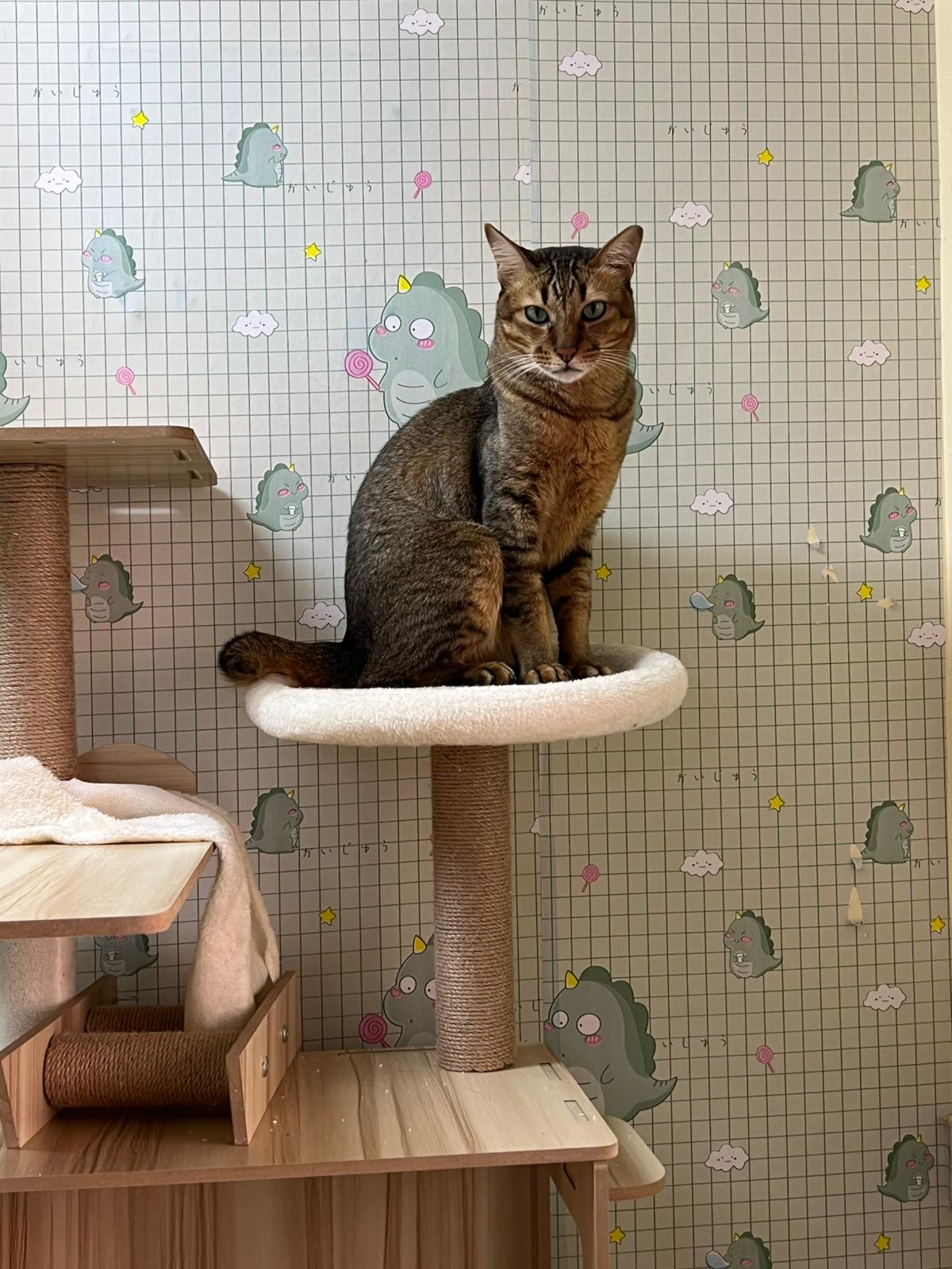 9.30am: junior like to sleep on the soft cushion on the new cat tree