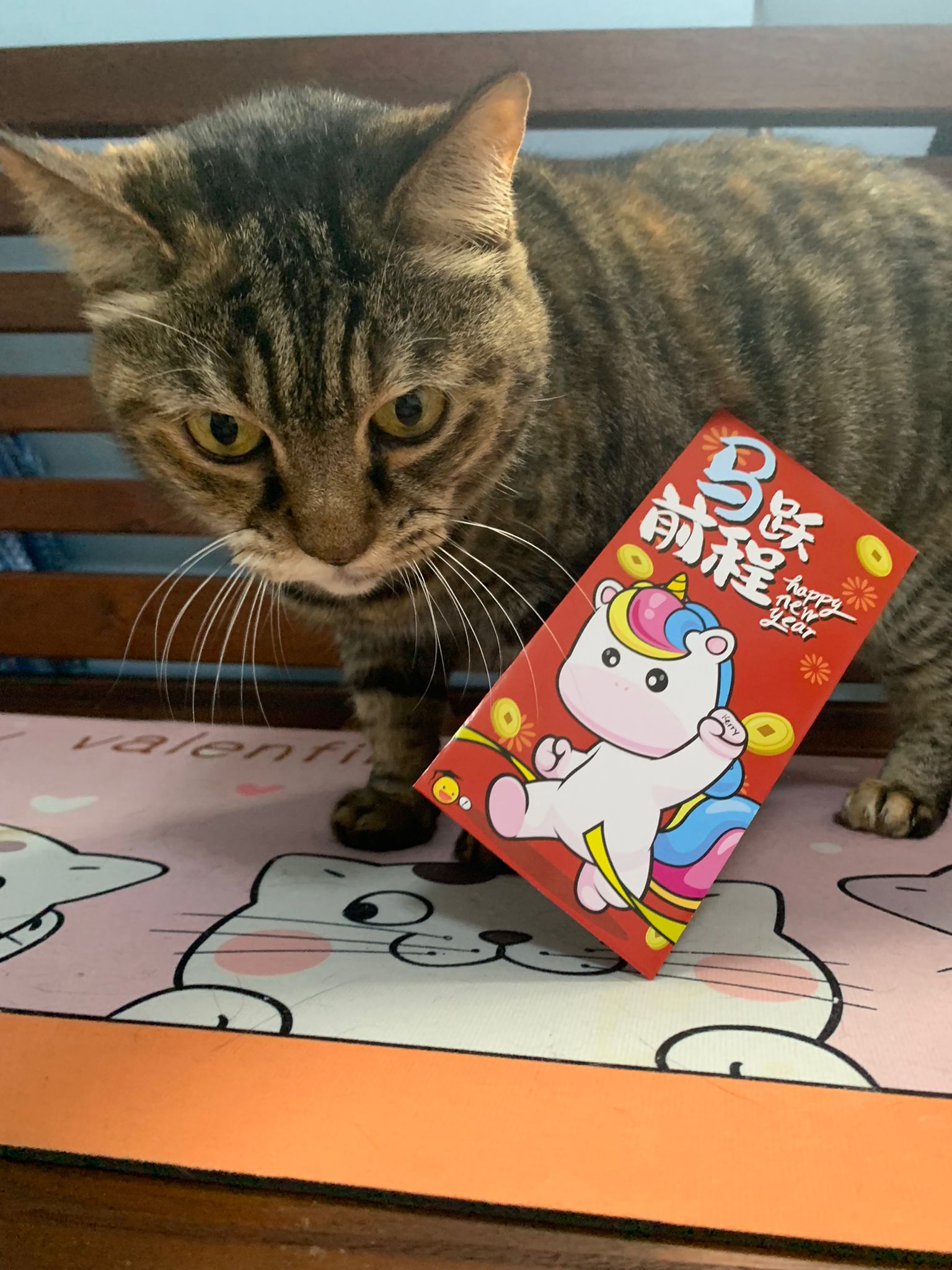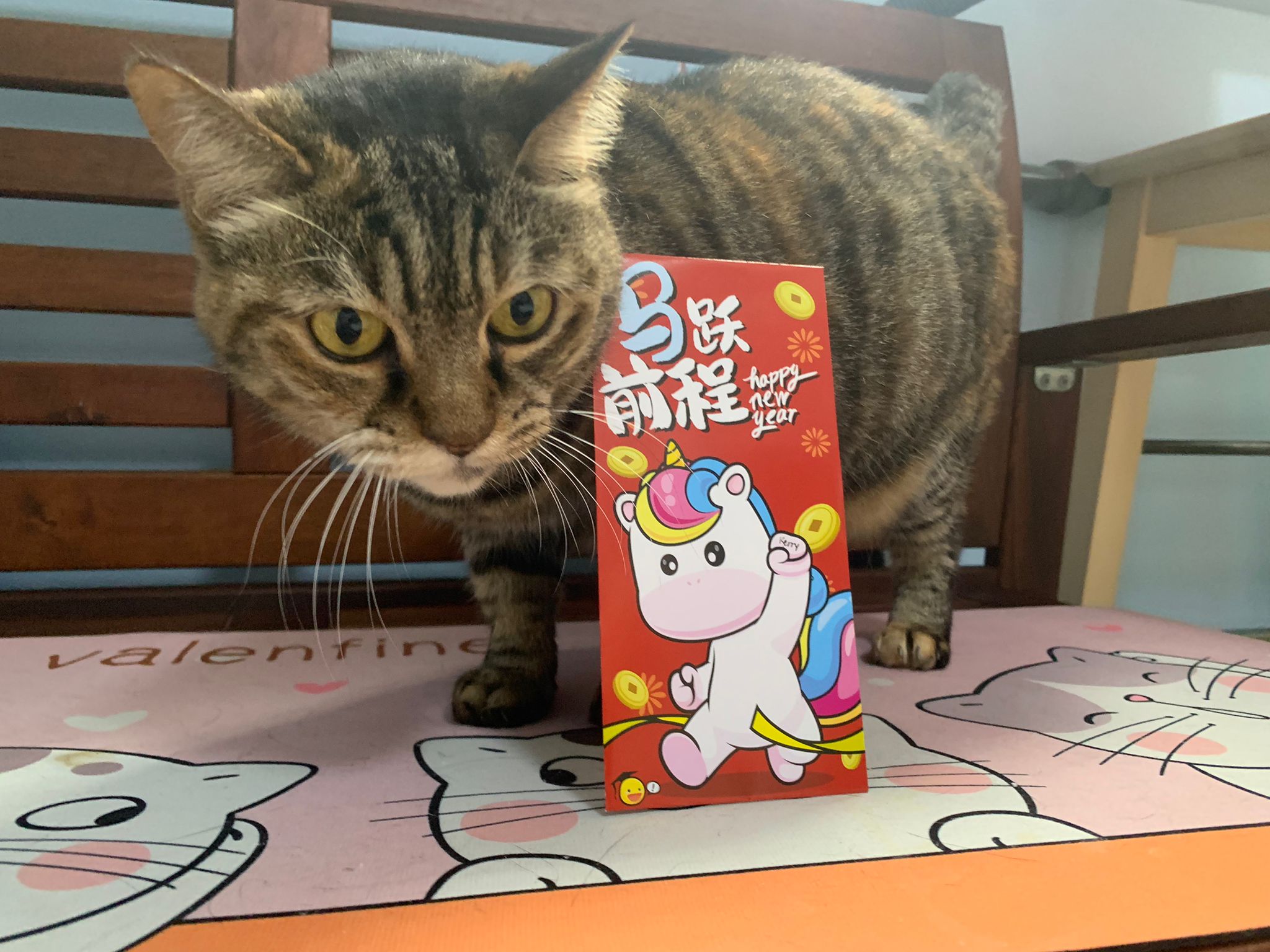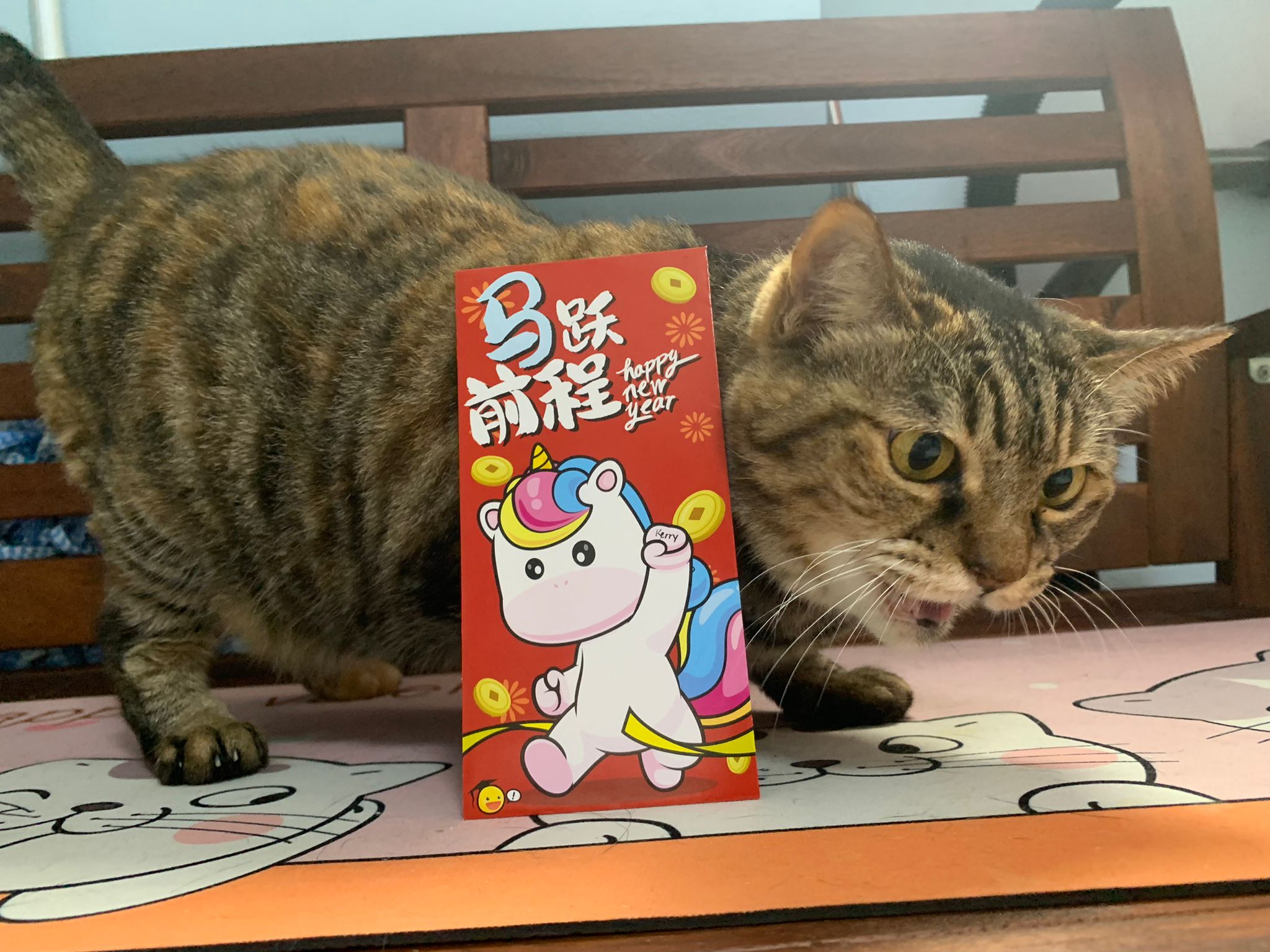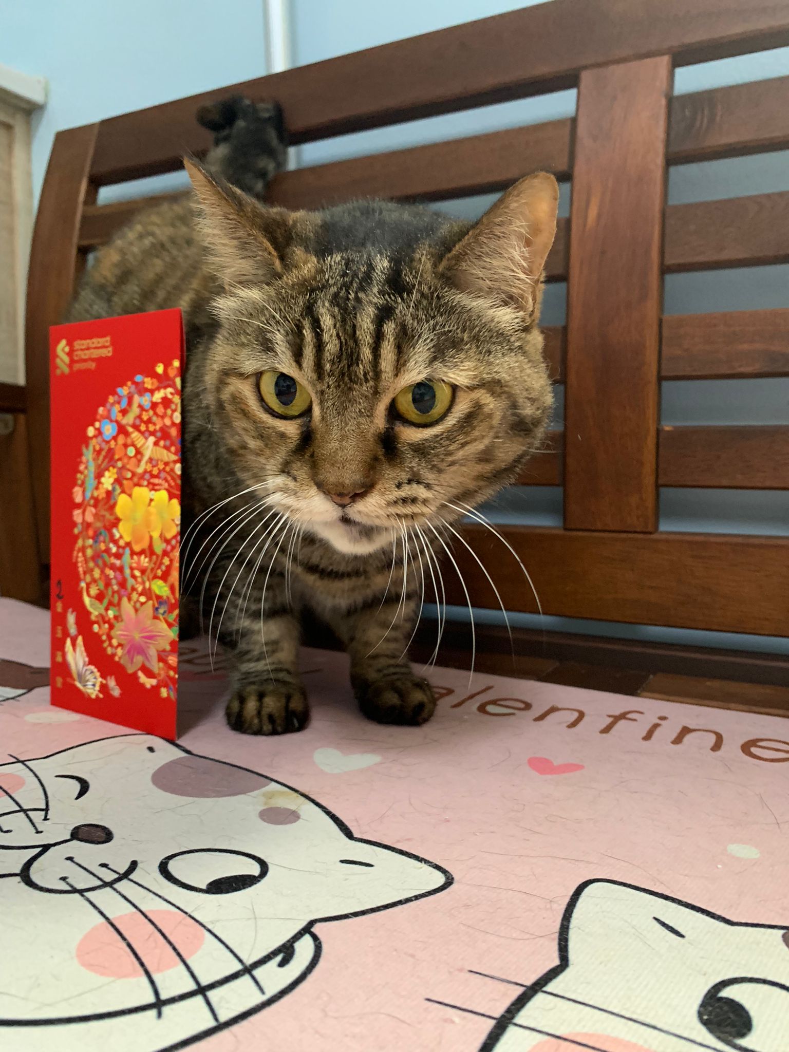 12pm+: mmm gave them an Ang bao. Daring and Kerry both pose with it. Daring Erm generally keep jumping off the bench cos Kerry very territorial or she keep smacking his face?