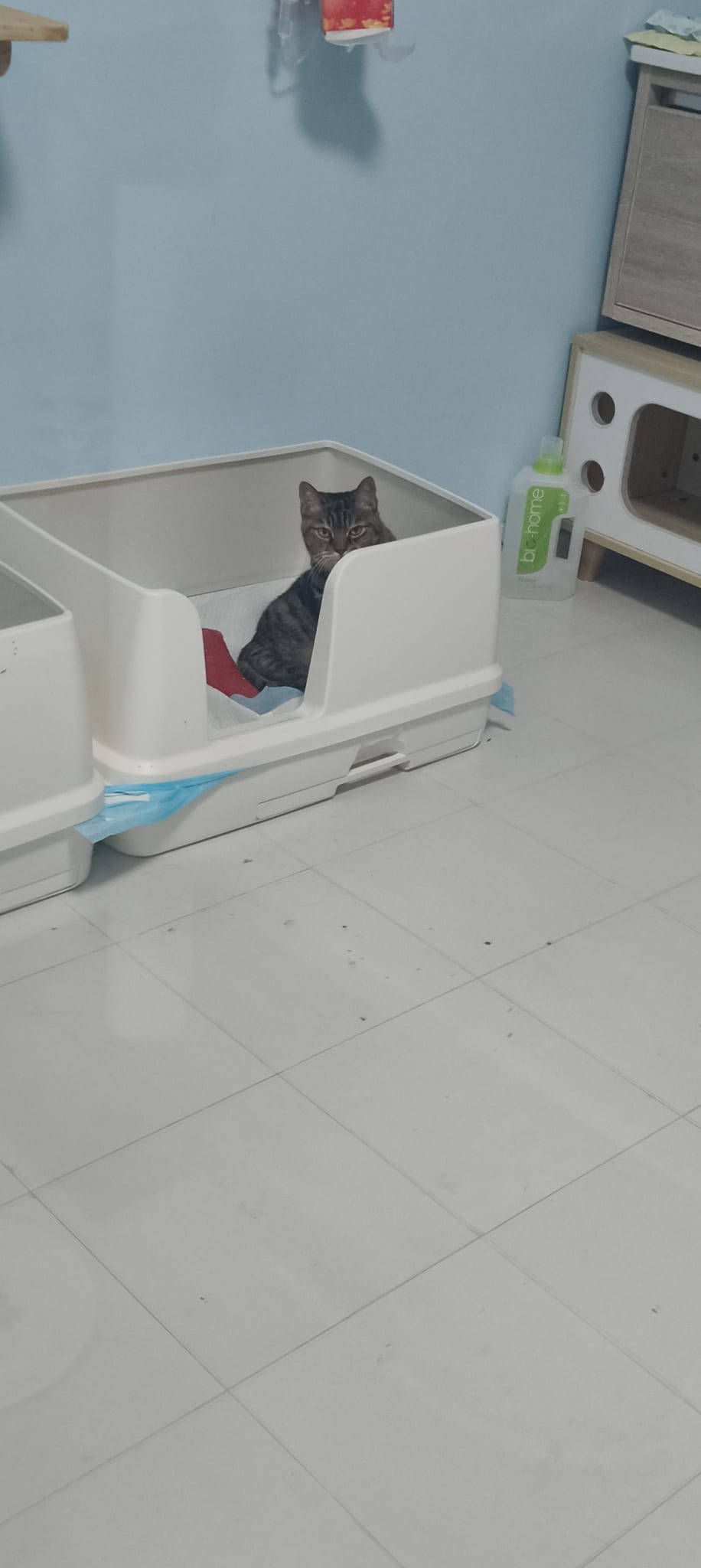 morning: I check on her tummy right side (mmm says got issue) I didn’t press la, but Didn’t seem got issue to me. She is happy. If anything will be cysts like Don n Raichu? Nah don’t anyhow press…. Daring need a vet check more. No slot. Night; mmm:”Kerry hoarding the bin, keeping clean”