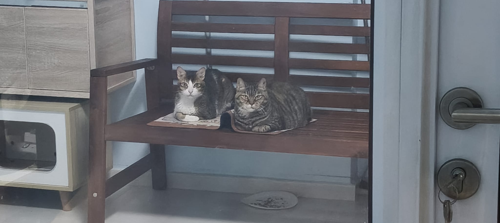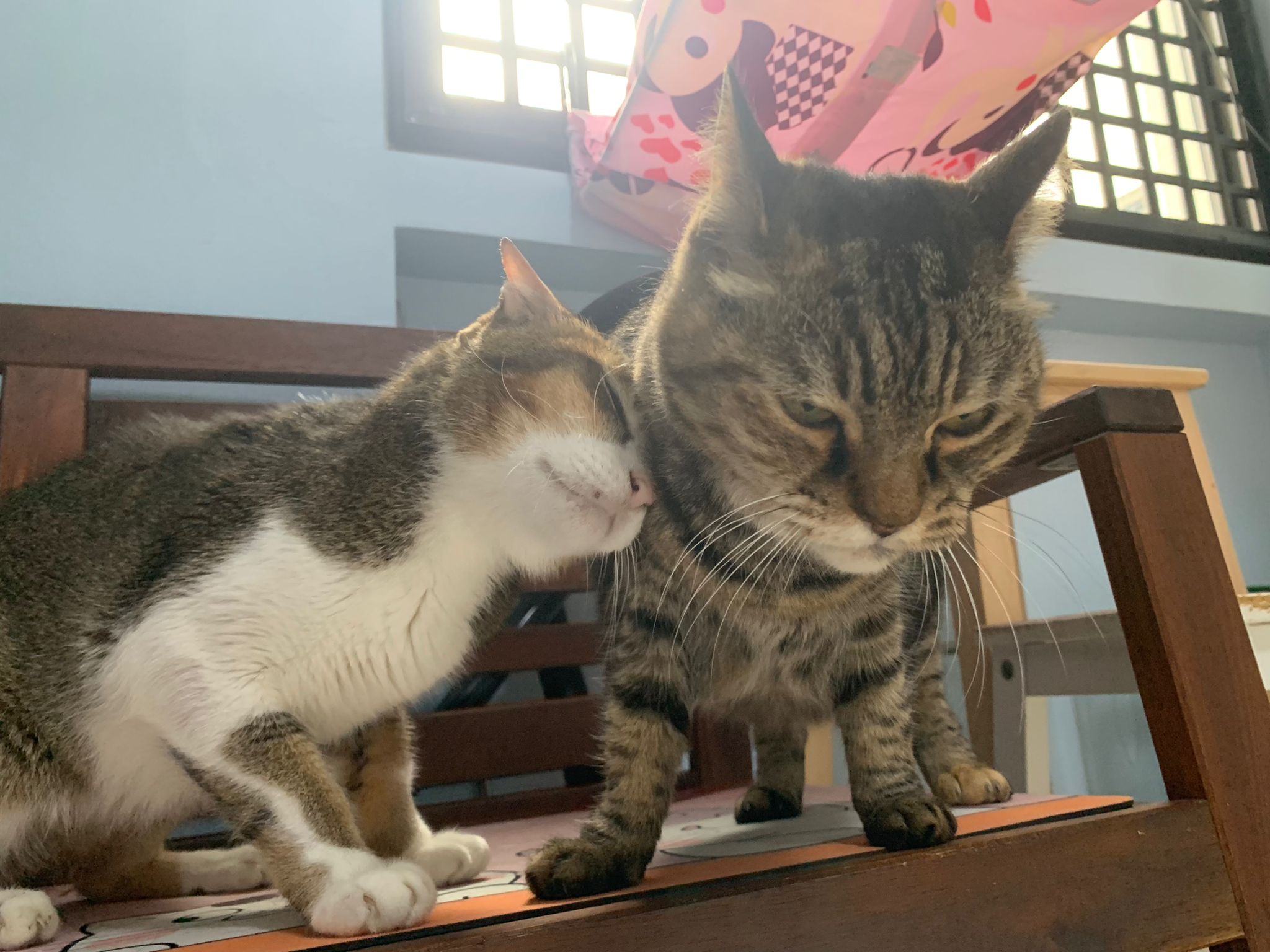 Morning: I think I can throw away their cat condo. This bench is v good le… both of them will want me brush and sayang on bench. Today got photo shoot of them tgt. Kerry groom daring today