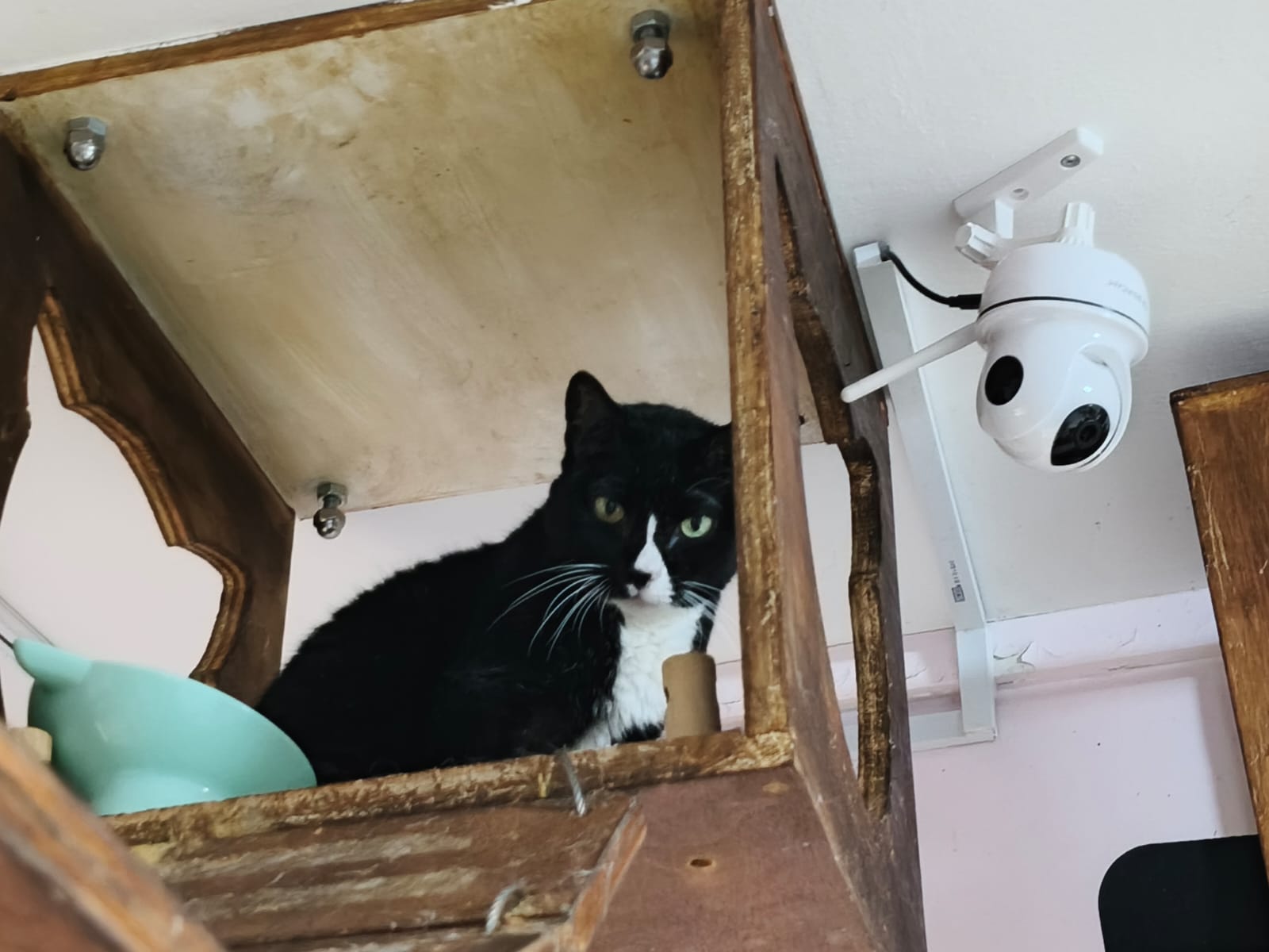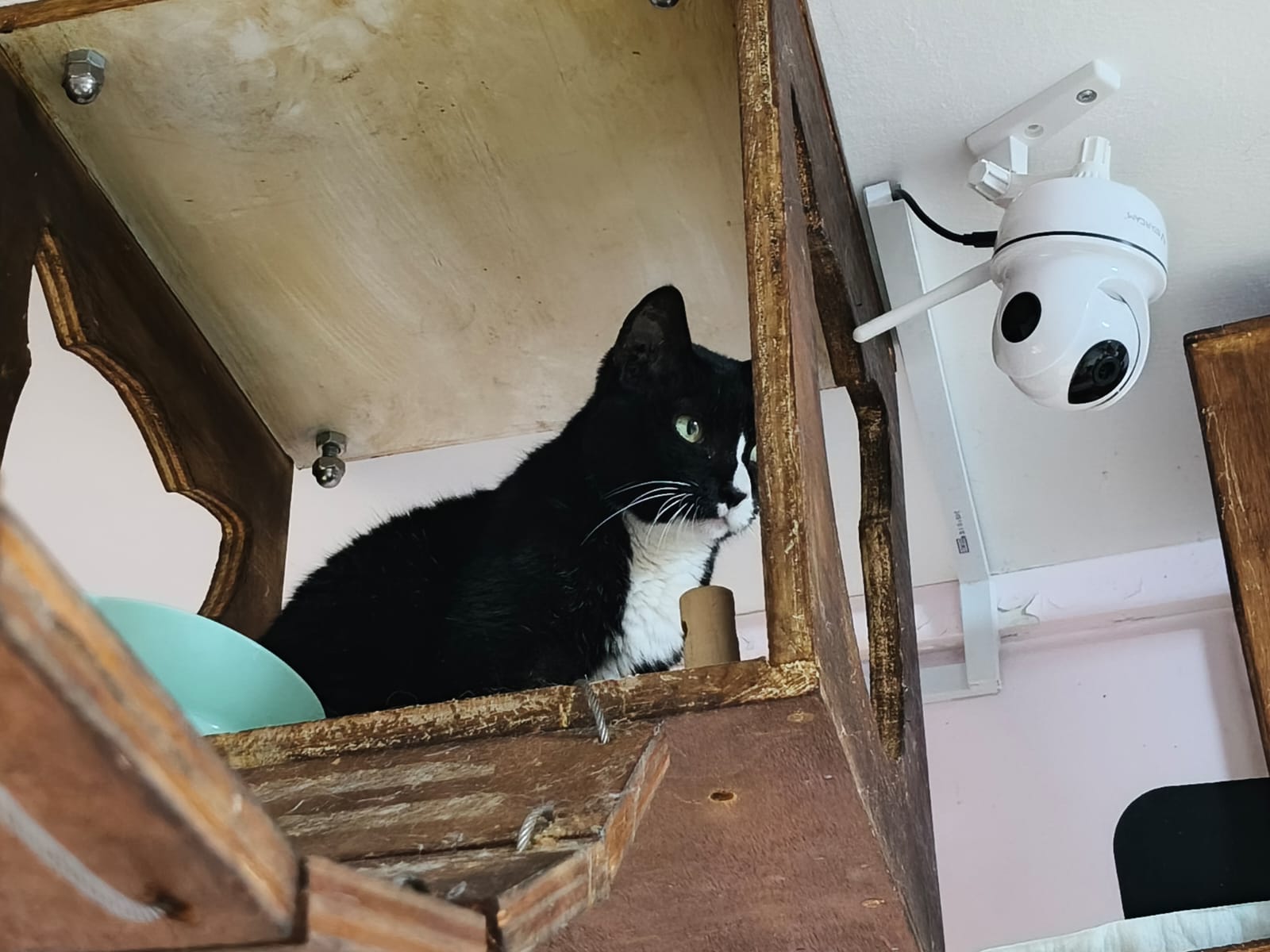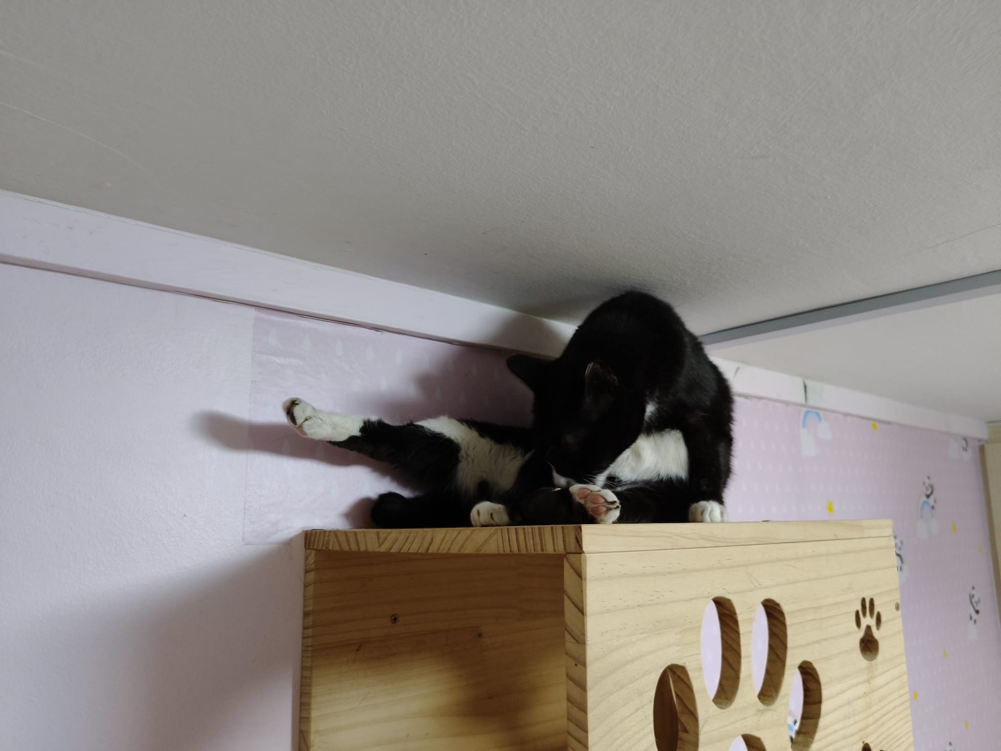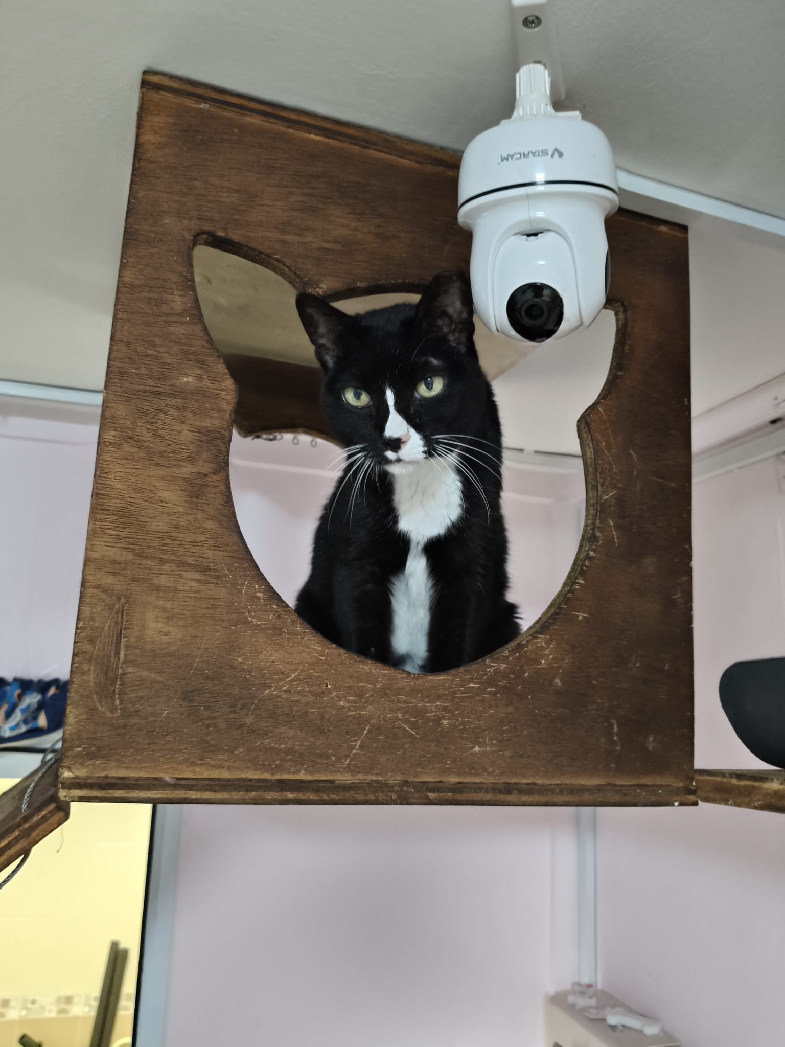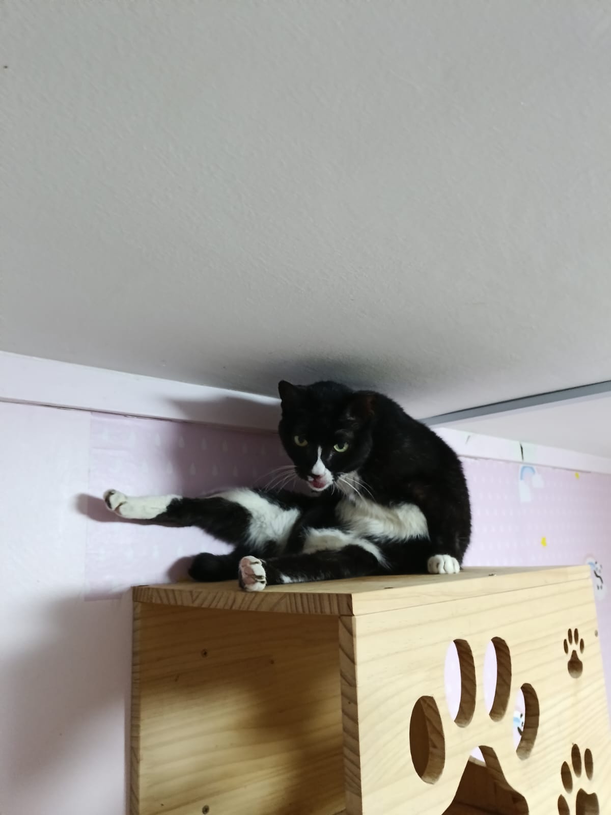 Morning: quarantined tgt w Princess sweetheart, char, rena and teddy in new room for the installation of aircon, put in 3 hanging beds for her. She settle well in them. Teach her how to use bin, but not sure she will pee on pillow case or come down to pee. The rest are so calm cats