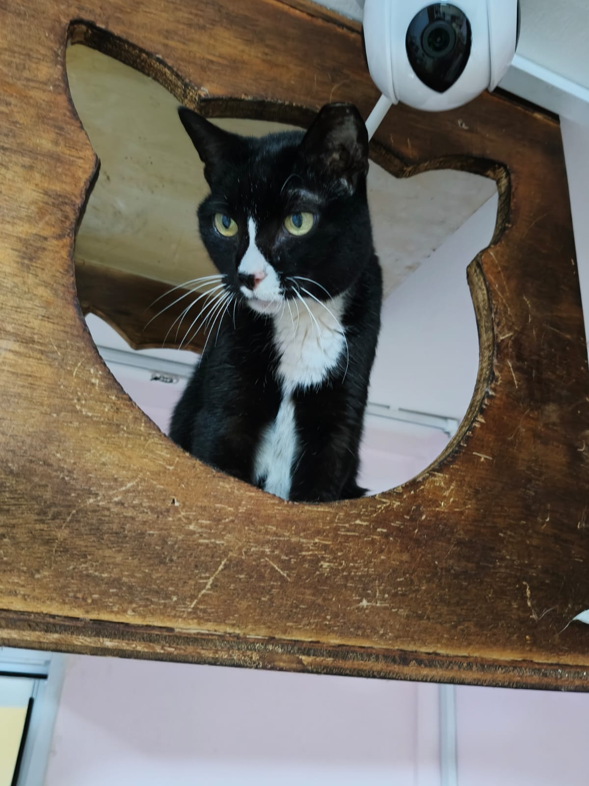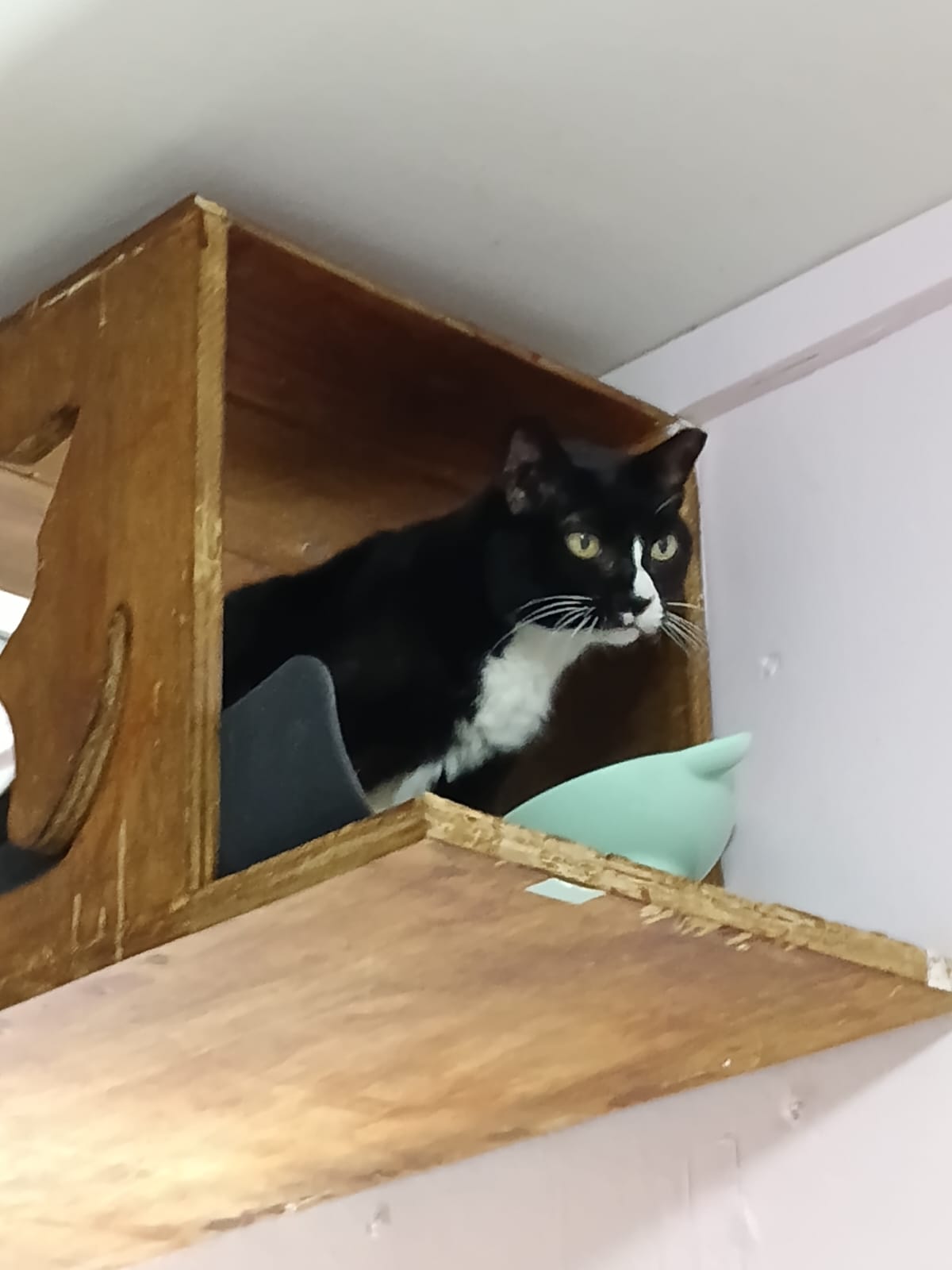 Morning: when I’m in, she is at the window on the cabinet top. Maybe fell from it. I told the rest don’t bully her. I sayang her n junior tgt introduce both of them. I sayang her n brownie tgt introduce both of them. I carry tao n manja away. She is peaceful. Sit on it and rest.