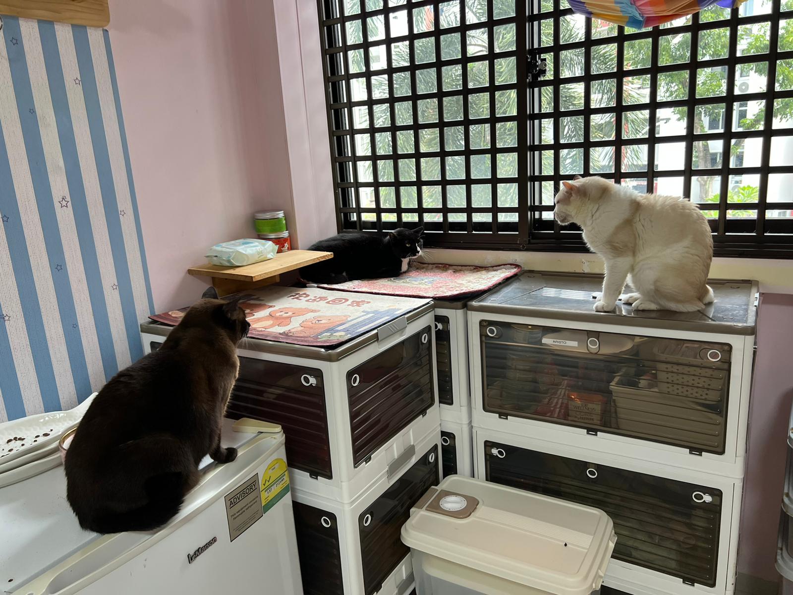 11am+: I go back 猫房 try to tell everyone n sayang everyone that ah mao love them and pamper them but I can’t come so frequent le, even come have to do medi n leave, they know I’m worry and love them can le. Sayang Mimi told her no worries got cleaners come clean and jo n mmm will top up her water bowls and kibbles.