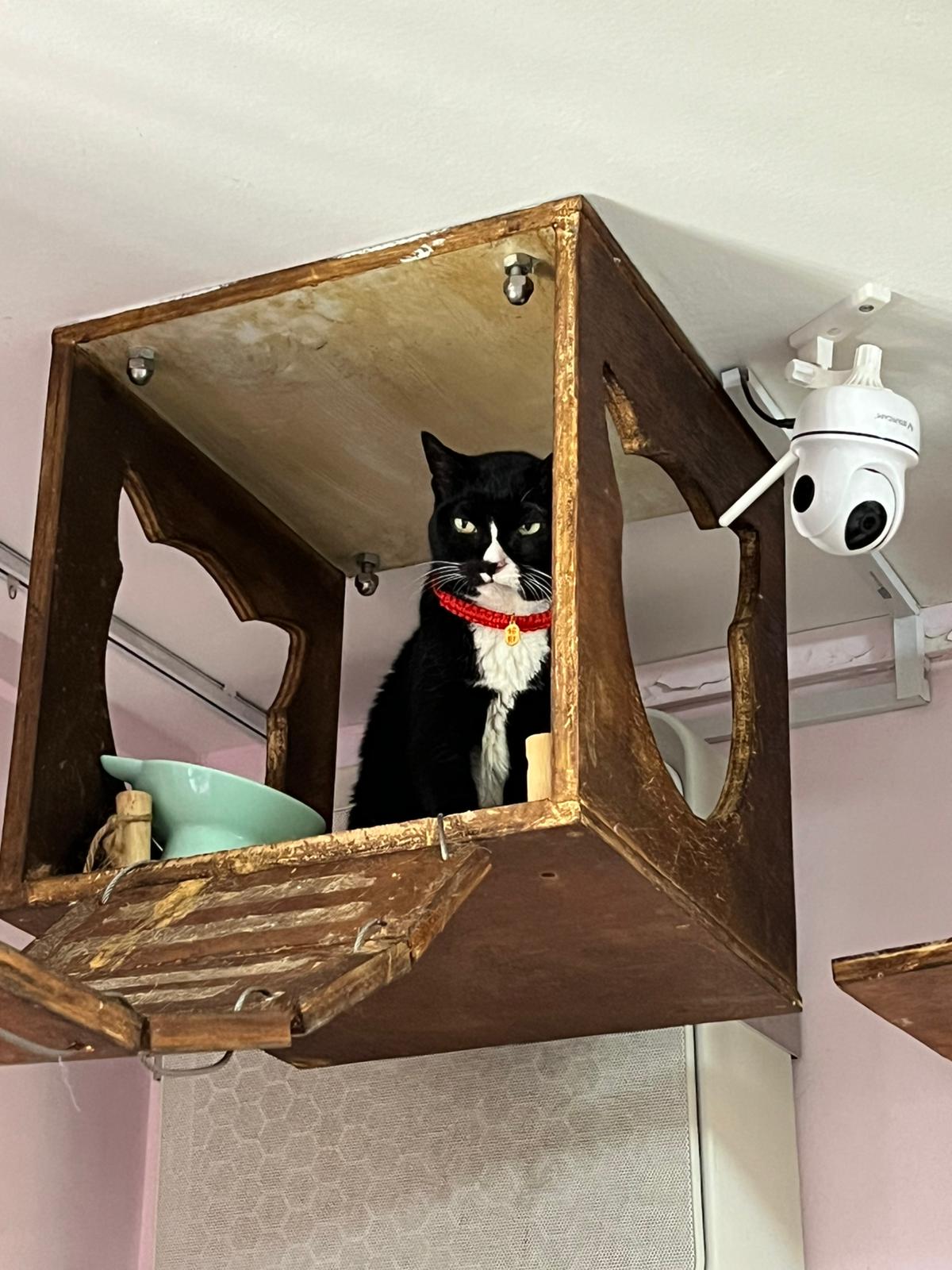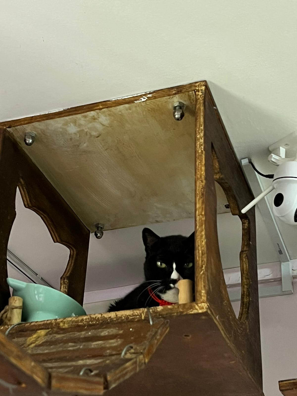 back in 猫房, carry her to the top again, she Duno how to. No meds. Sigh.