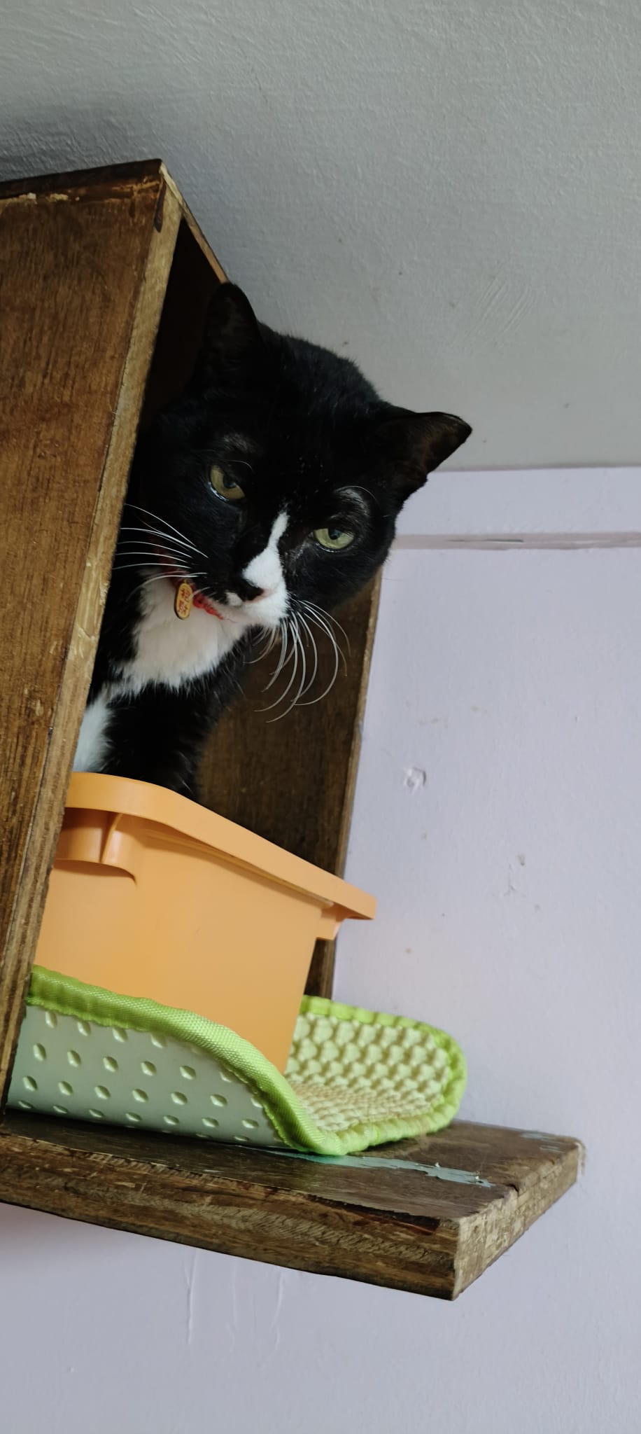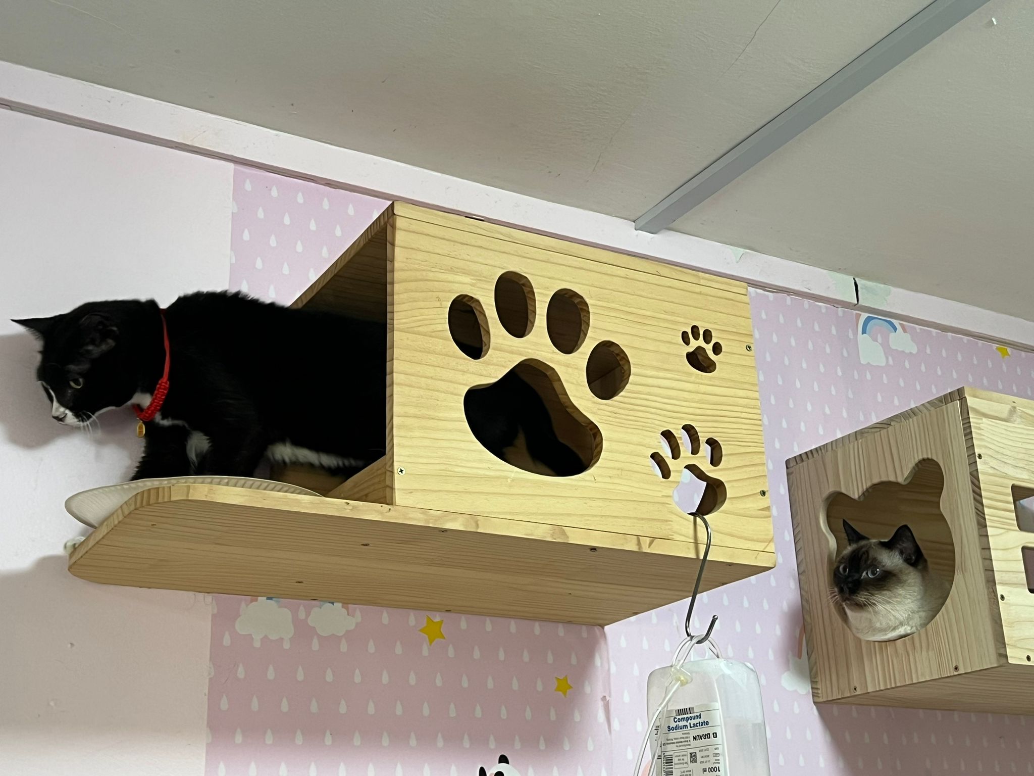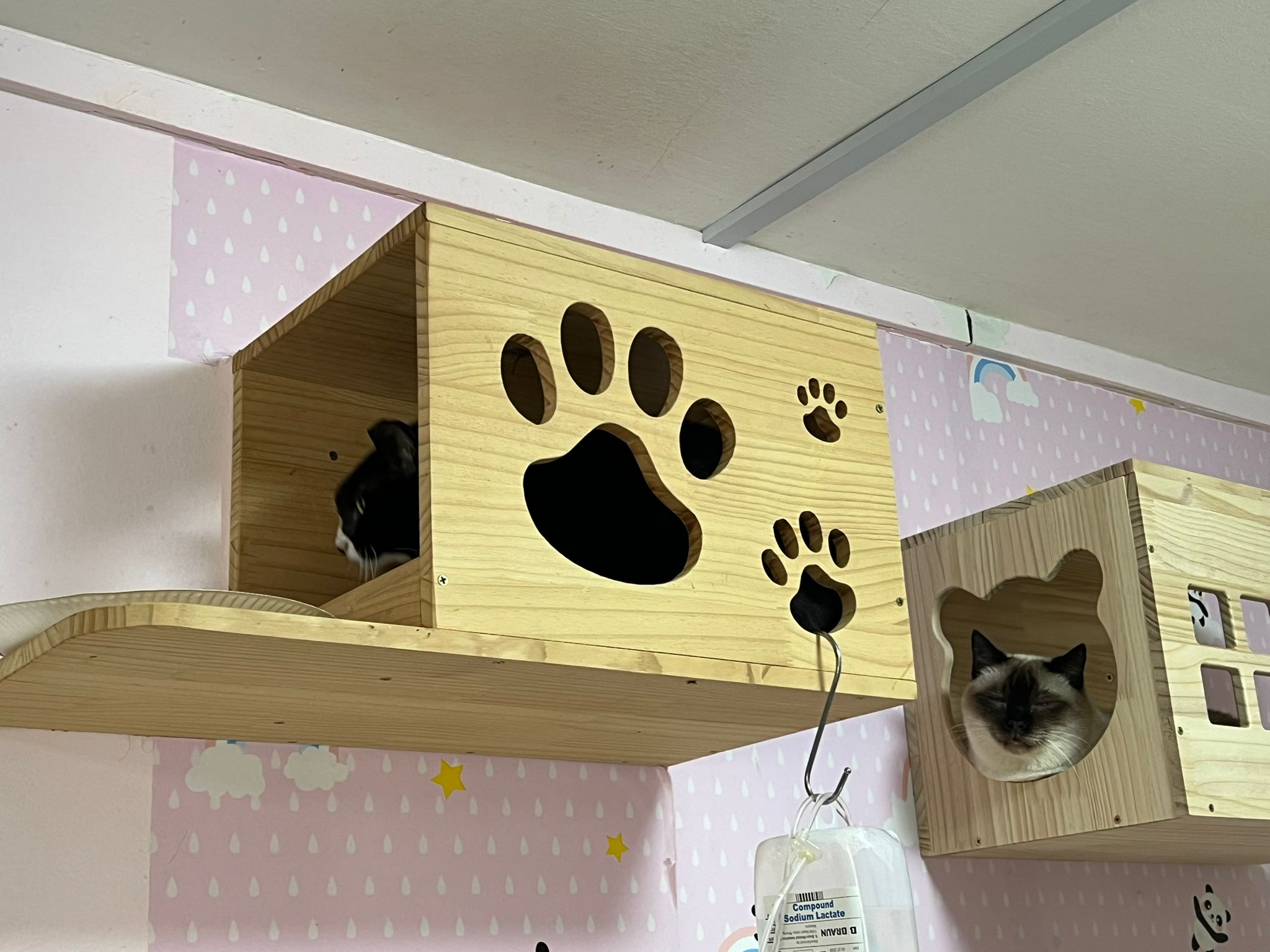Morning; i clear her poo but I didn’t check hardness. Subcut her. Let her rest on big bed, sena stay near, Mimi smell her n hiss. Told her sena is staff nurse. And I’m installing new platform for her to jump up next time on her own. Let her get used to the old folks ard her. Most of the kiddo didn’t come disturb her
