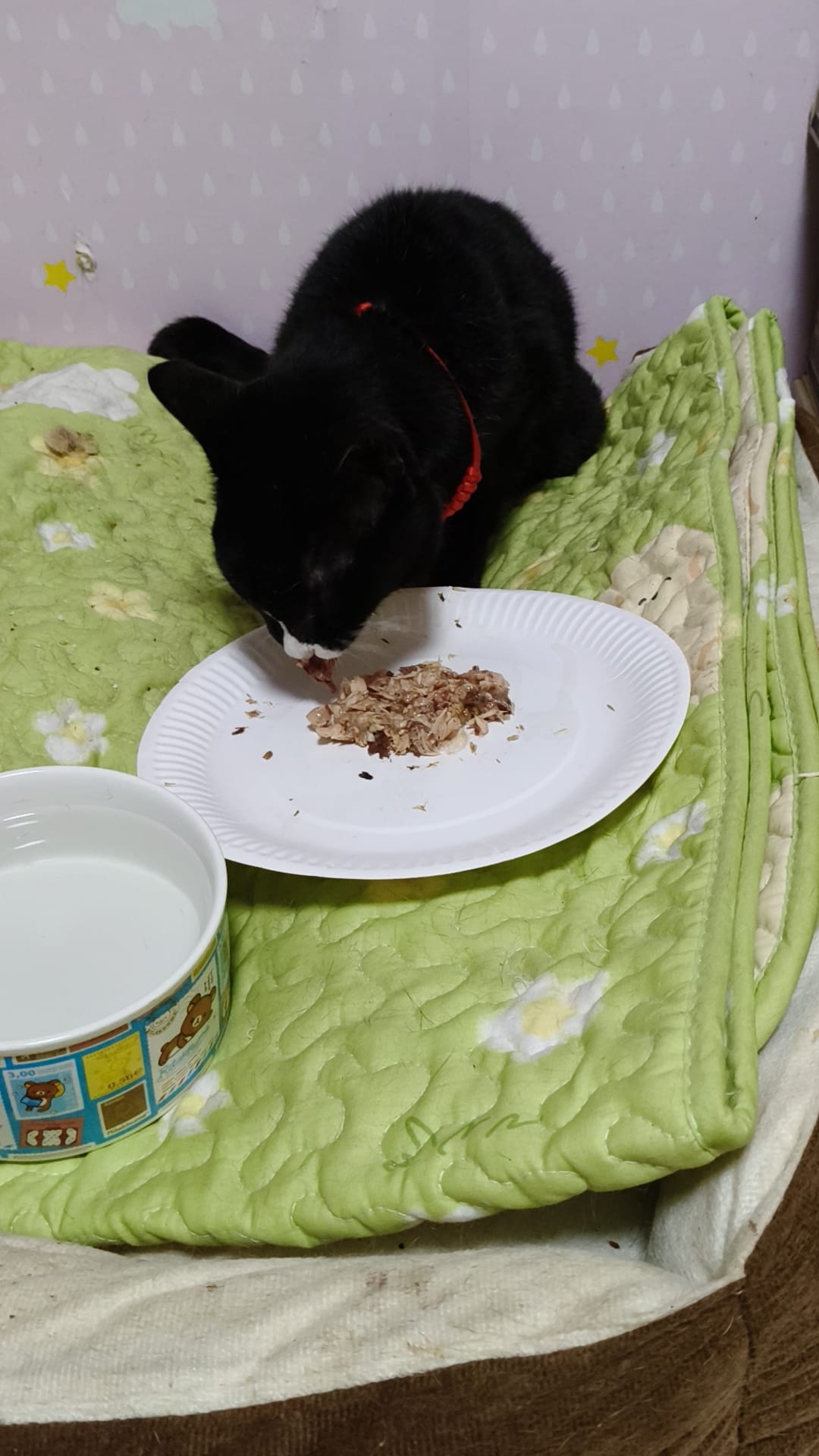 Tried Kakato tuna kibble, she got eat but not much I think. Serve monilachs- wild boar and Mimi (eat finish) Serve monilachs- carrot pumpkin – Mimi didn’t eat.