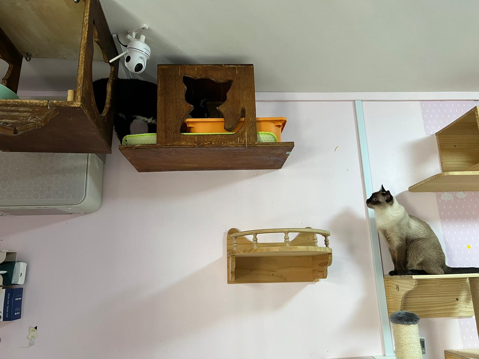 Morning: Mimi being stalk by tao closely. Poor thing. Got one point i got to climb up there to talk to tao. Next week onwards I might not be able to keep climbing…told her to be a good girl, go sleep on the high hammock if she want, or stay at floor area. Don’t keep disturbing Mimi. Mimi nowhere to go other than sleeping in her own litterbin if I’m not there to save her