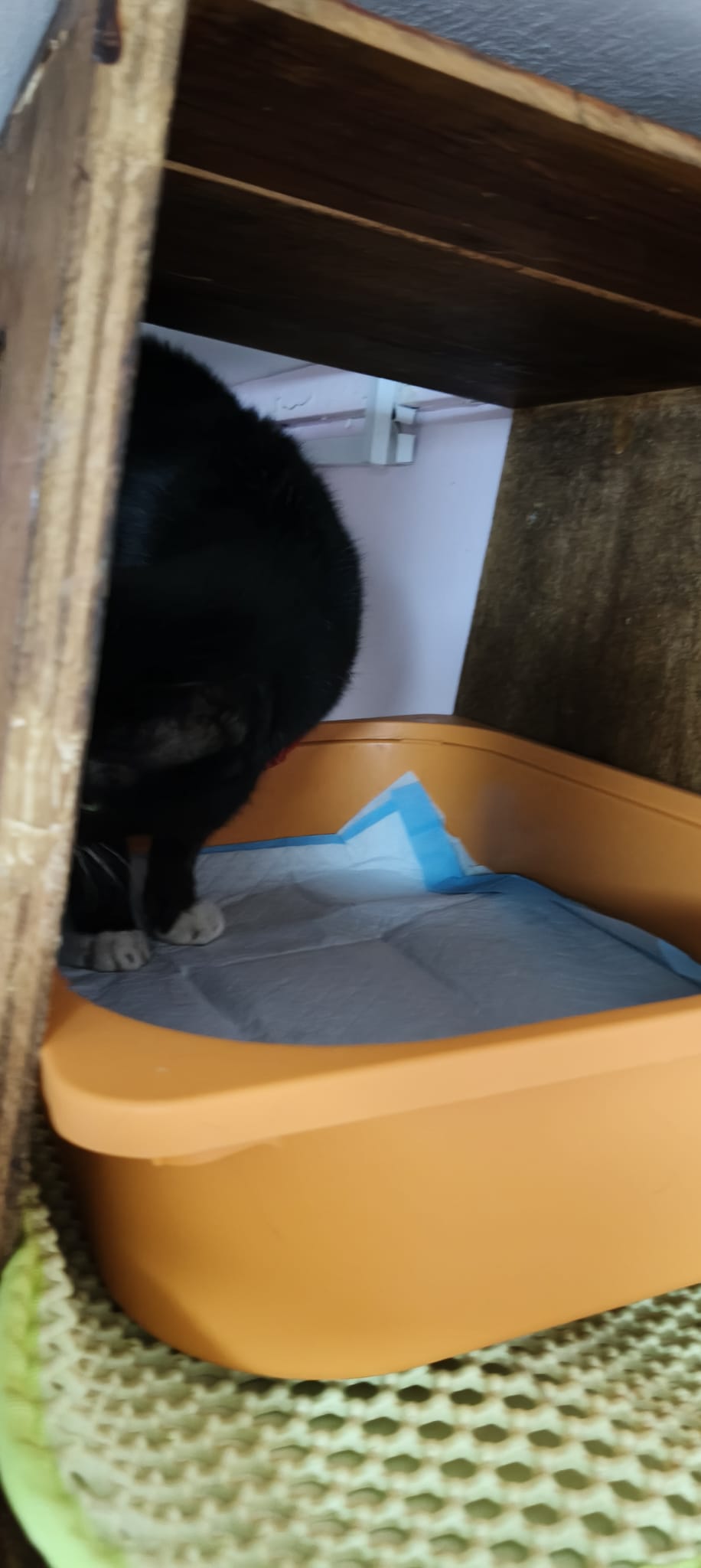Tmr I changing Mimi Bin to unicharm pad. The amount of litter she lick off the whole area is too horrible. Mmm says Mainly the water bowls at the sink. Lots of pearls inside and all e cats sleeping on the big bed area all got dirts on them n their food plate w litter