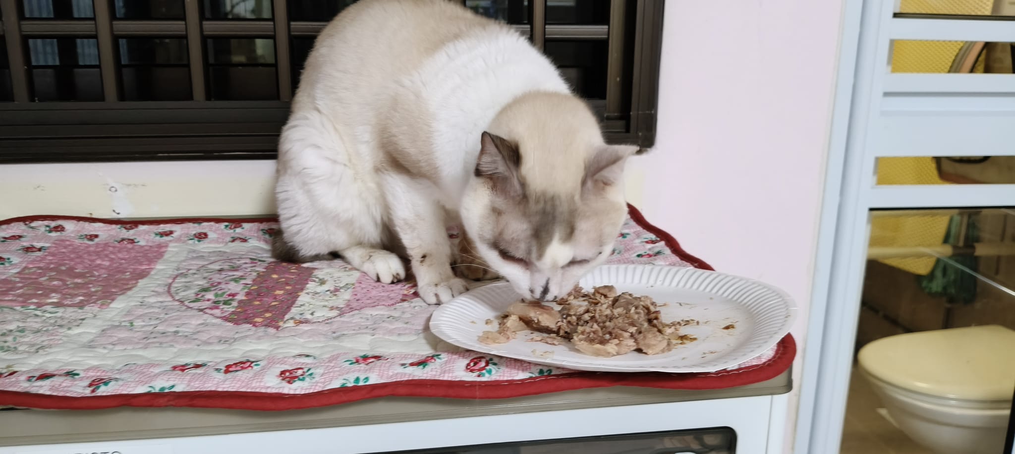 • I sayang him n talk to him, remember first day you wanna go out badly? I bringing u back now, wa he tuck into me and like crying and whining – wth he Want to stay in 猫房 siak – yesterday shouldn’t give him the white chicken. Think he used to the many meals food per day lifestyle Liao.