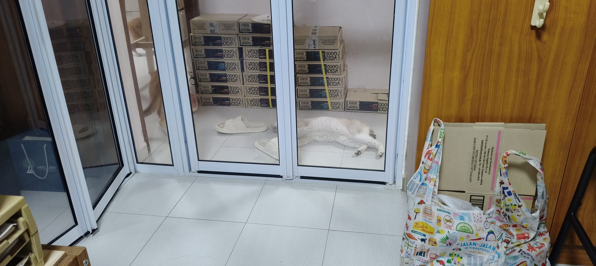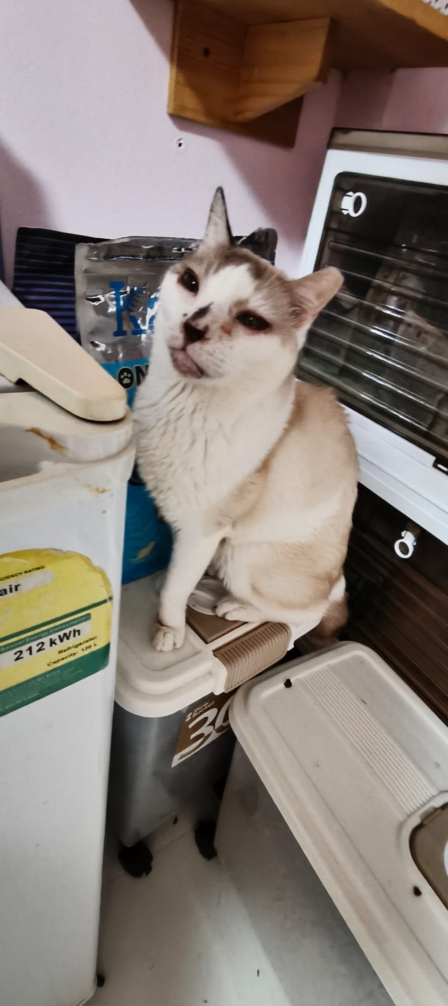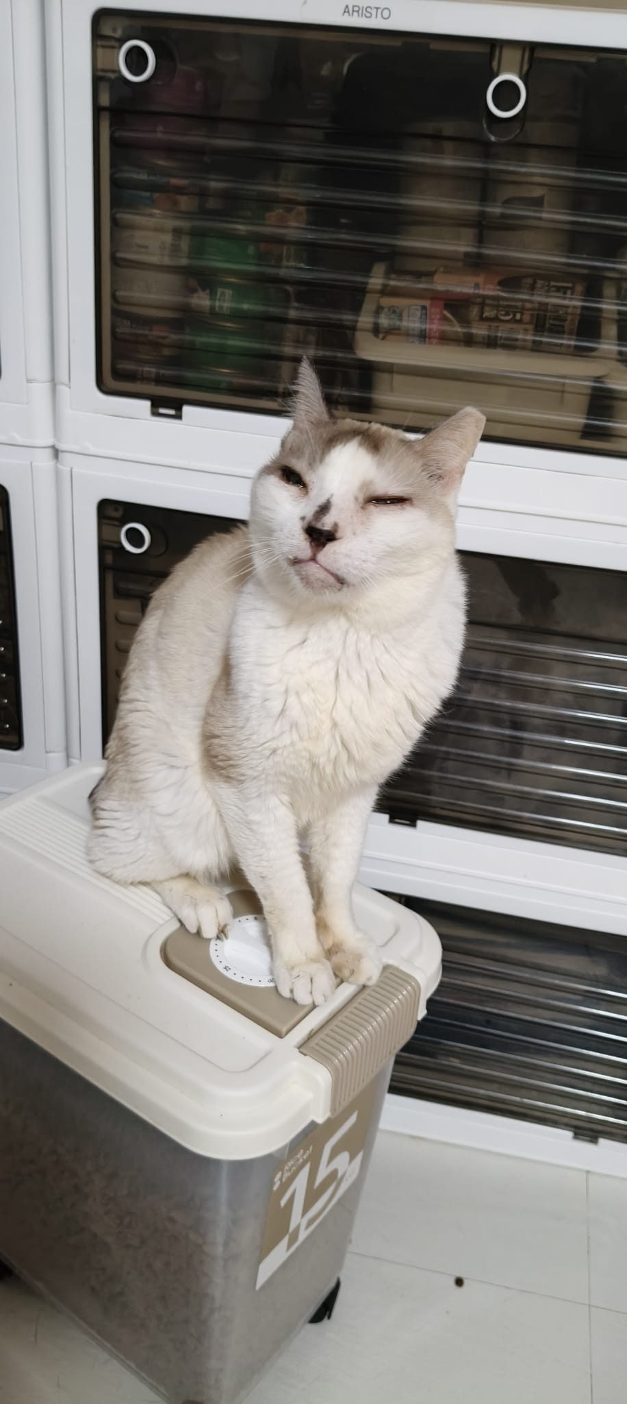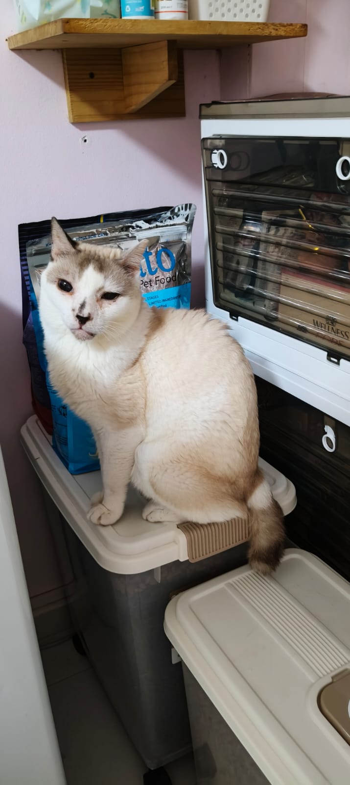 Morning: today is normal, jo serve him tiny wellness he got eat and when he know I’m getting to leave, he keep sitting on my slipper. Waiting for snack. But v picky. Even kakato cannot meet his expectation