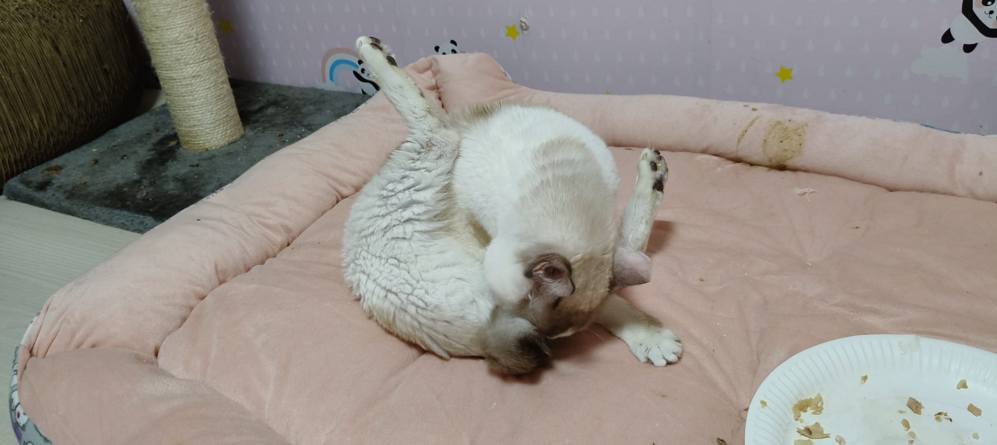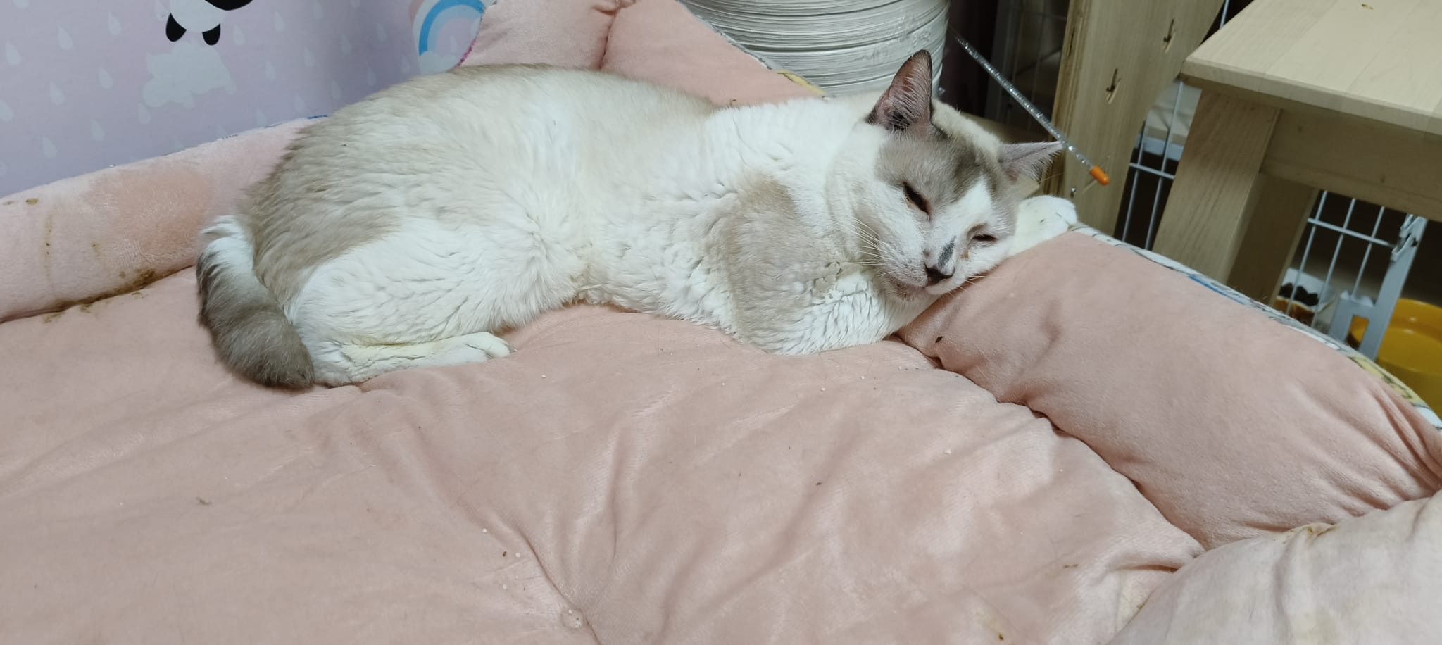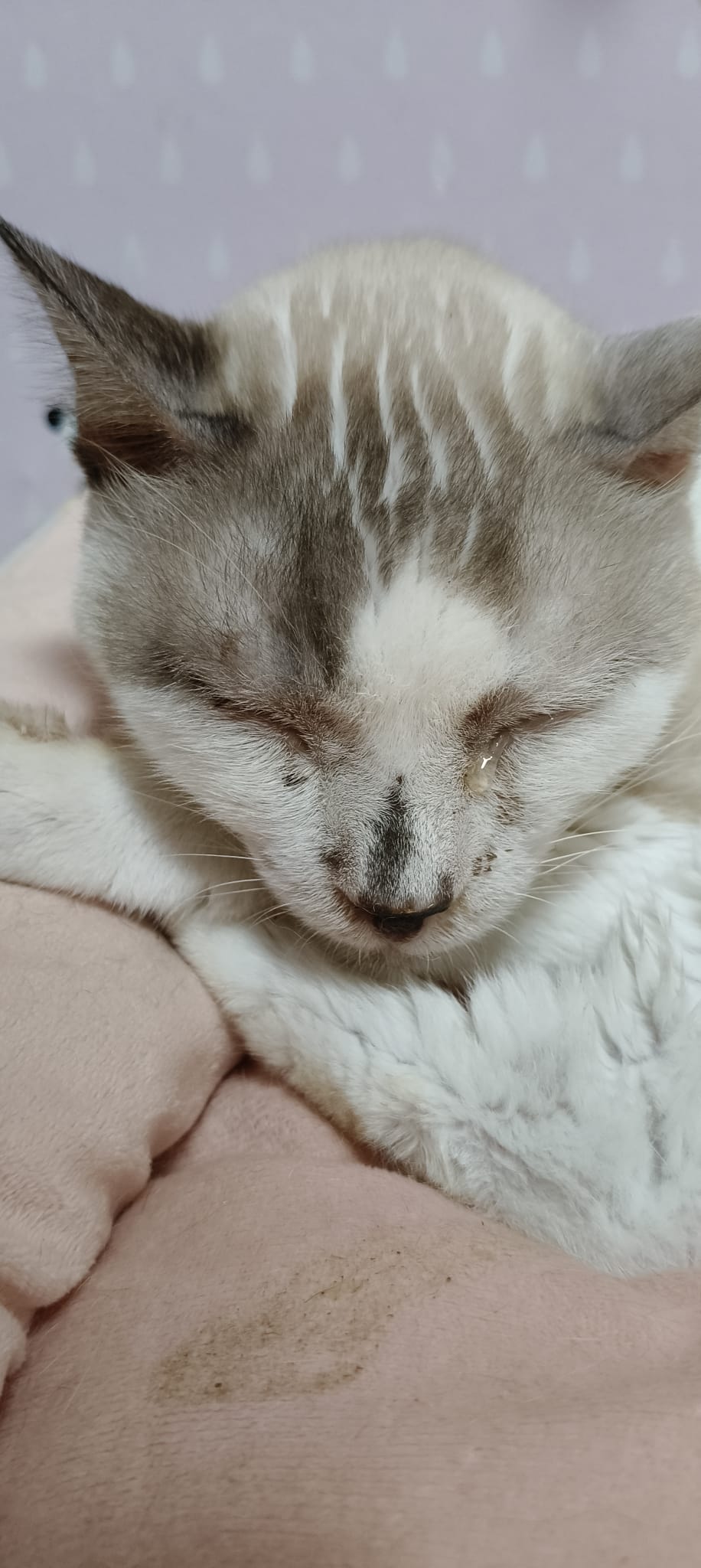 Today grooming day. But didn’t have his chance. He just keep sleeping. I got clean his eyes.