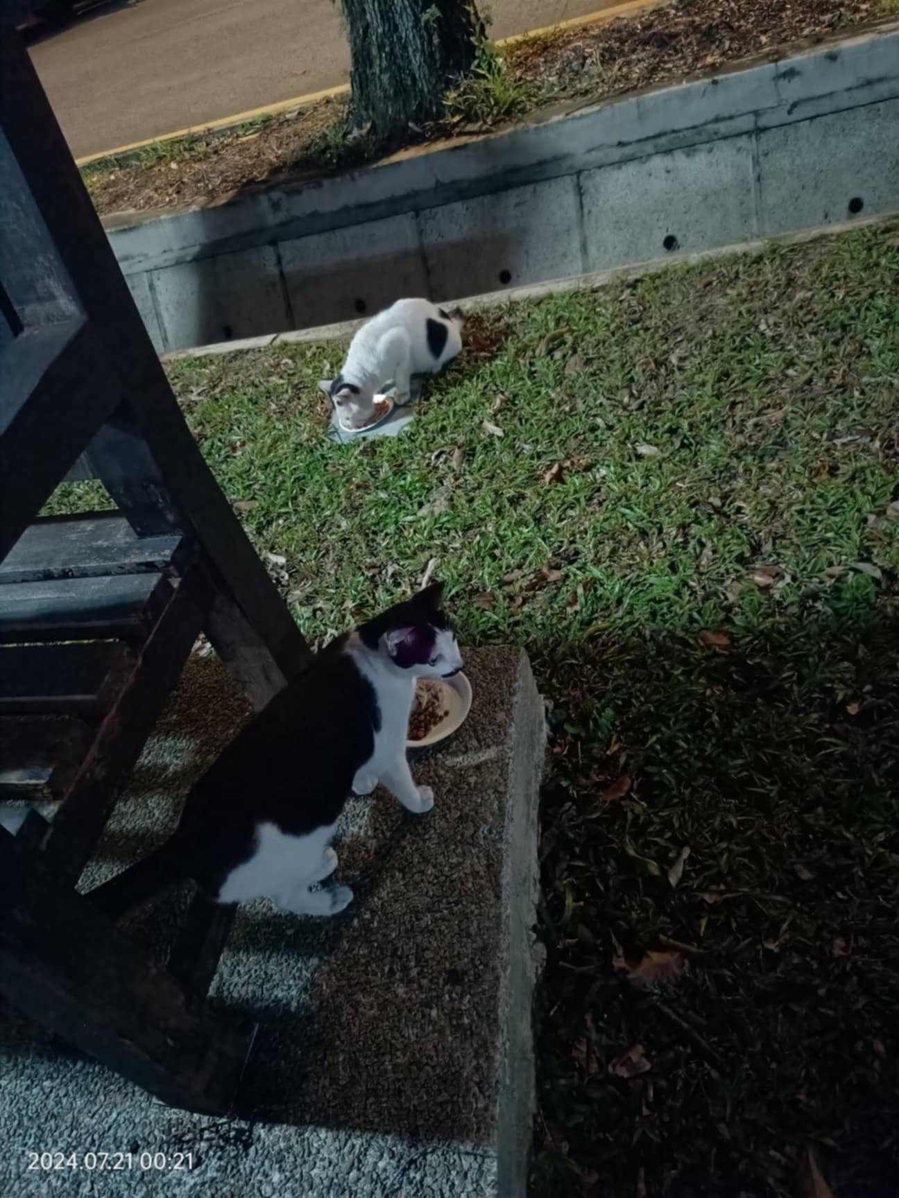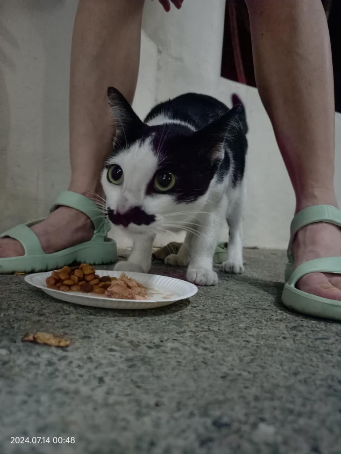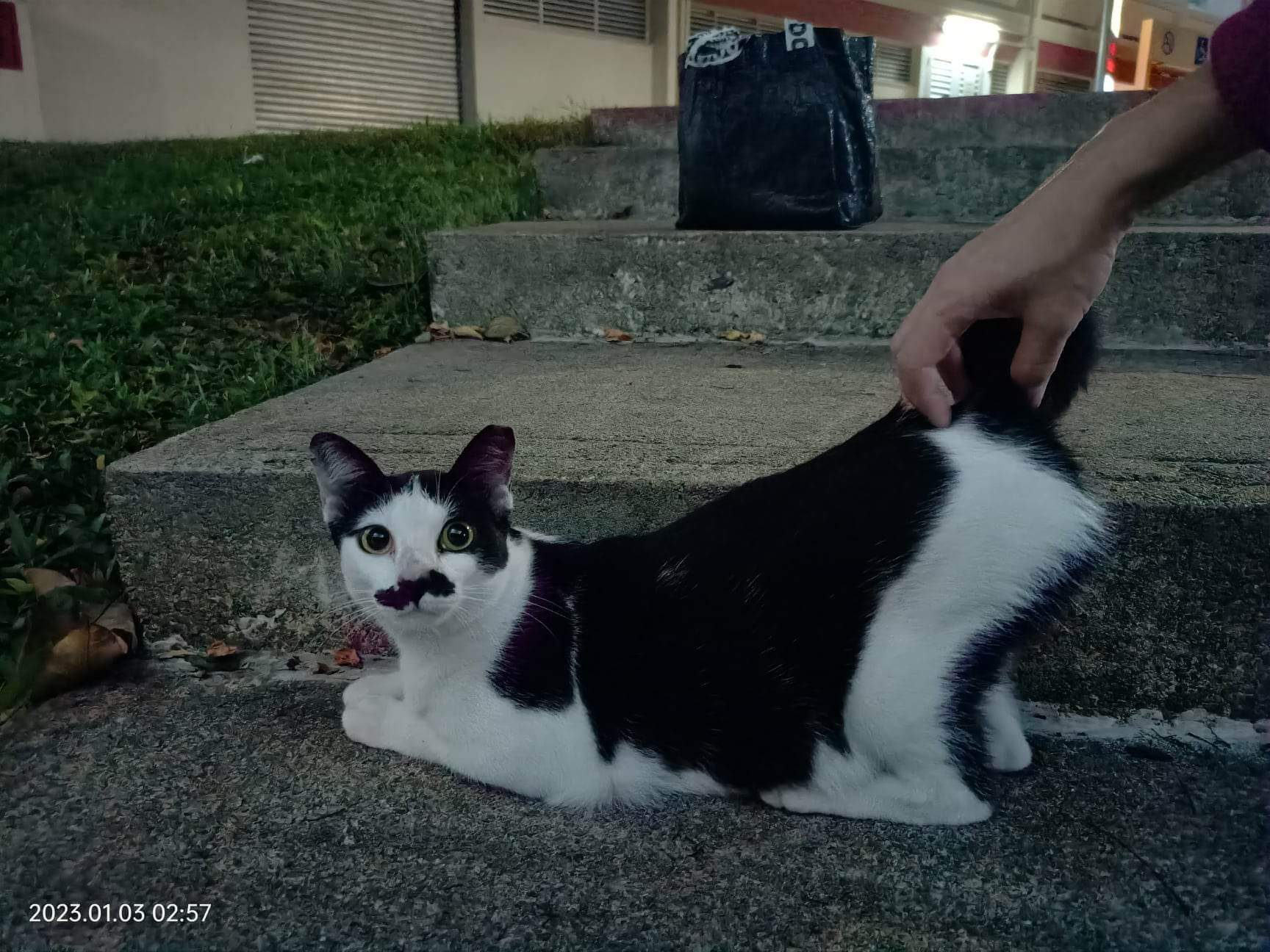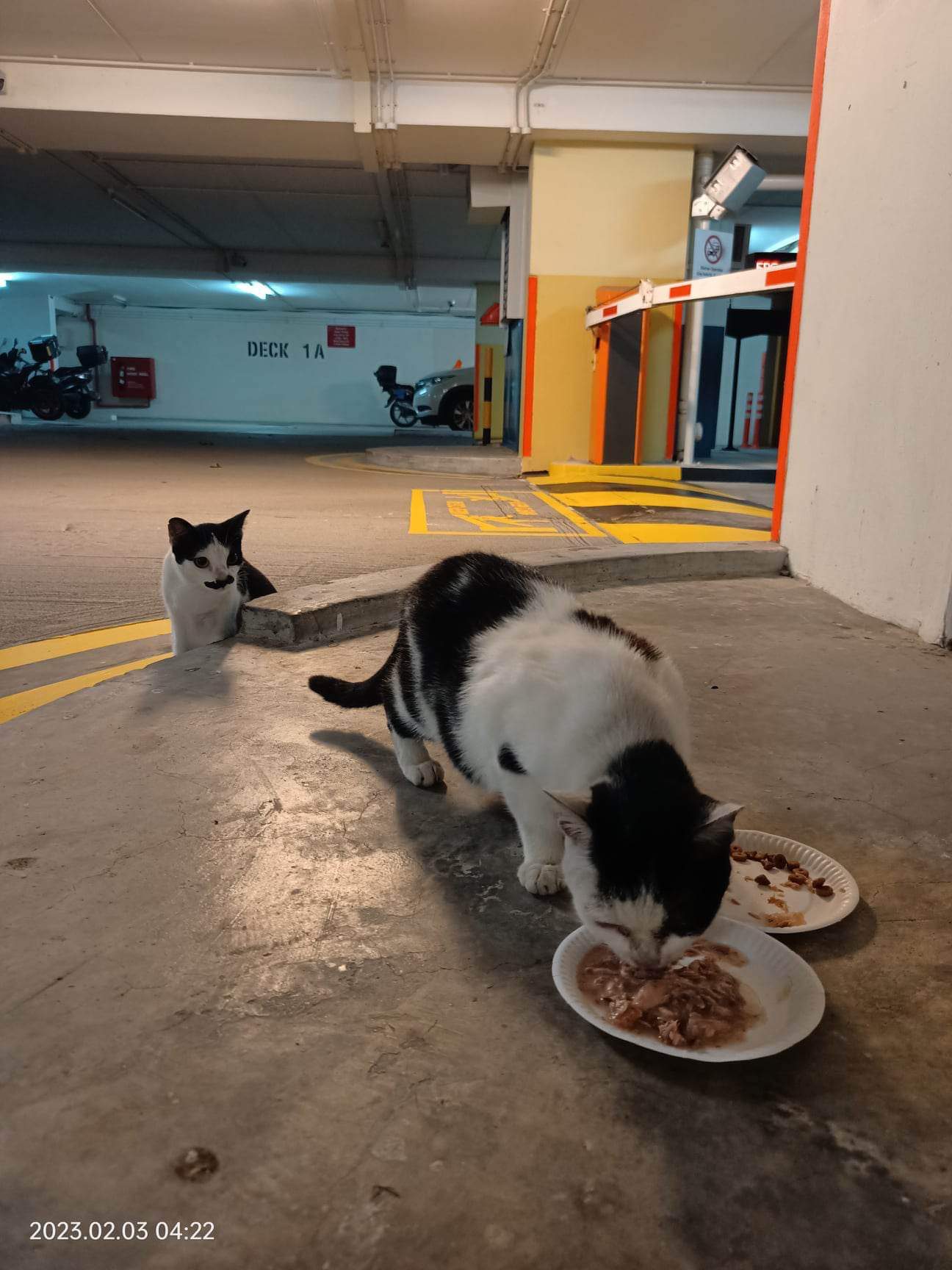 Mama cat is damn thin. I put her as 11 months but I seriously think she maybe 7 months only. Fed her 2 cans of food, eat v fast v hungry. Don’t allow touch. I don’t know whether she will whack me or not if I insist on touching her. But I didn’t want to anyway. But she didn’t appear to be fierce at all.