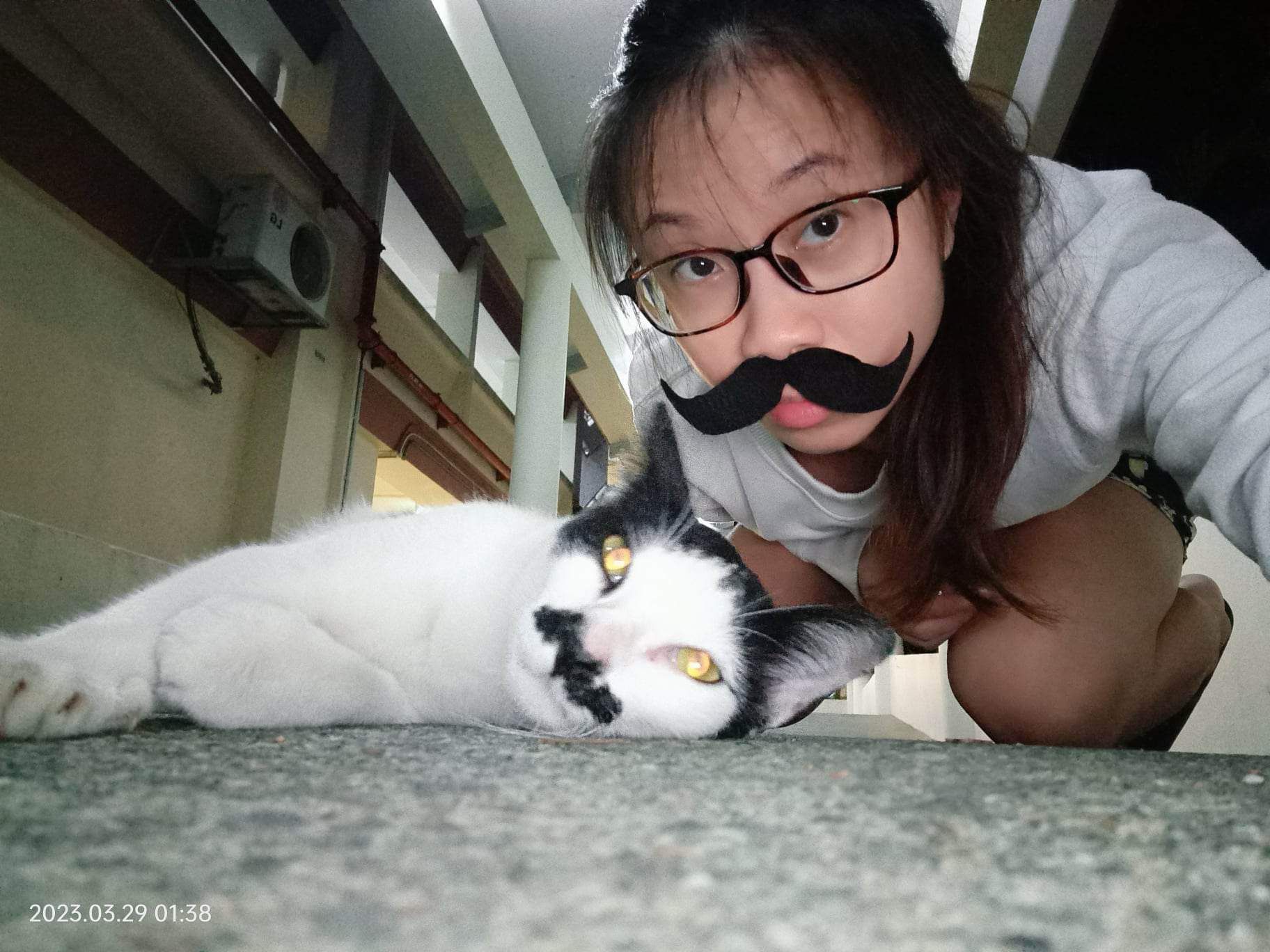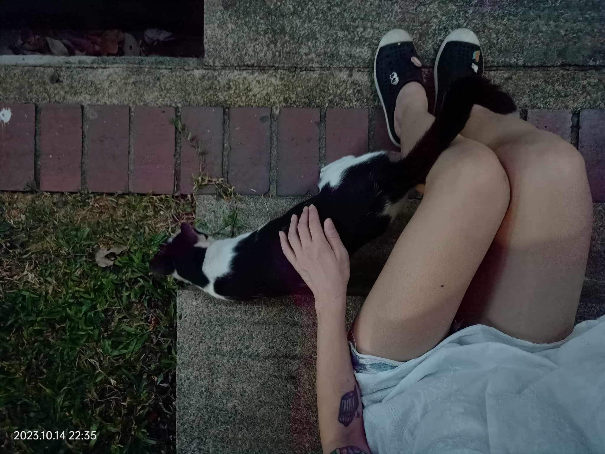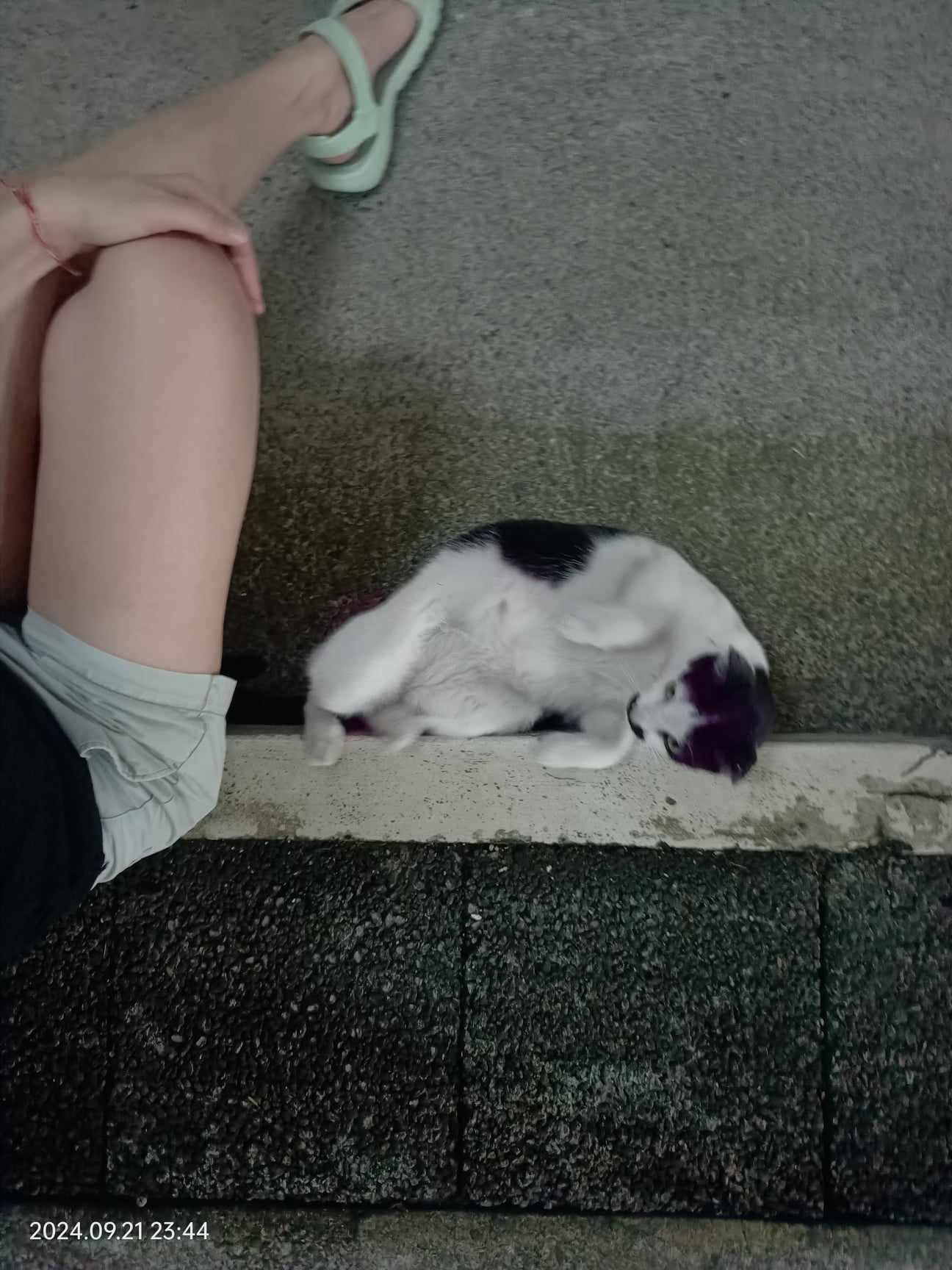 10pm+: “Baby moo hahahaha. Played with one corgi just now … Very guai. Never bark never chase. The Corgi’s owners call her moustache cat”