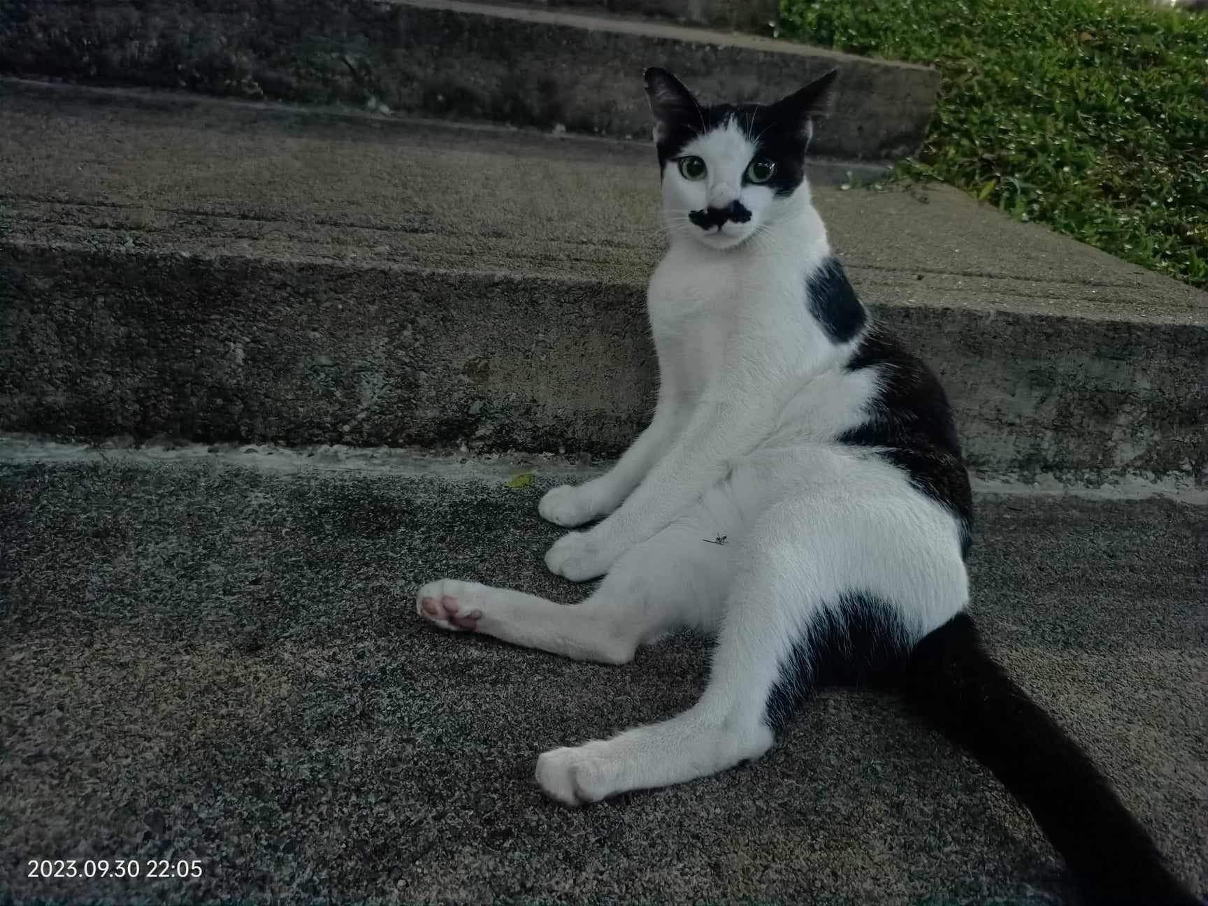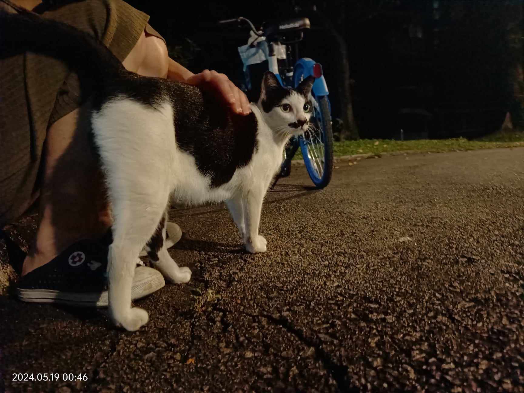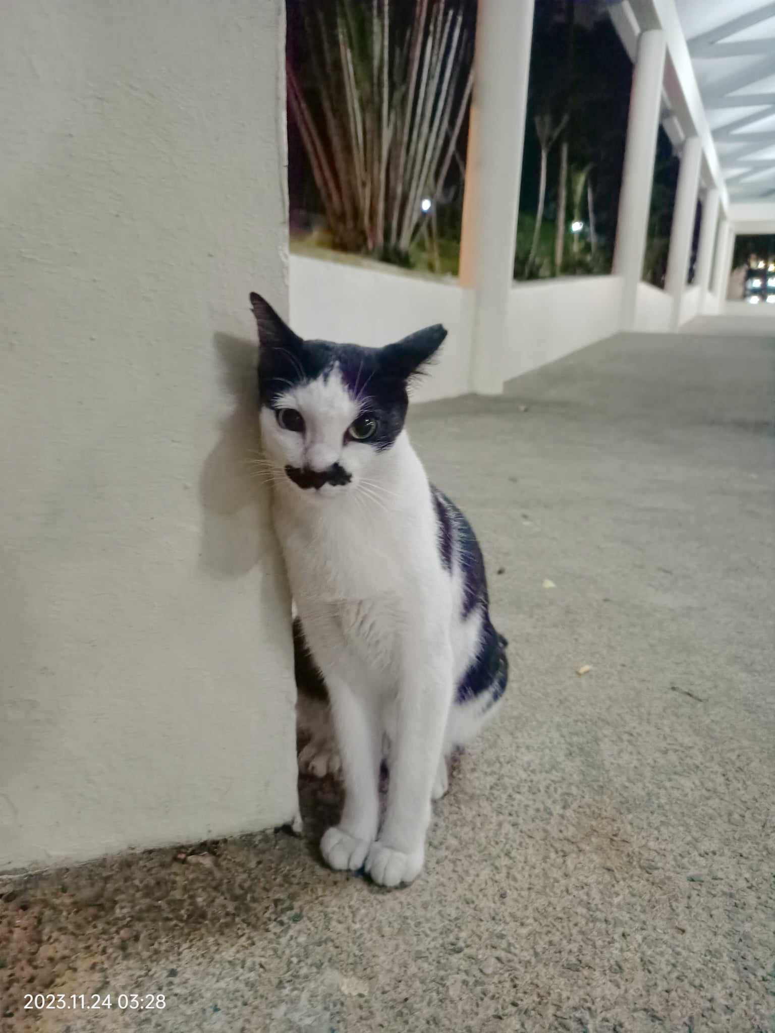 10pm+: “Baby moo hahahaha. Played with one corgi just now … Very guai. Never bark never chase. The Corgi’s owners call her moustache cat”