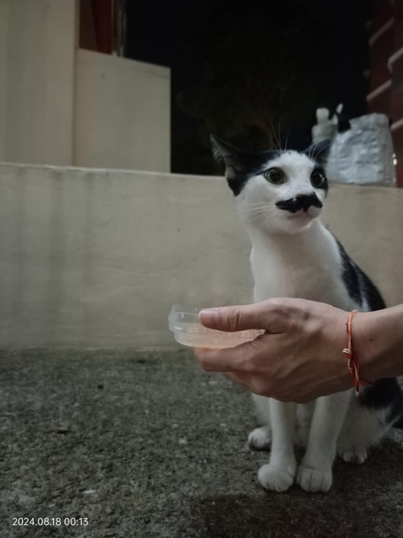 LF: “Baby moustache got eat. Today less whiney. Actually 3 days, she didn’t want to eat my food. Today she ate. Yesterday coaxed her to eat. Eat so little .. how to spay..” – I checked the small plate, less than 30% touched.