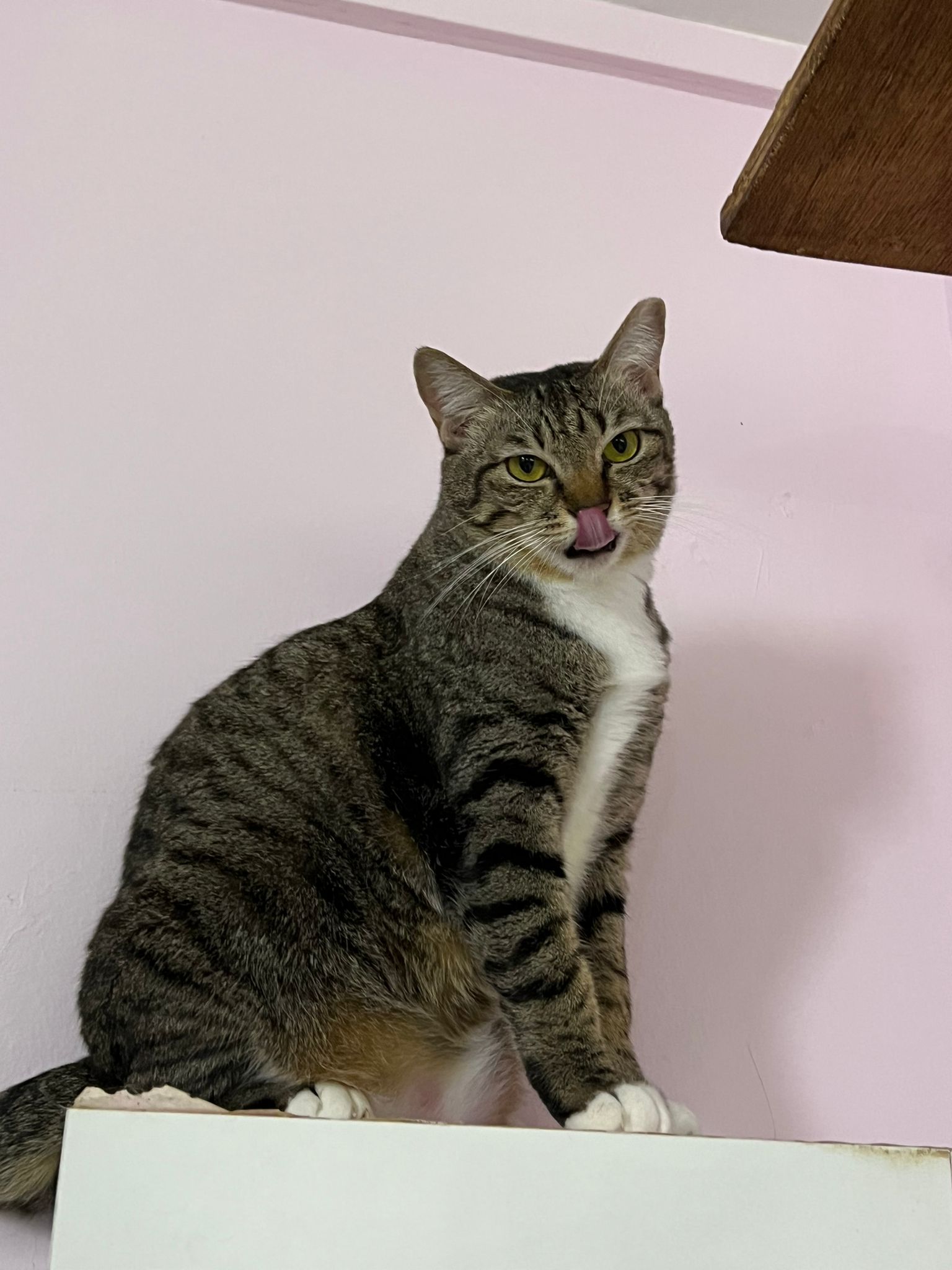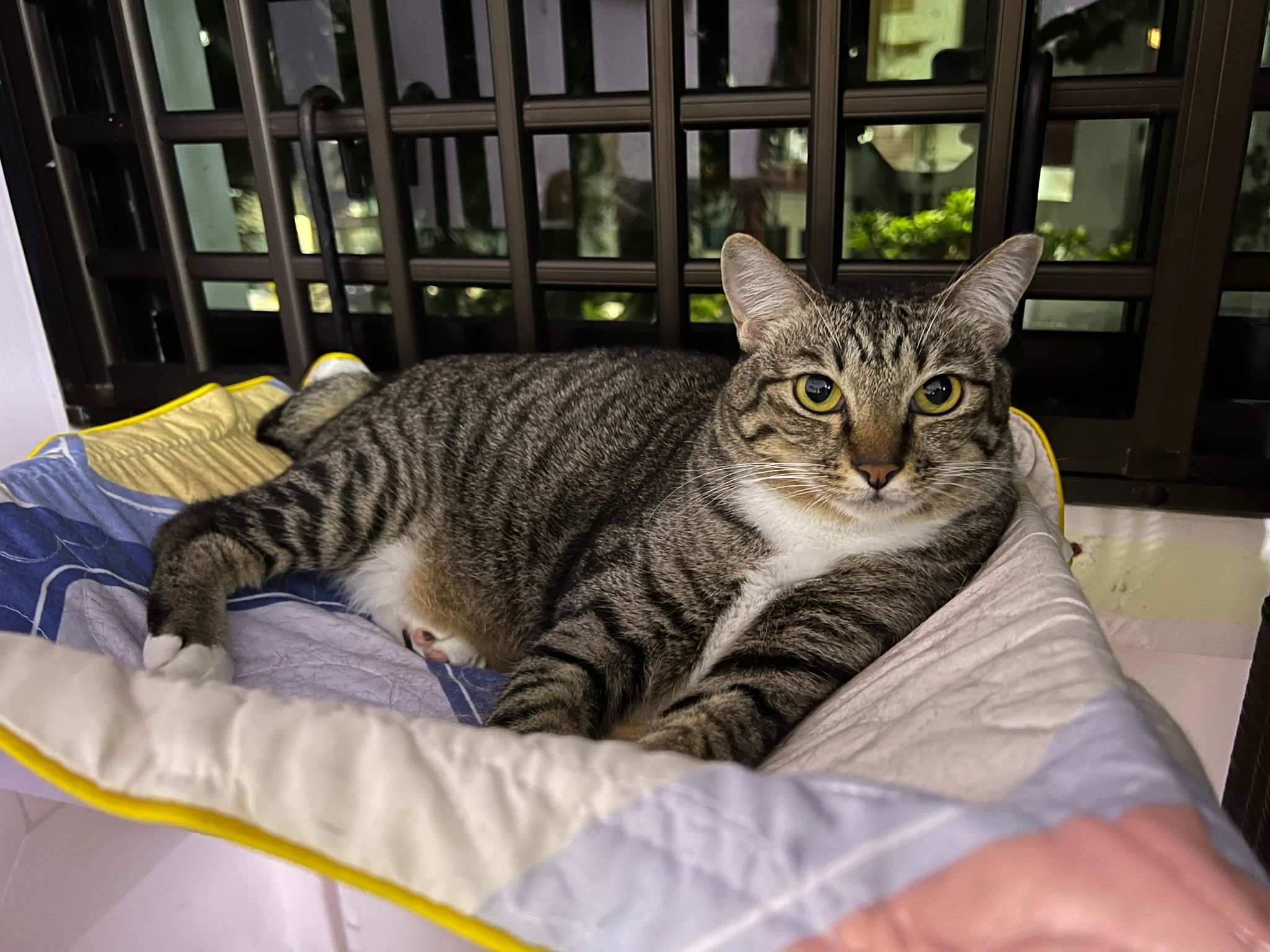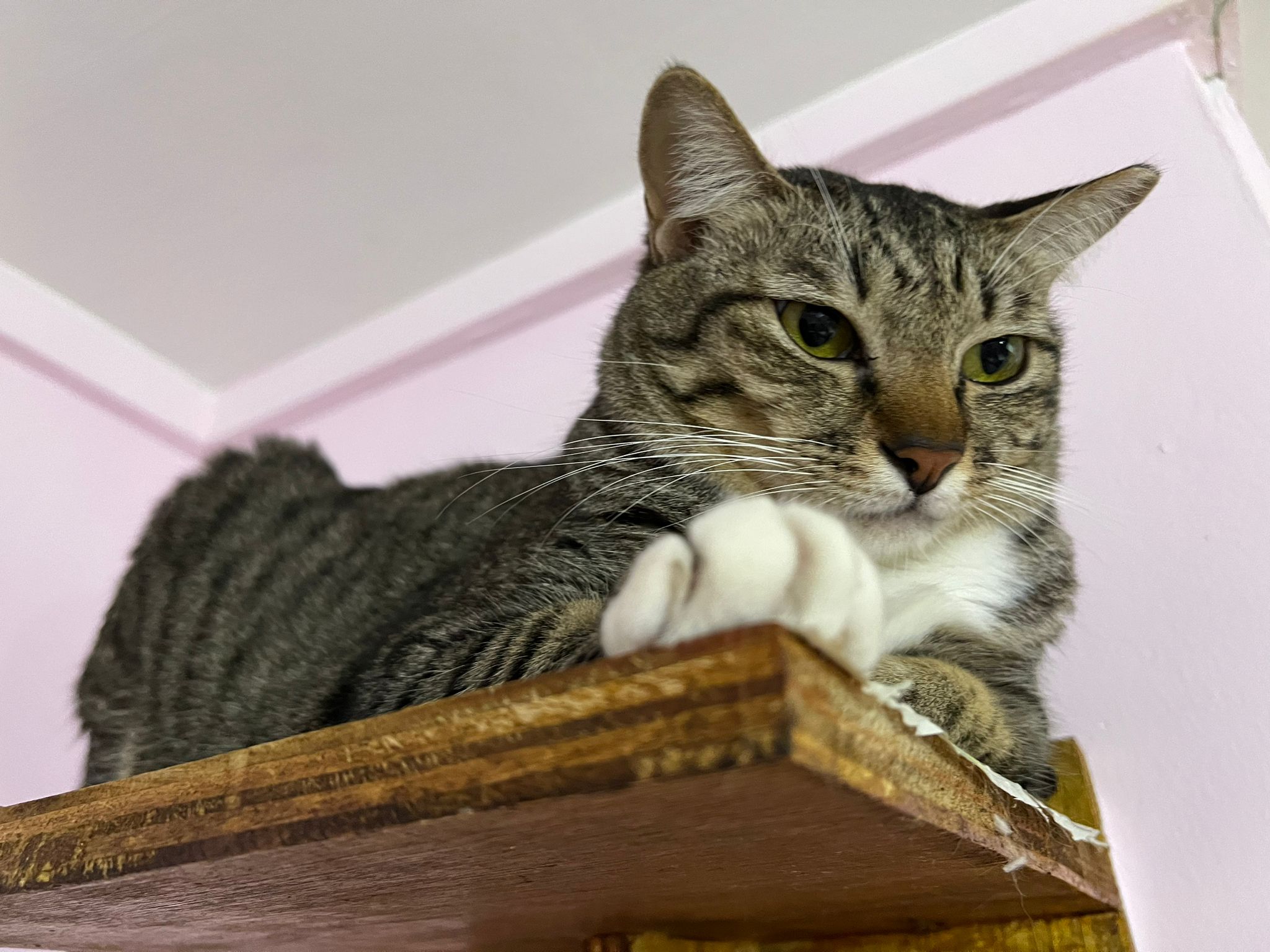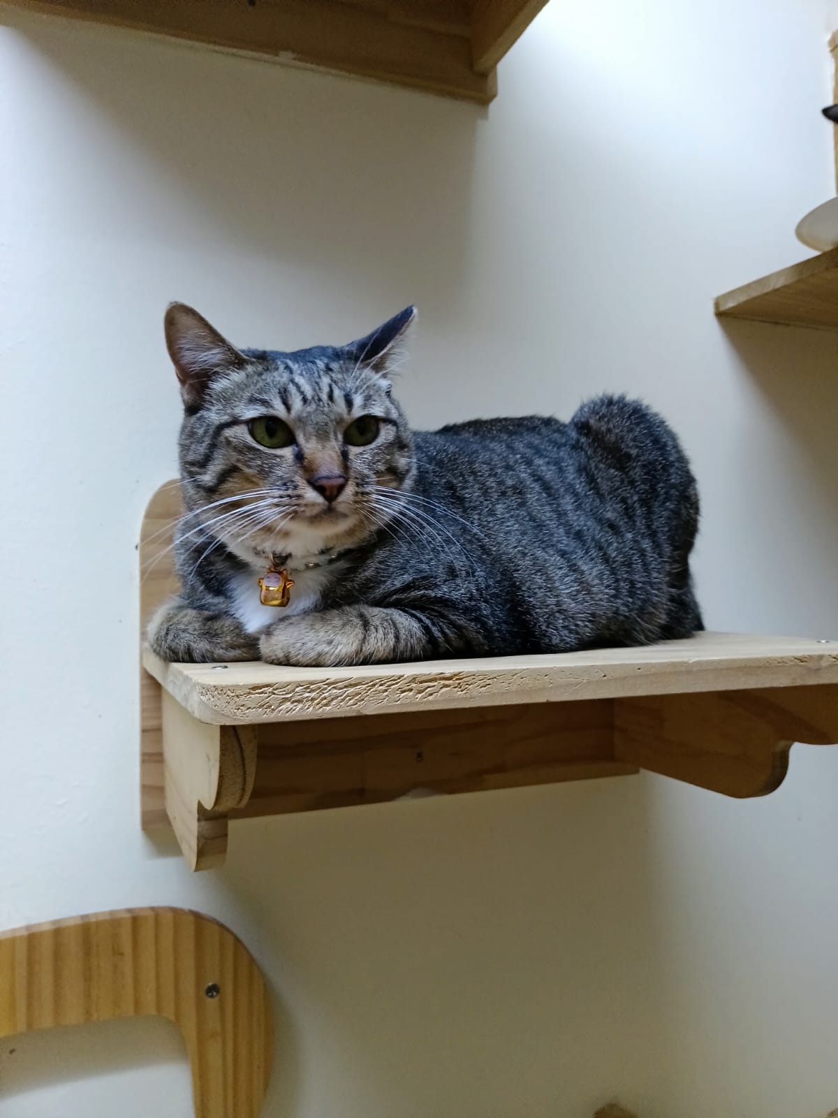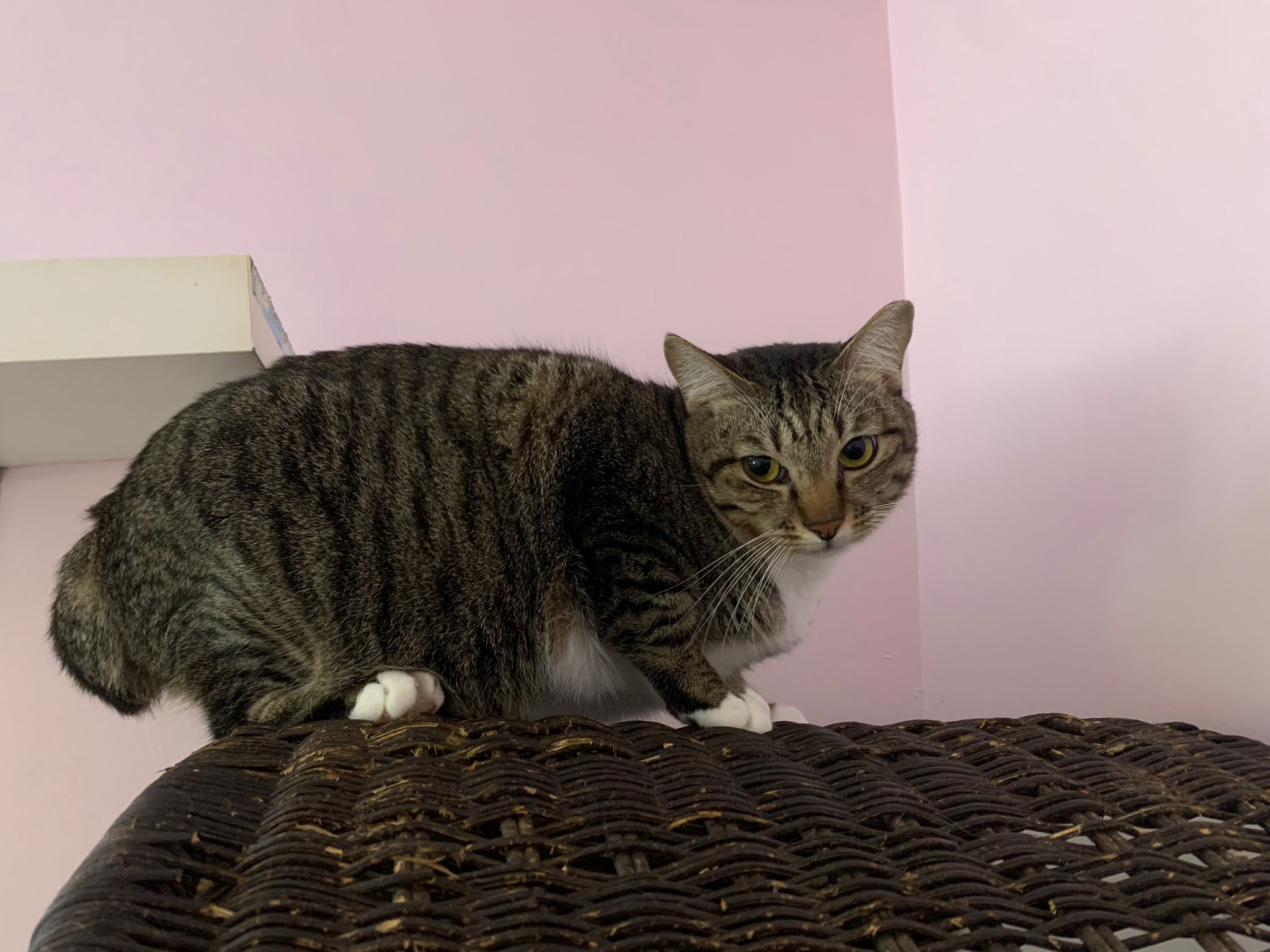 Entered 猫房 w her 2 brothers as 3 fierce kittens. Over the time in 猫房 free roaming and mixing with other cats n making friends, the boys are fine n I can kiss them. Nala still scare of everything, don’t allow touch will jump away. She will find Jack papa for comfy. Got to find a very patient adopter for her.